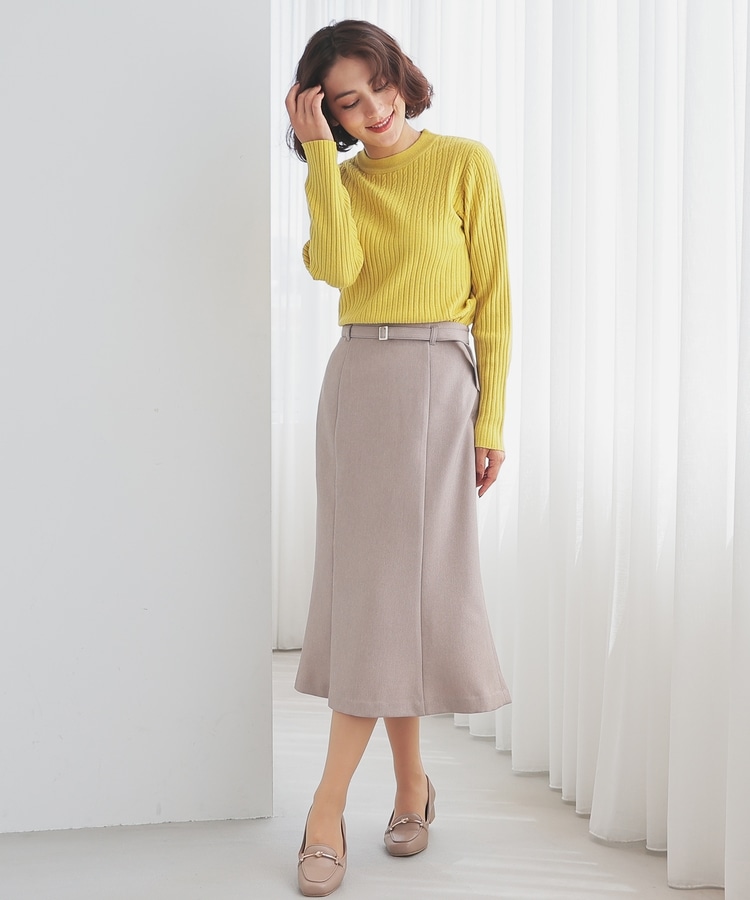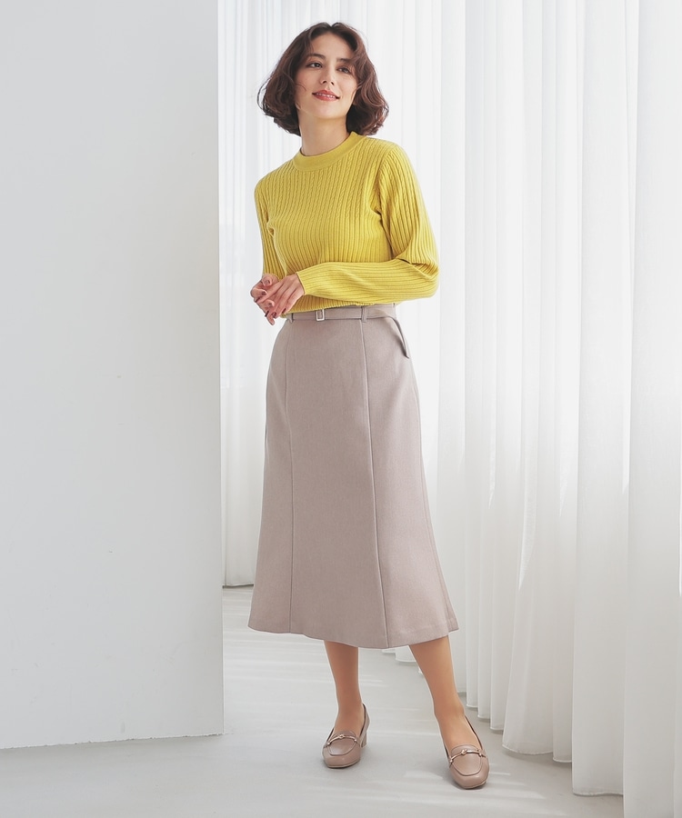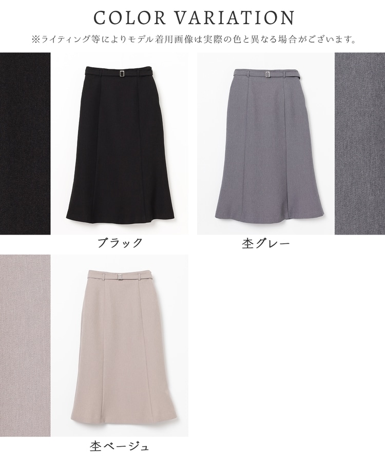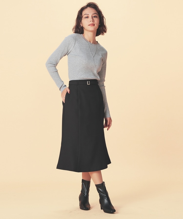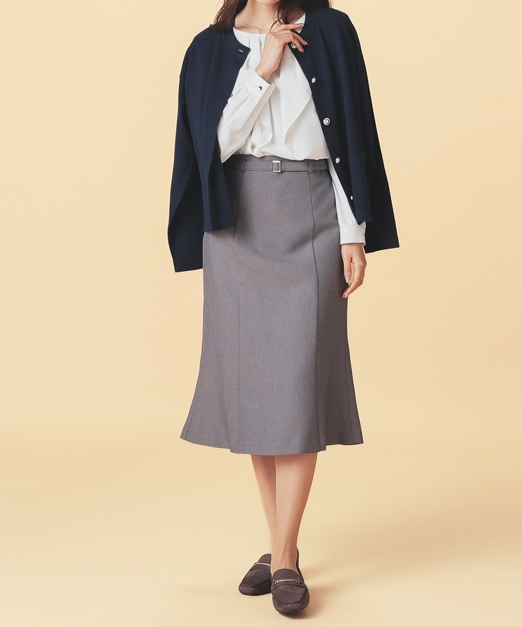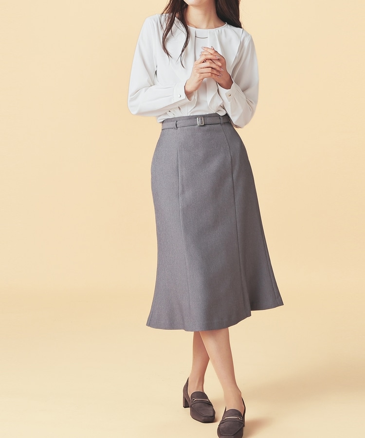 広がりすぎないマーメイドシルエットで、どんなスタイルとも合わせやすいフェミニンなデザイン。