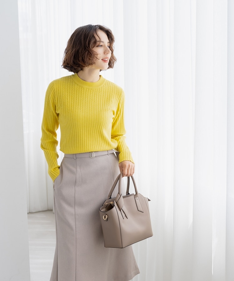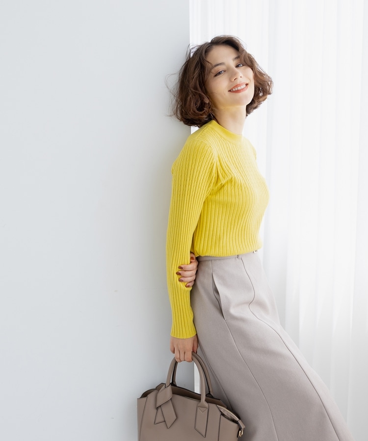 コンパクトなニットやブラウスを合わせると、きれいめな着こなしに。
