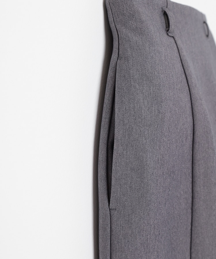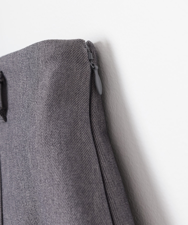 サイドファスナーと後ろウエストゴムで着脱もはき心地も楽らく。