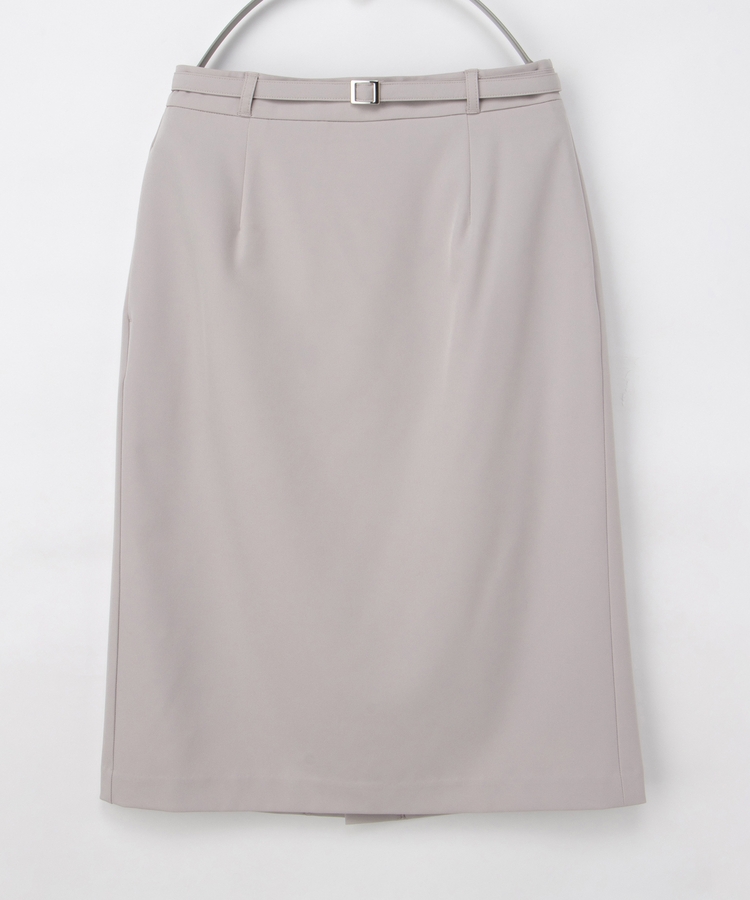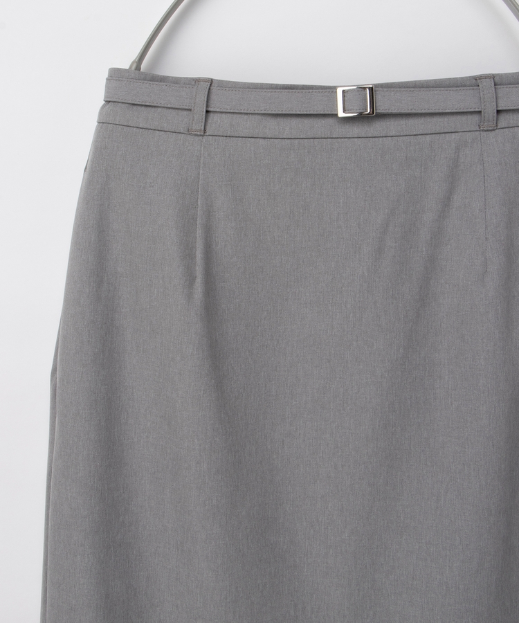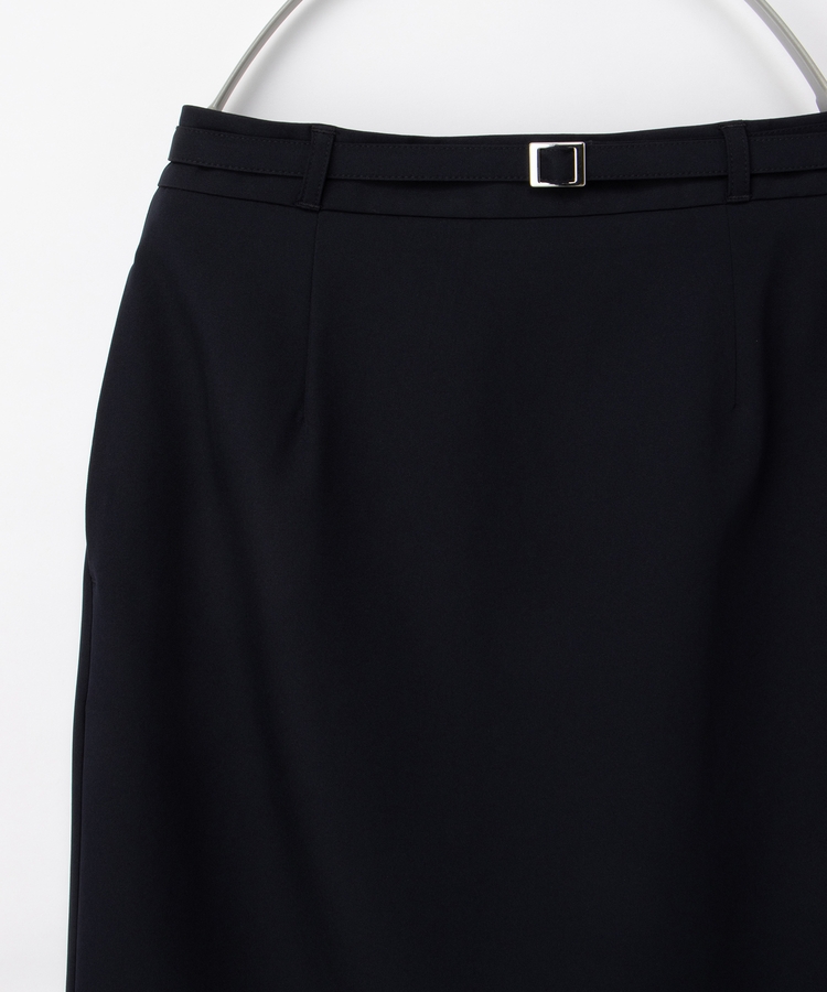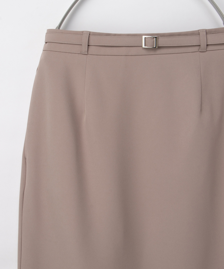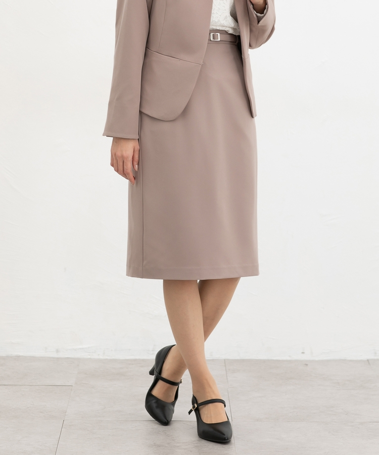 コーデのアクセントにもなる、シルバーバックルの共布ベルト付き。