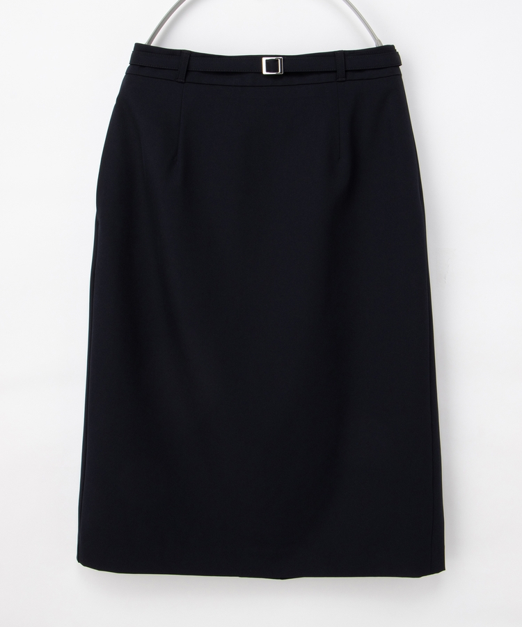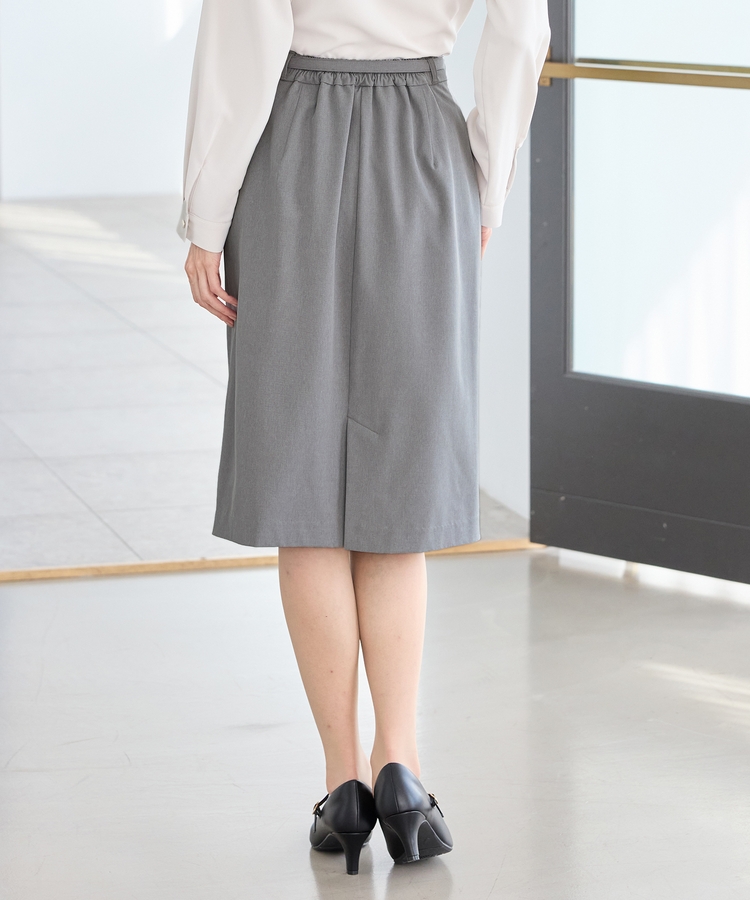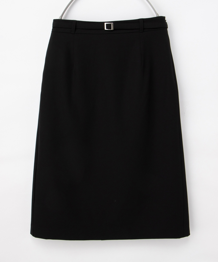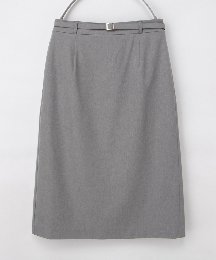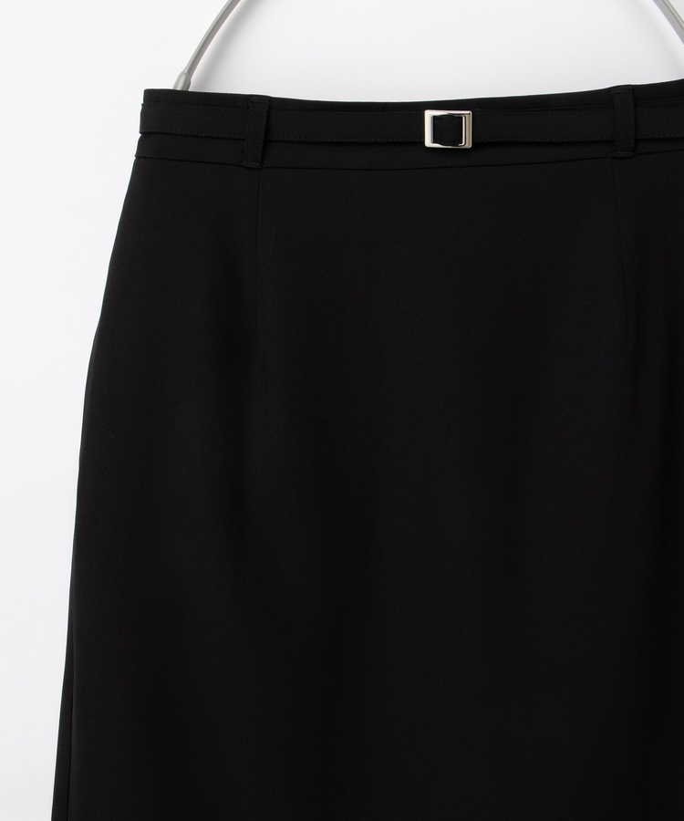 コーデのアクセントにもなる、シルバーバックルの共布ベルト付き。