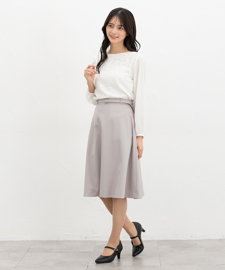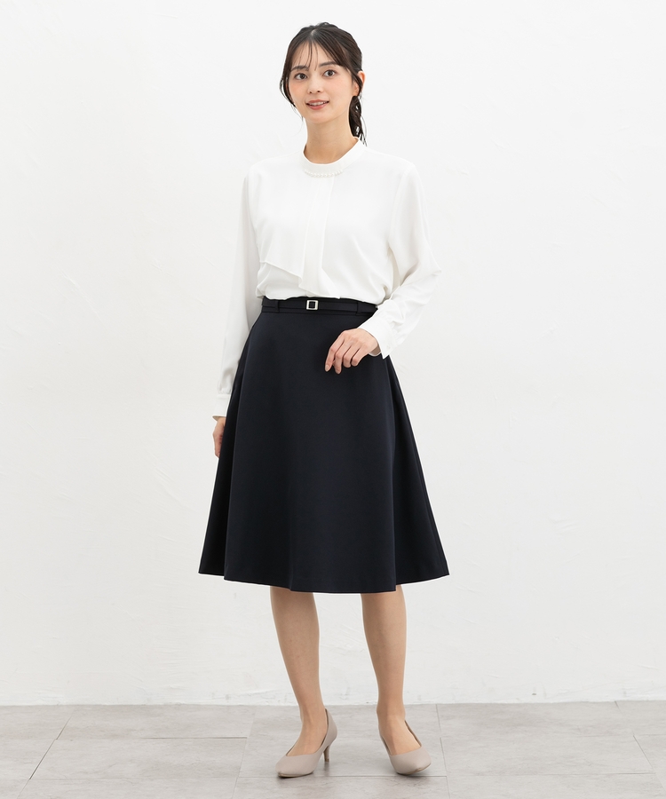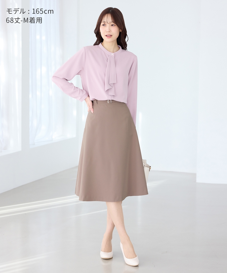 裾に向かって程よく広がるフレアの、大人フェミニンなきれい見えシルエット、64cm丈タイプ。