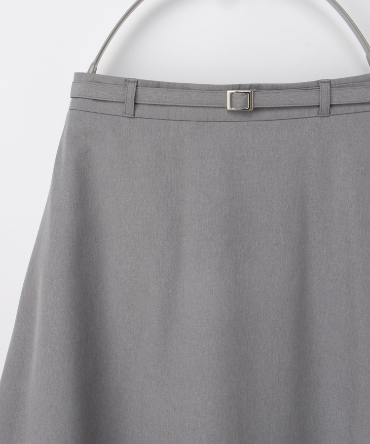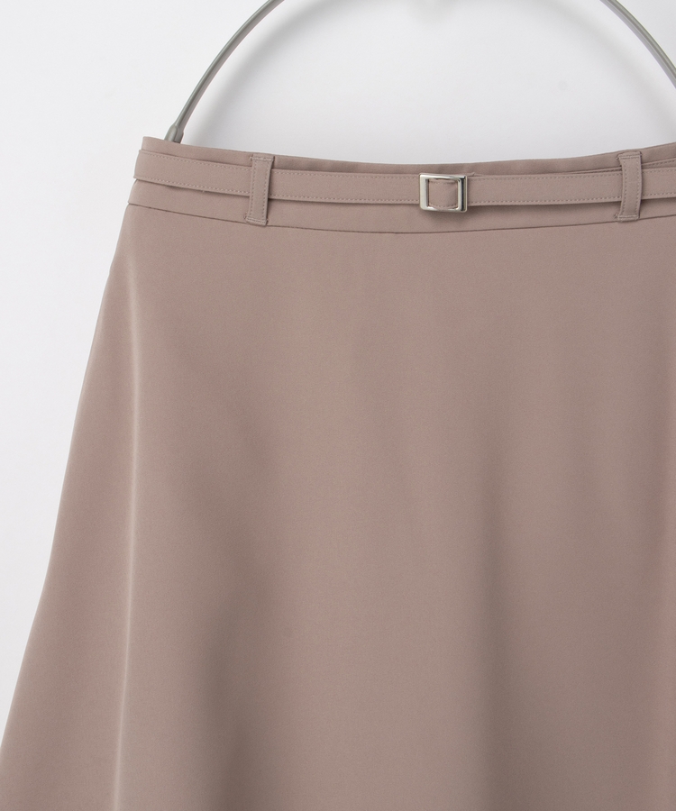 コーデのアクセントにもなる、シルバーバックルの共布ベルト付き。