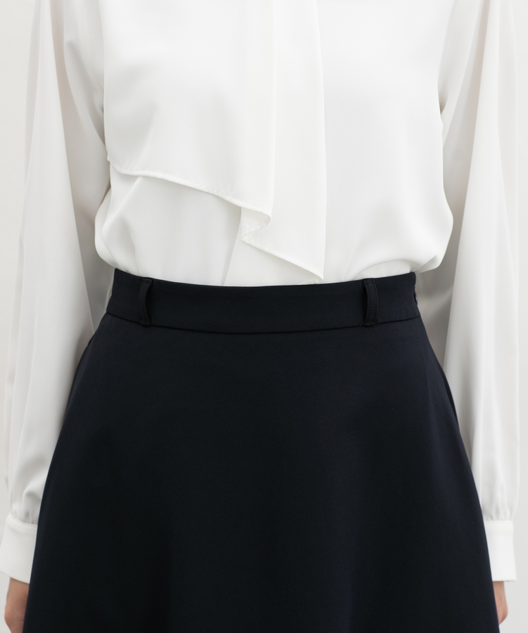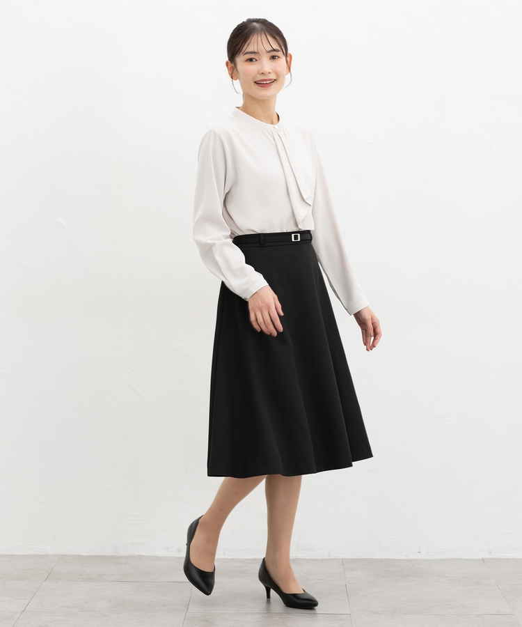 裾に向かって程よく広がるフレアの、大人フェミニンなきれい見えシルエット、68cm丈タイプ。