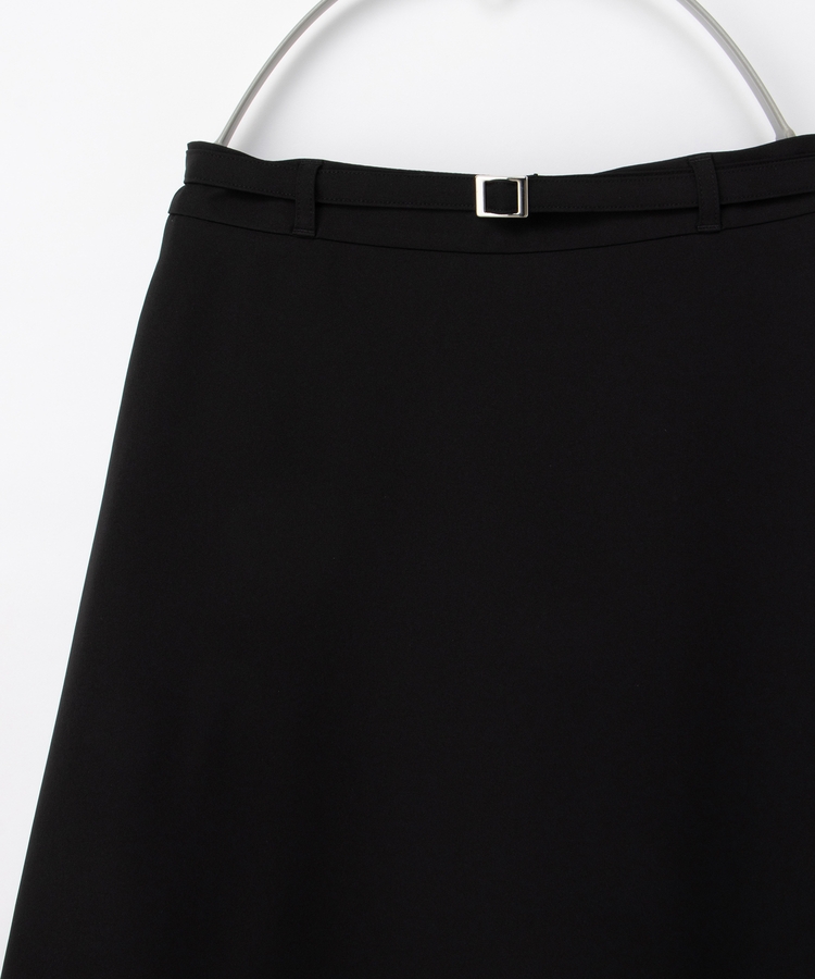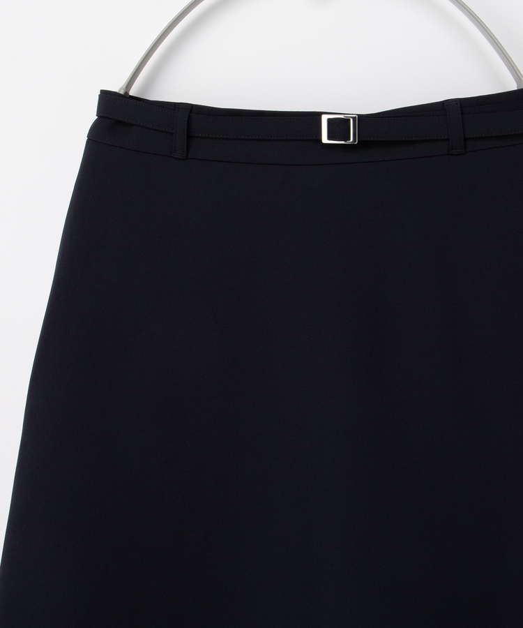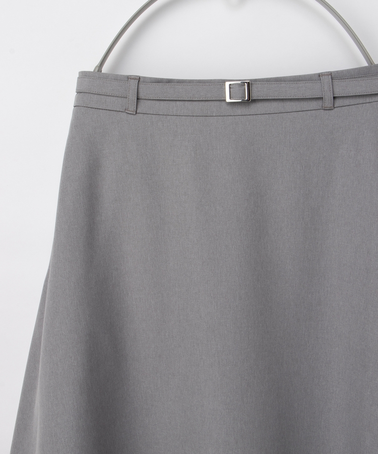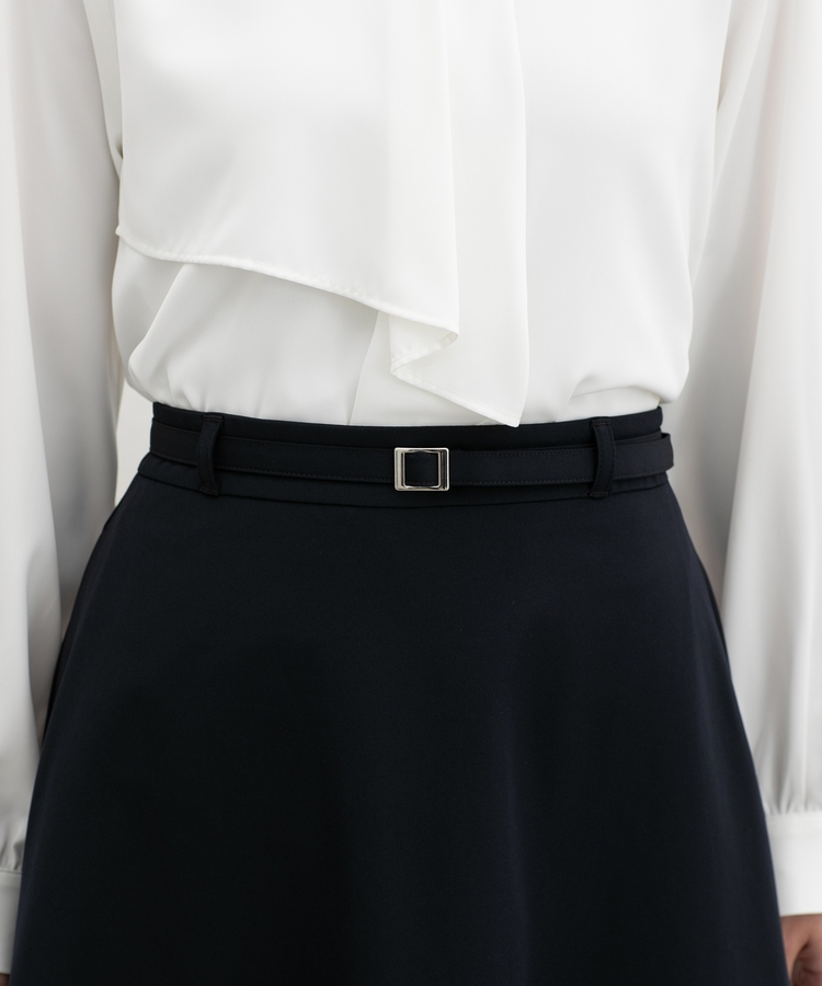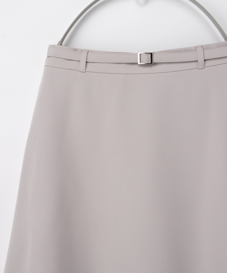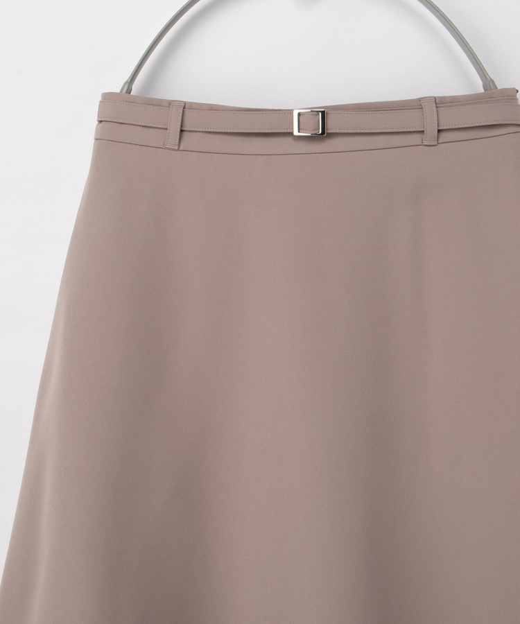 コーデのアクセントにもなる、シルバーバックルの共布ベルト付き。