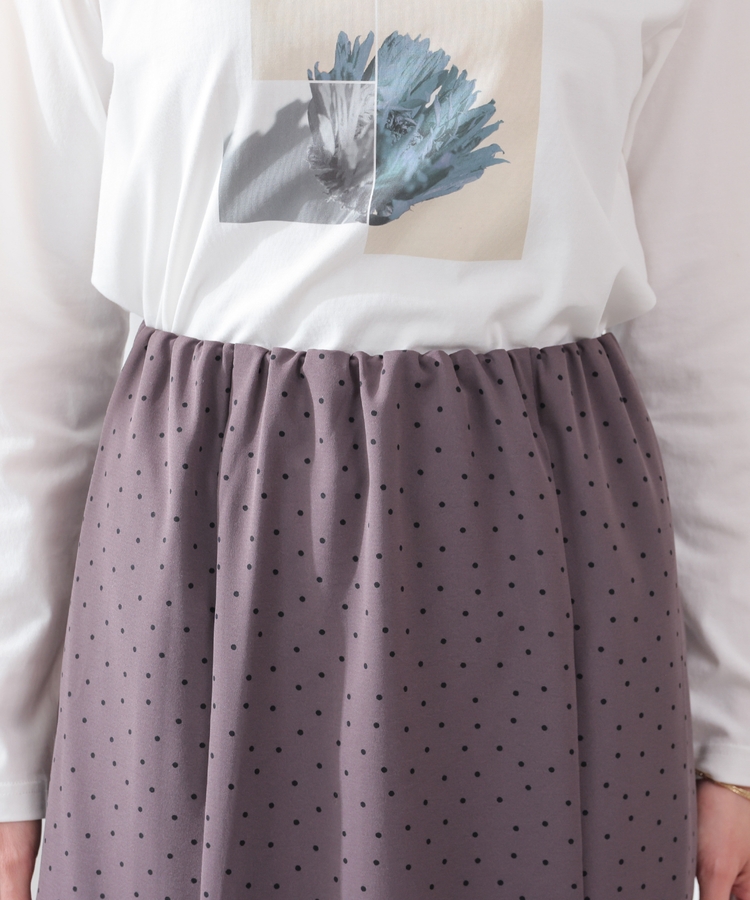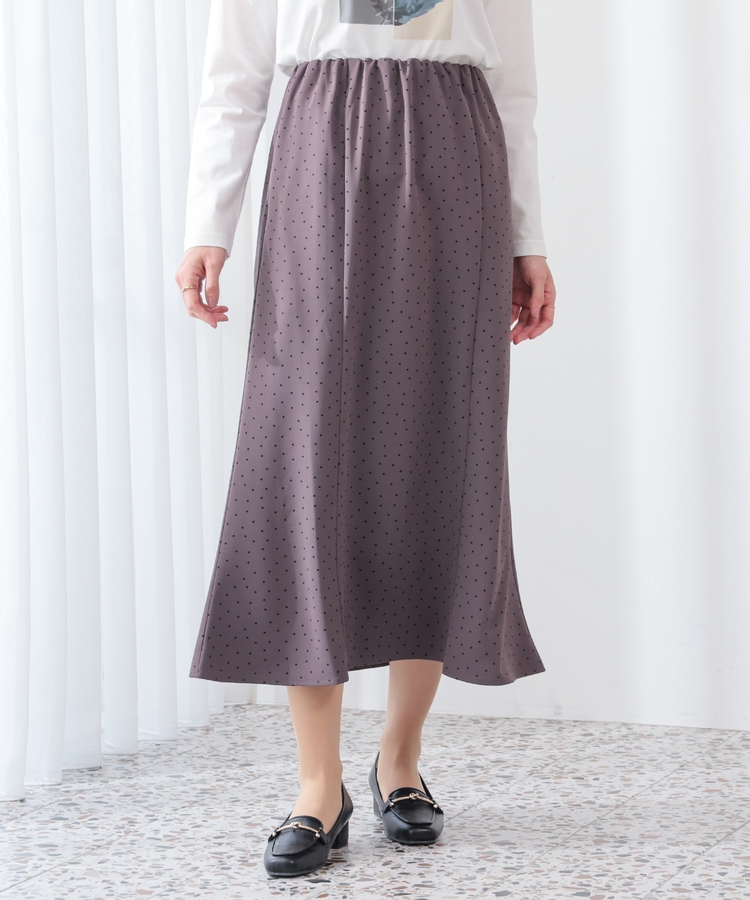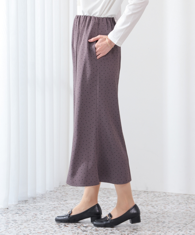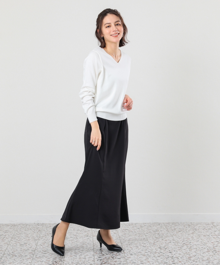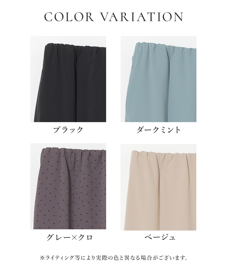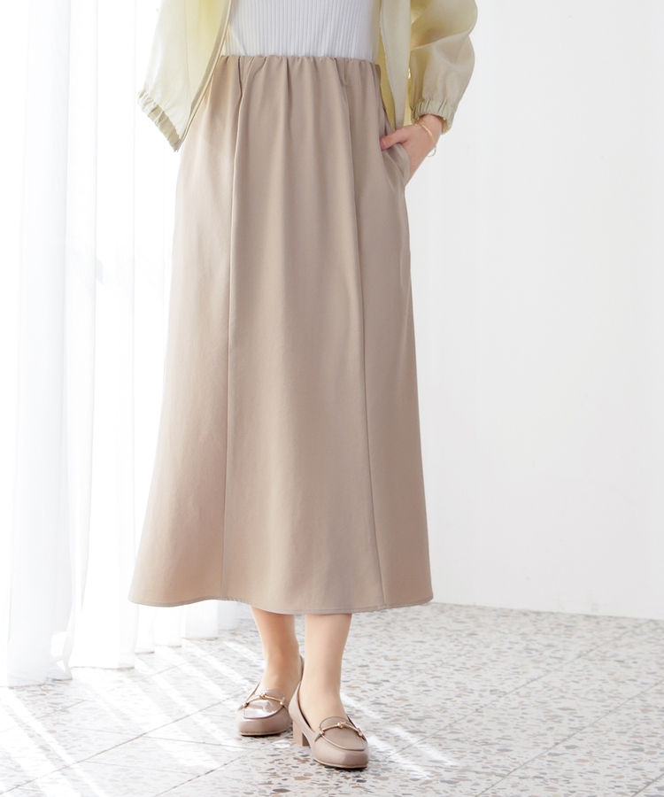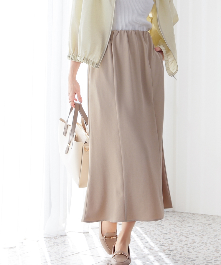 ヒップや太もも周りにゆとりのある、広がりすぎず体のラインを拾いすぎない絶妙なシルエットで、大人の女性に嬉しいデザイン。