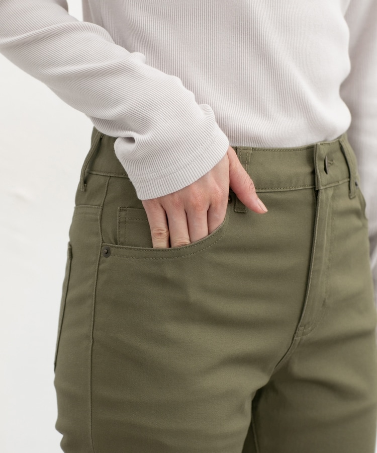 ラクに美脚見せできる、しっかりした生地と綺麗なシルエット。