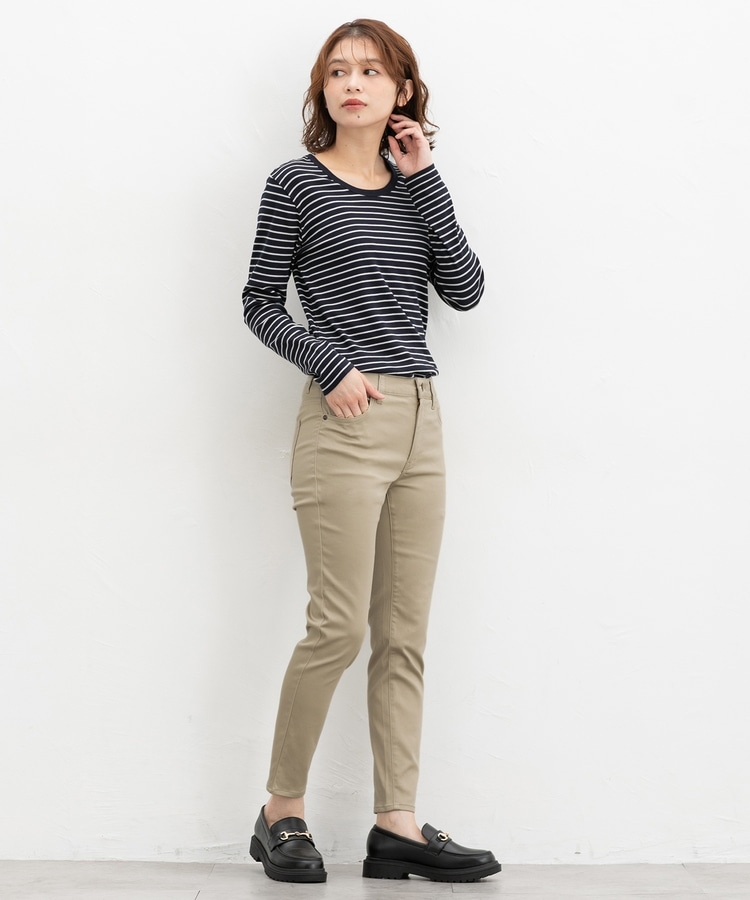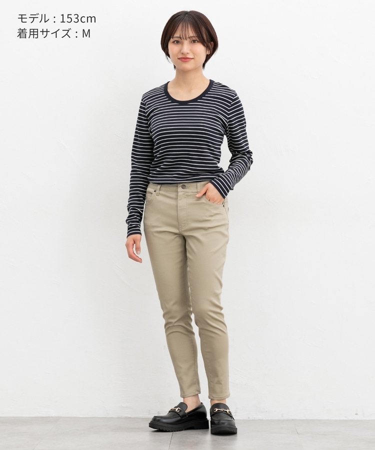オールシーズン着用可能な定番カラースキニー、股下63cmタイプ。