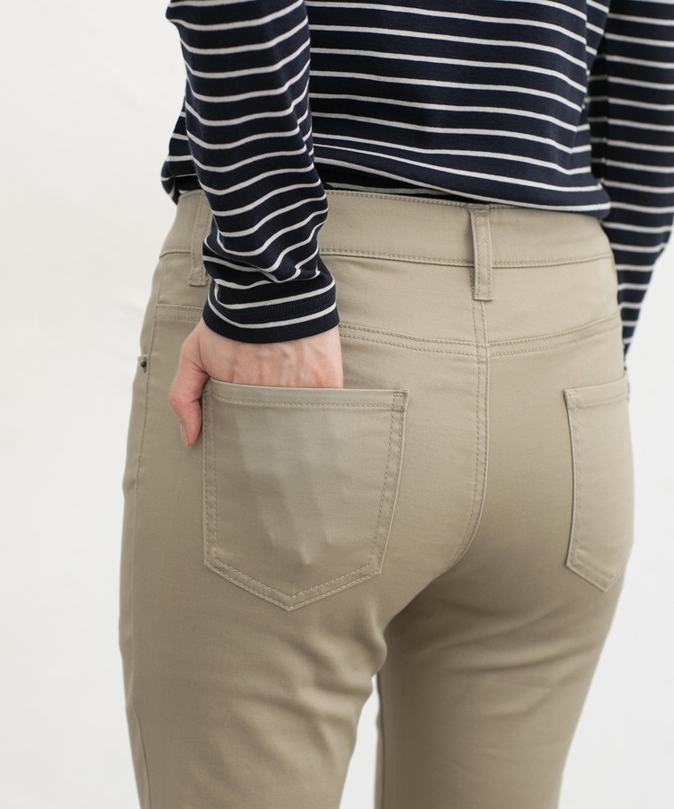 ラクに美脚見せできる、しっかりした生地と綺麗なシルエット。