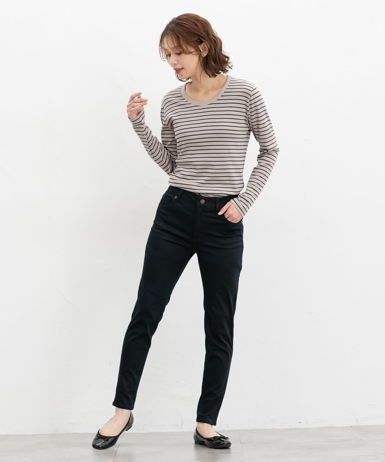 オールシーズン着用可能な定番カラースキニー、股下66cmタイプ。