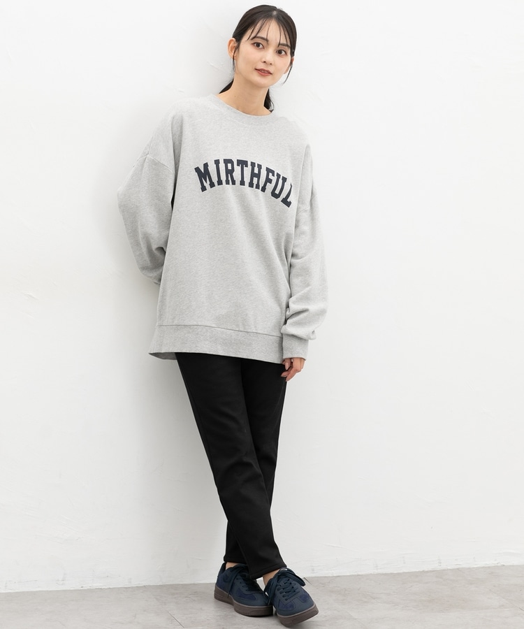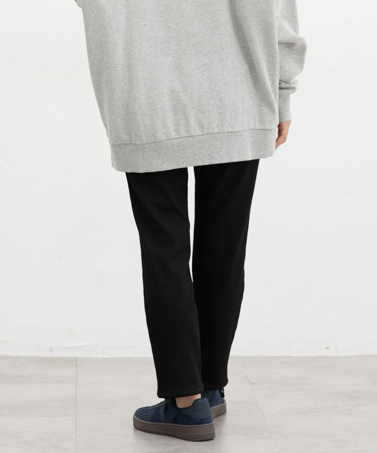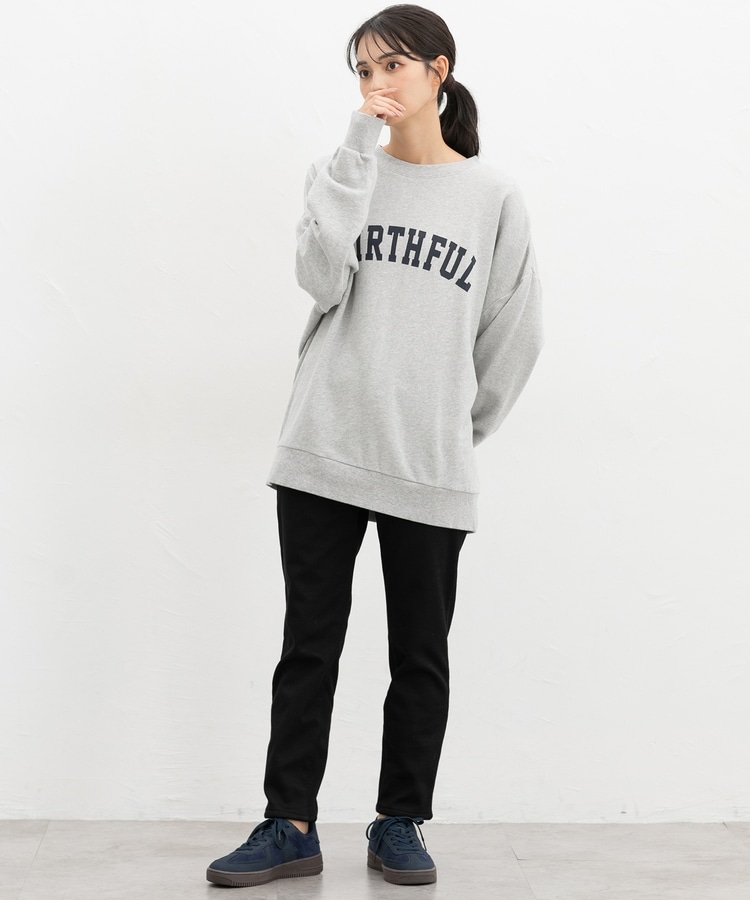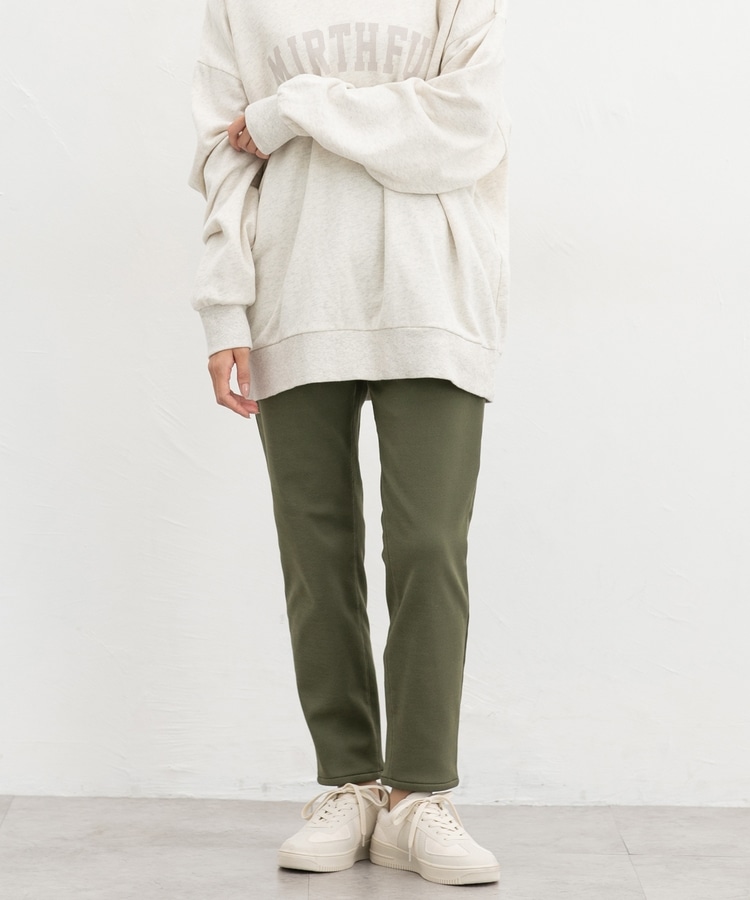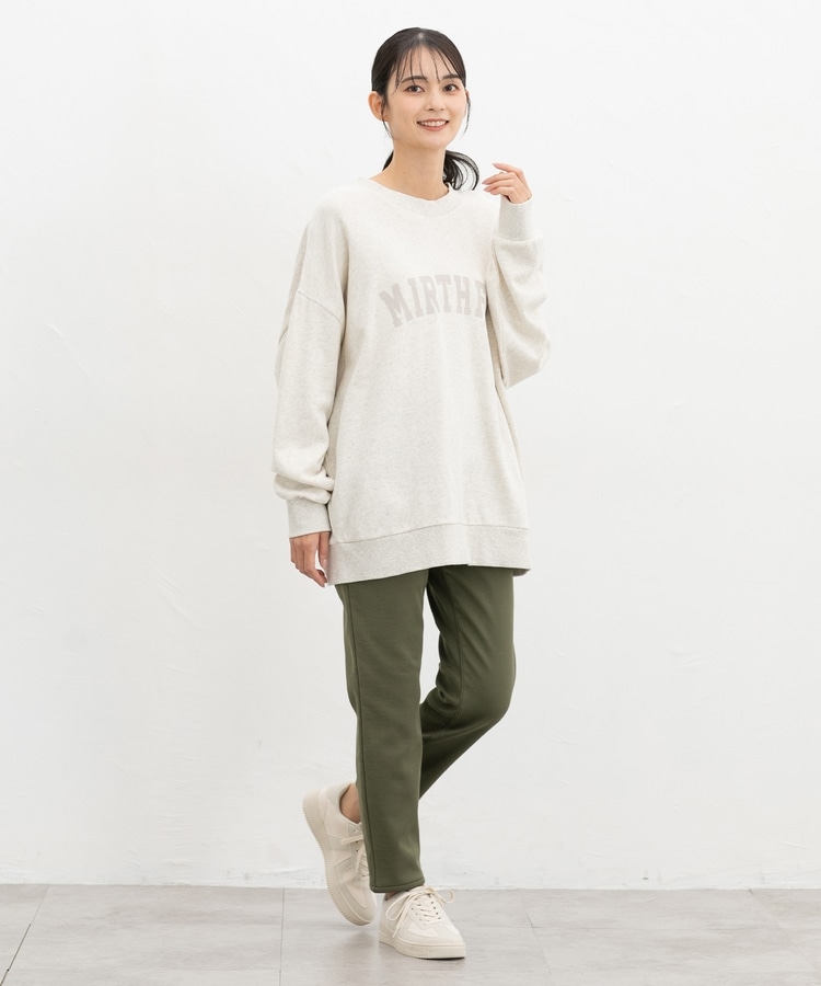 ゆるっとしたニットやスウェットと合わせてメリハリをつけるコーデがおすすめ。