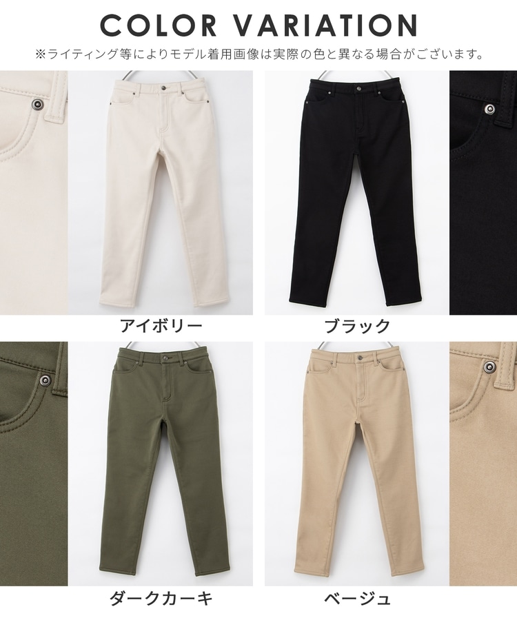 寒い季節にうれしいカラースキニー、股下63cmタイプ。