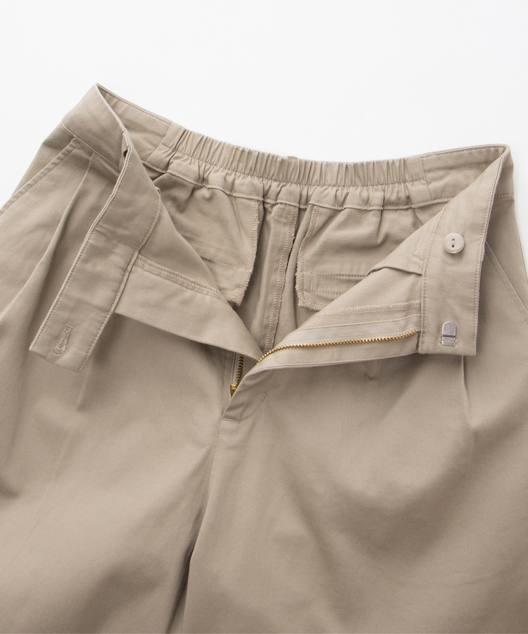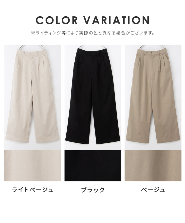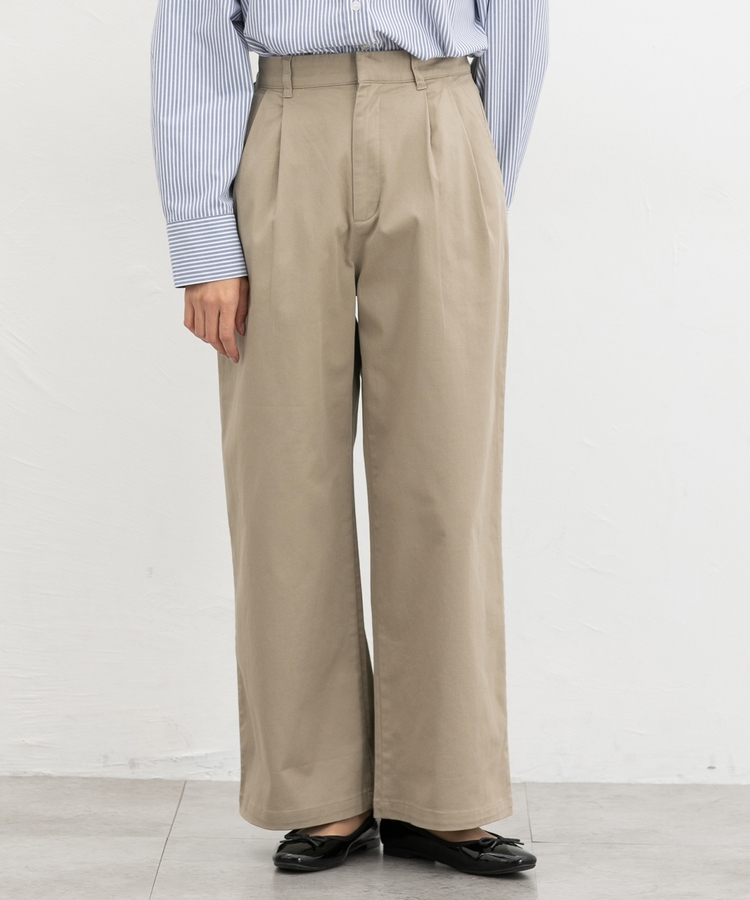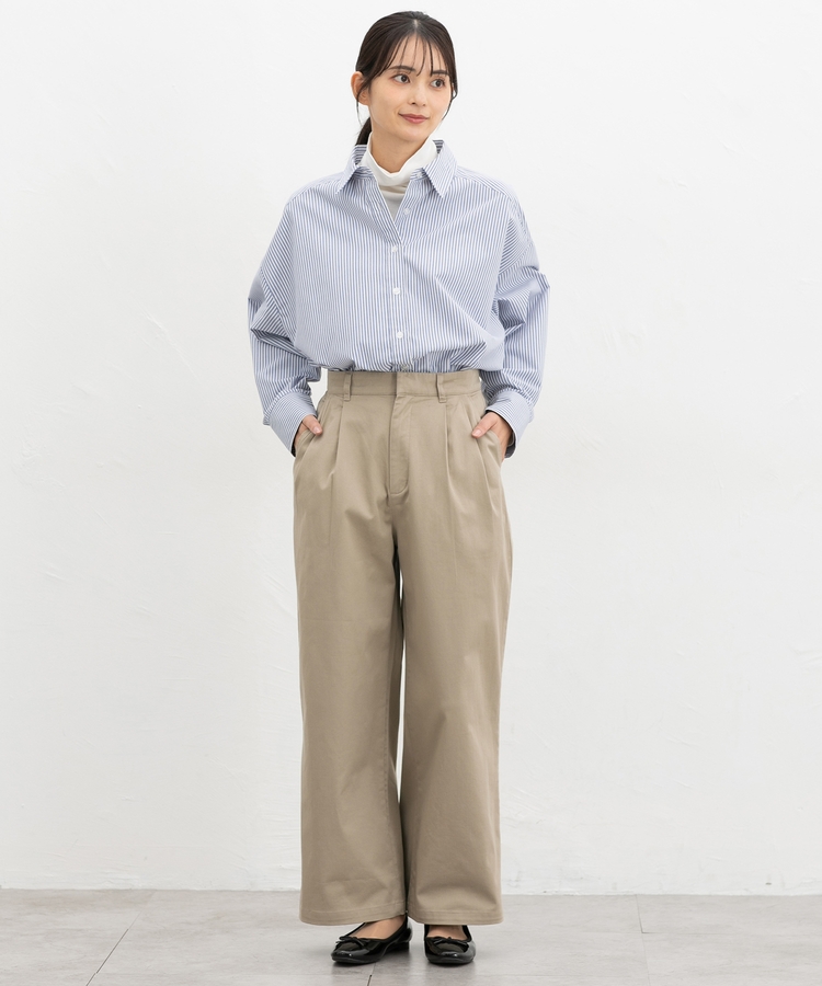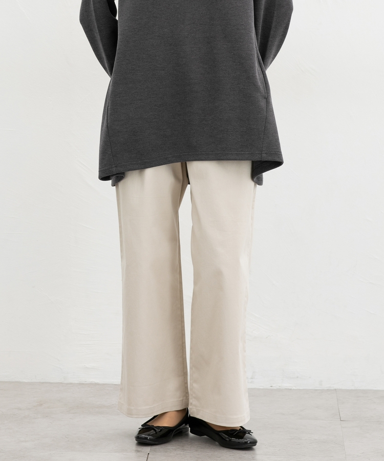広がりすぎないワイドシルエットのチノストレート、股下66cmタイプ。