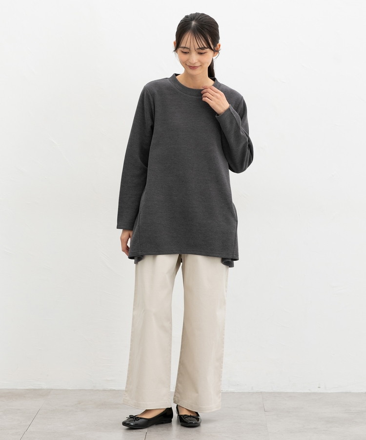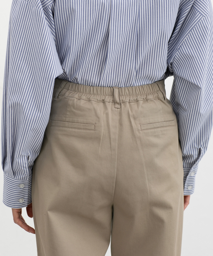 ストレッチ生地と後ろウエストゴムで、はき心地抜群。