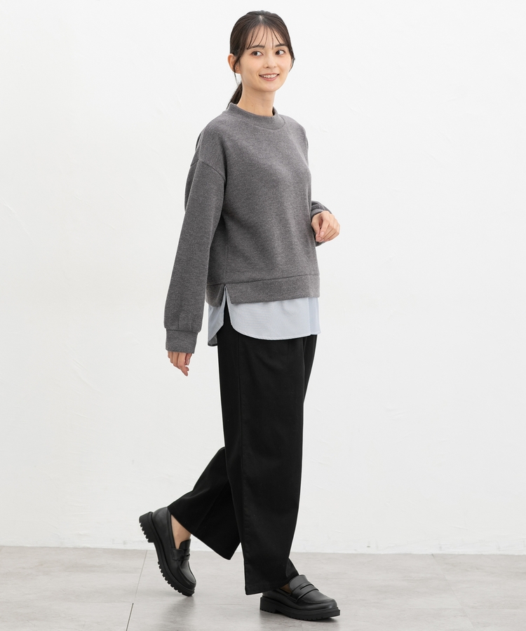 Tシャツやスウェット、パーカーなどと合わせるのはもちろん、きれいめブラウスと合わせるのも◎