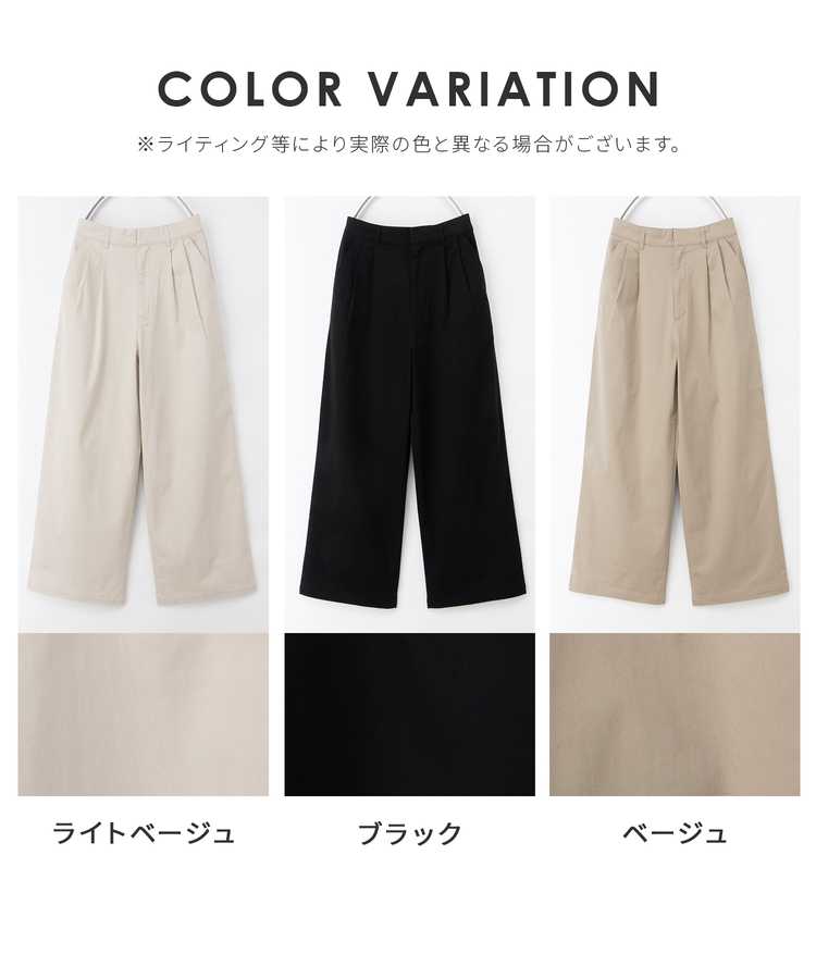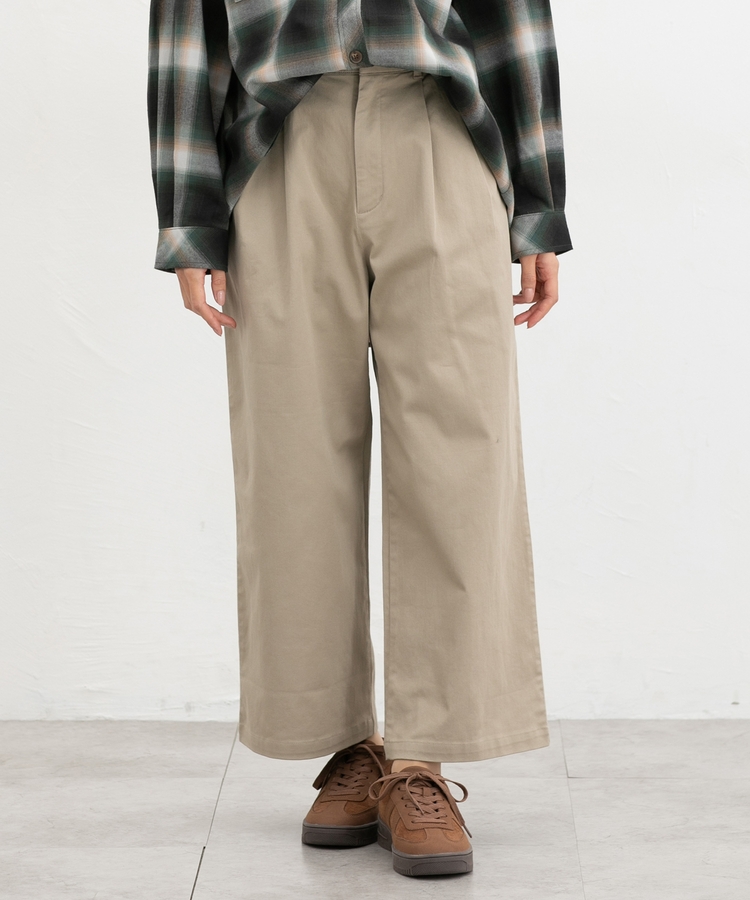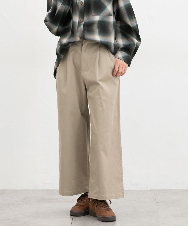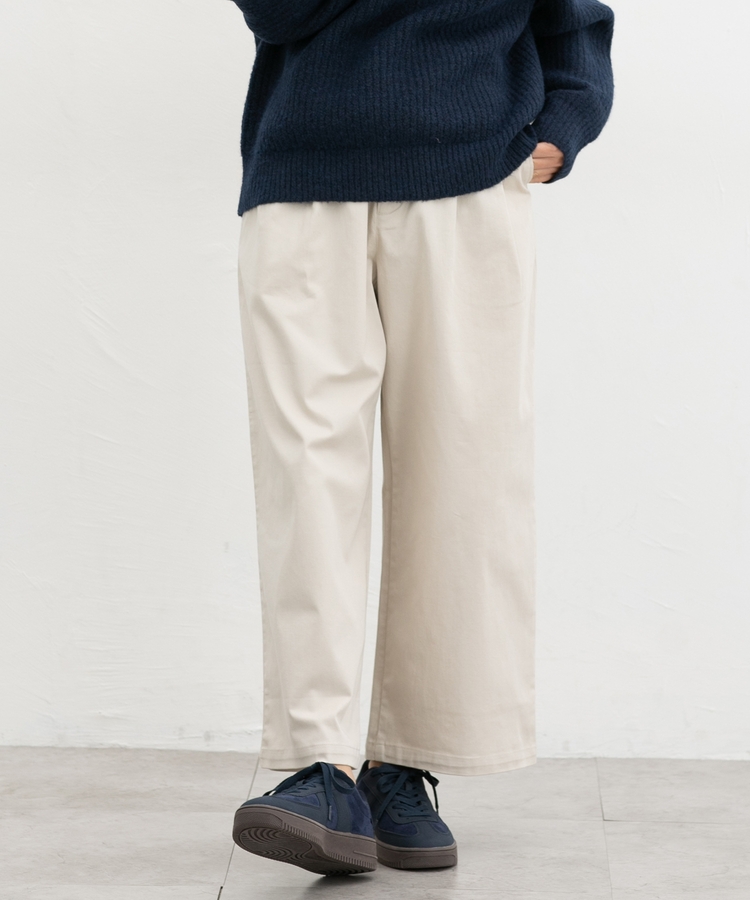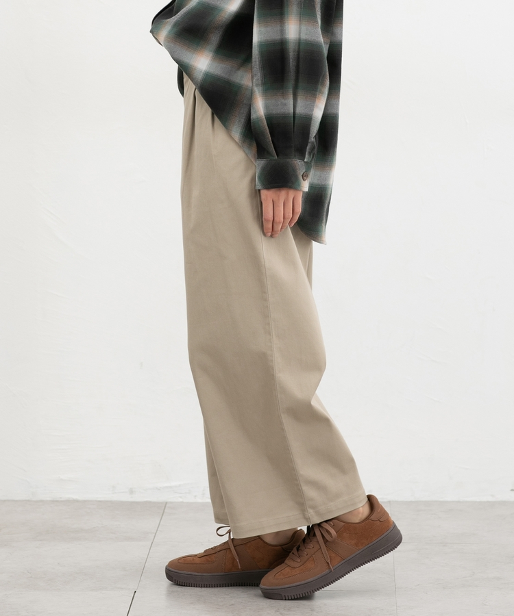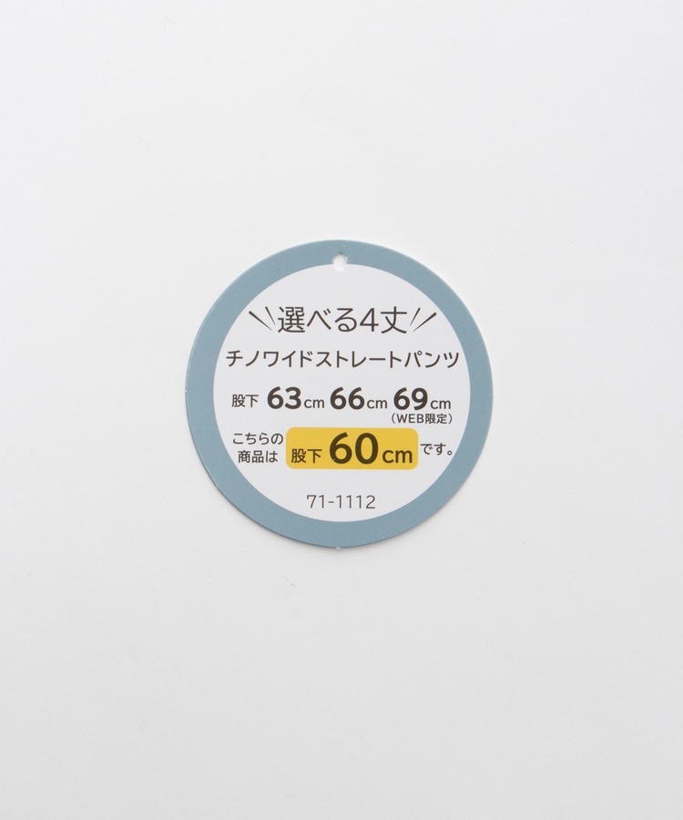 広がりすぎないワイドシルエットのチノストレート、股下60cmタイプ。