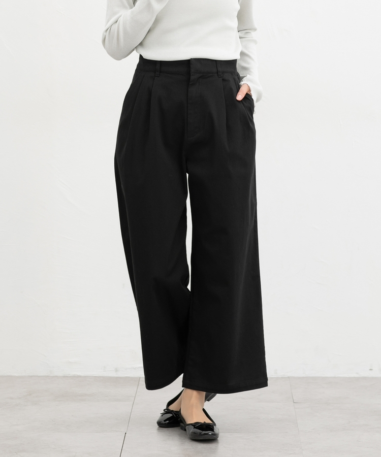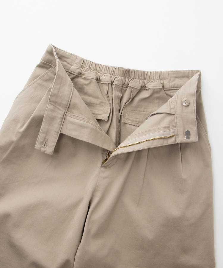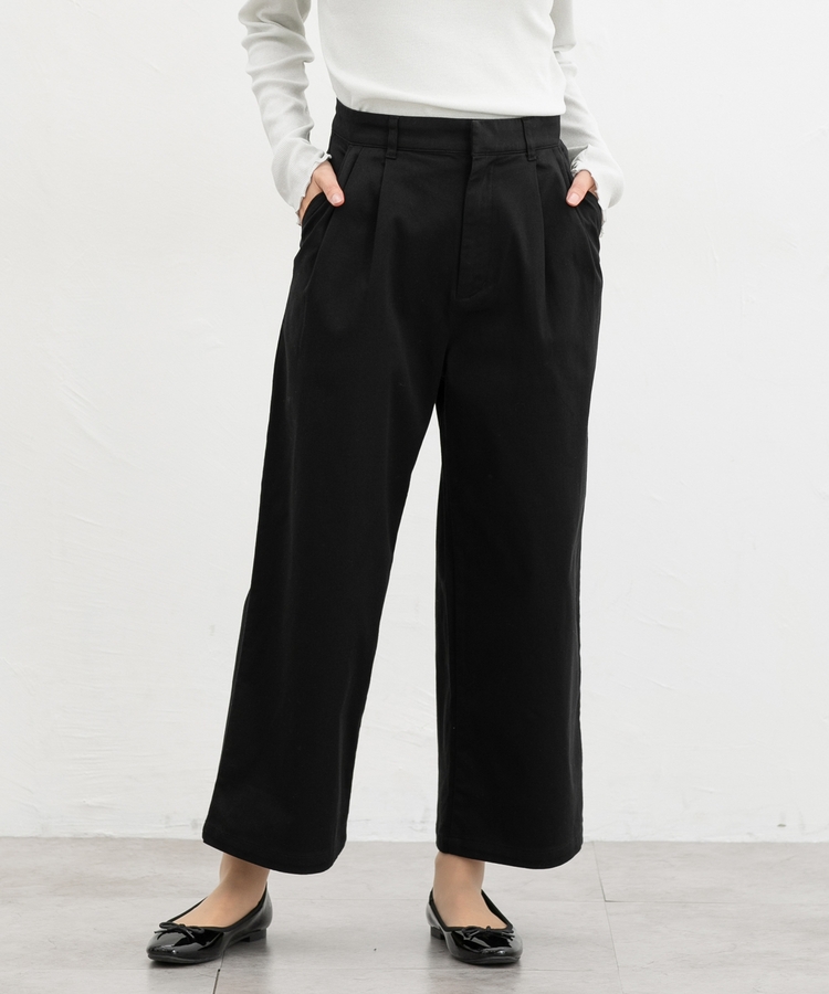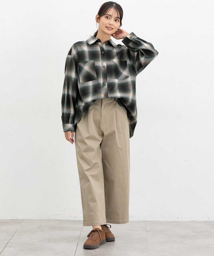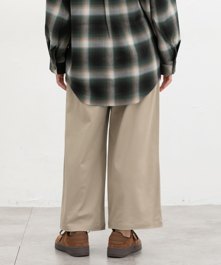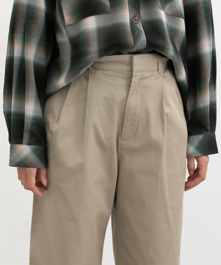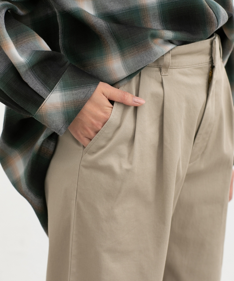 広がりすぎないワイドシルエットのチノストレート、股下60cmタイプ。