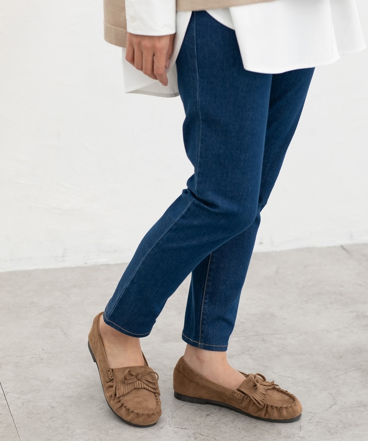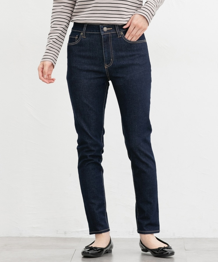 スキニーよりもややピッタリとしたシルエットながら、ストレッチが利いた生地で、楽に美脚に見せてはき心地も快適。