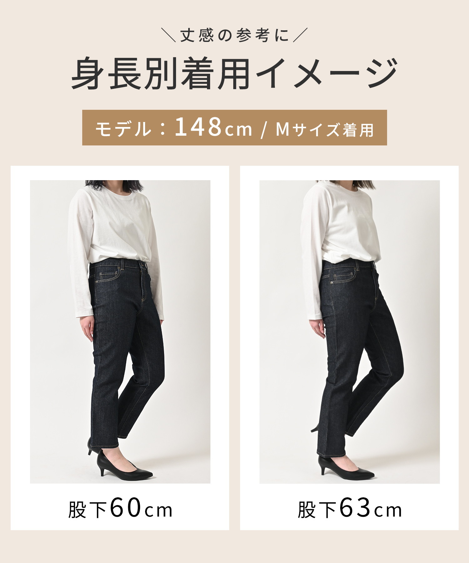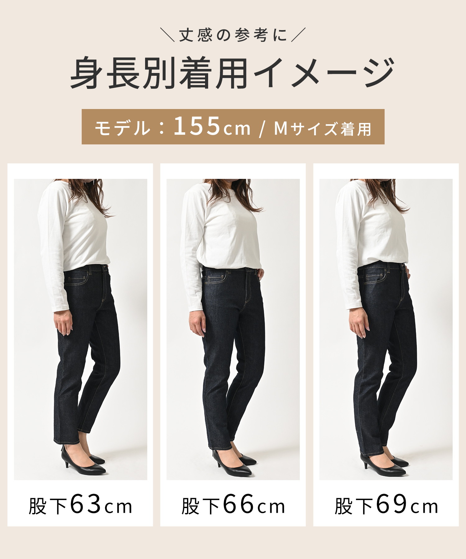 年代問わず愛される定番人気のデニムスキニー、股下60cmタイプ。