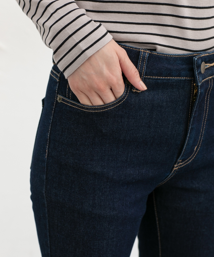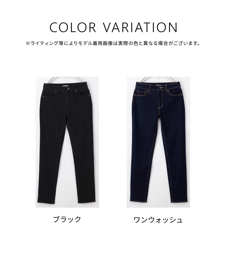 スキニーよりもややピッタリとしたシルエットながら、ストレッチが利いた生地で、楽に美脚に見せてはき心地も快適。