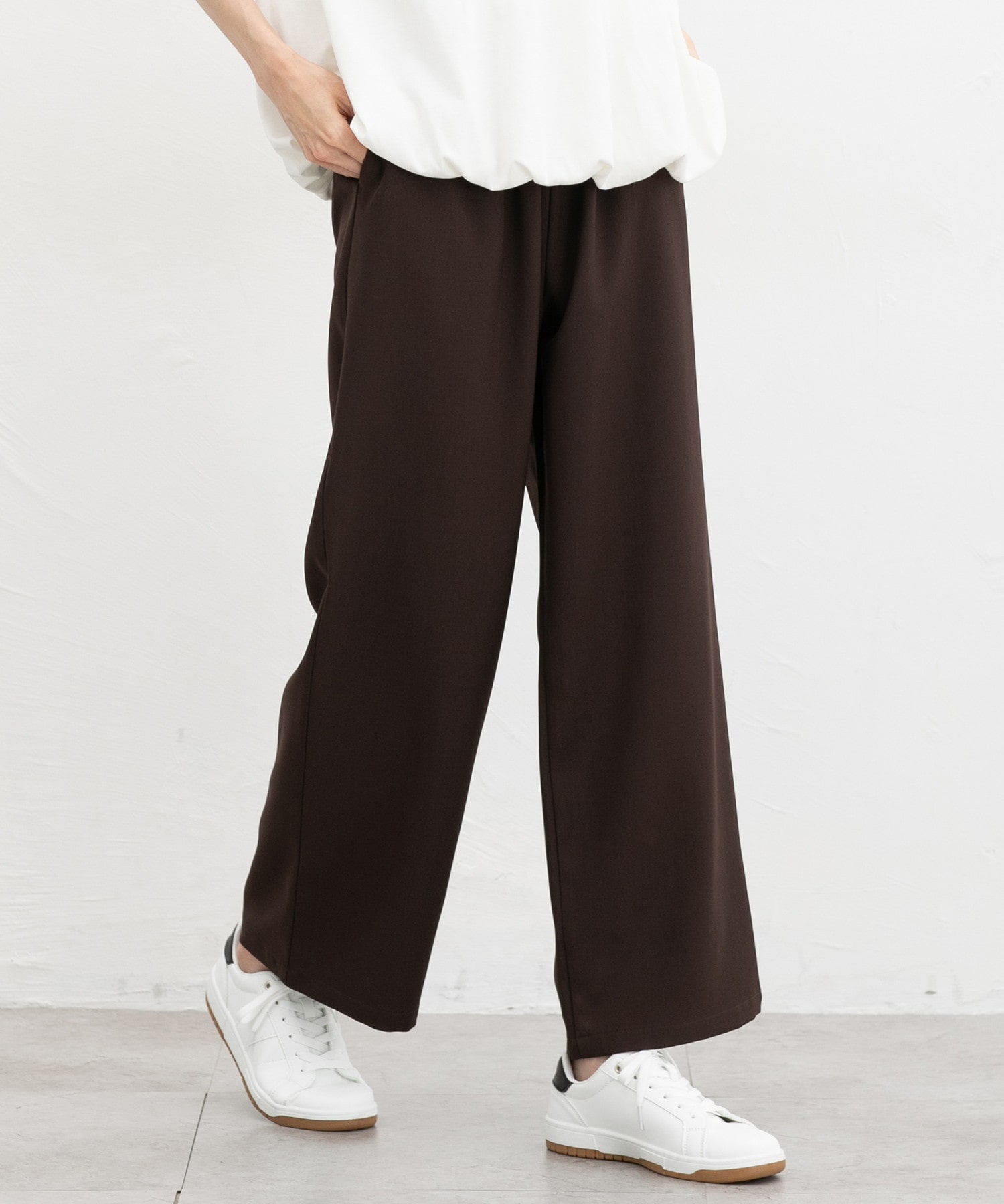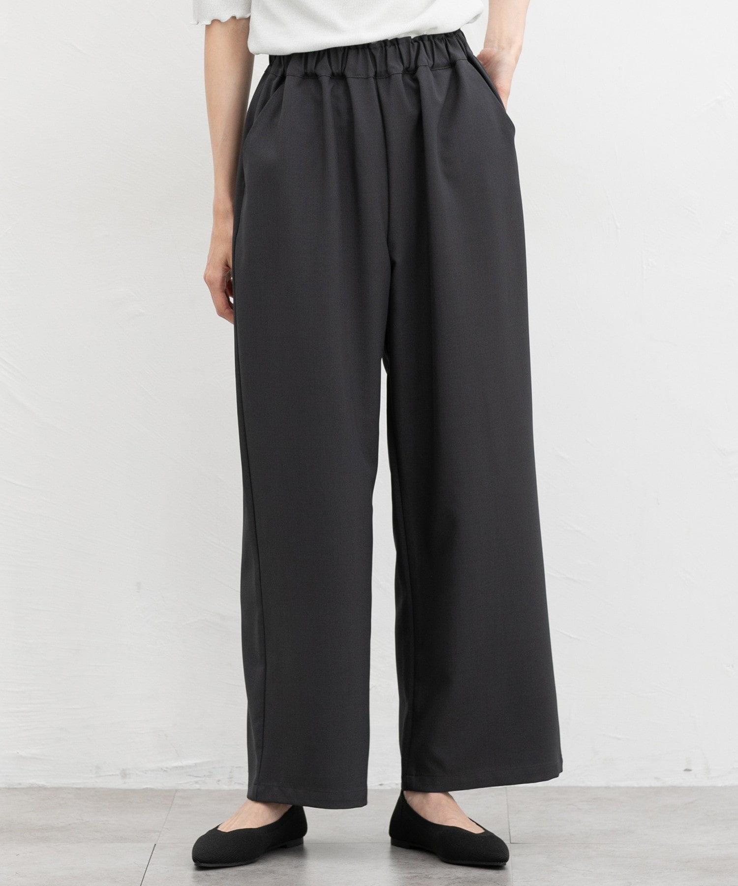 ウエストゴムでリラクシーながら、きれいな表面感でお出かけにもピッタリ。