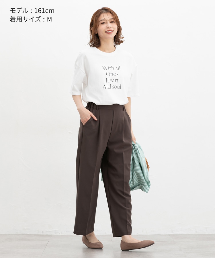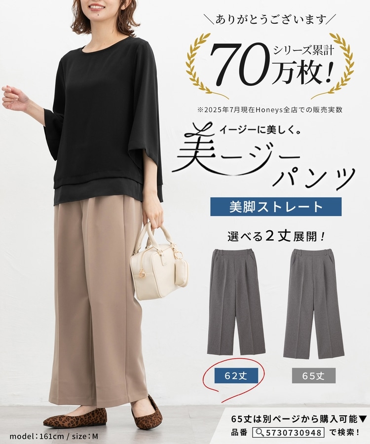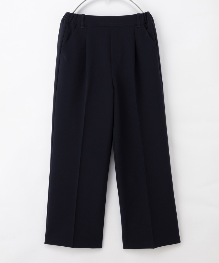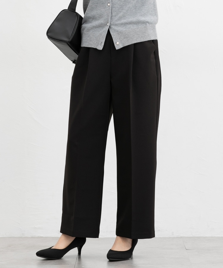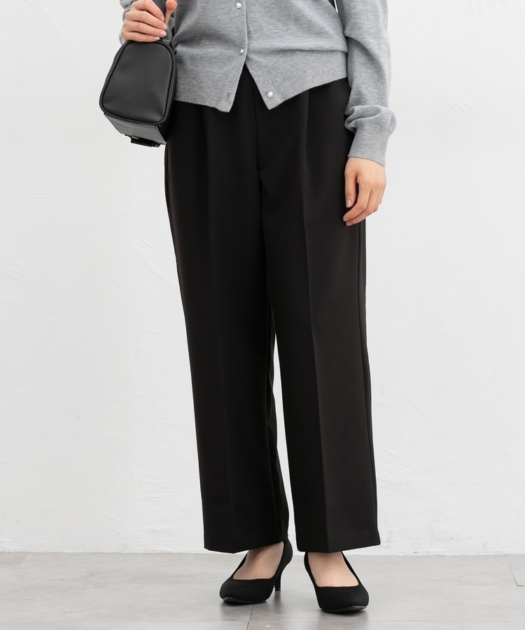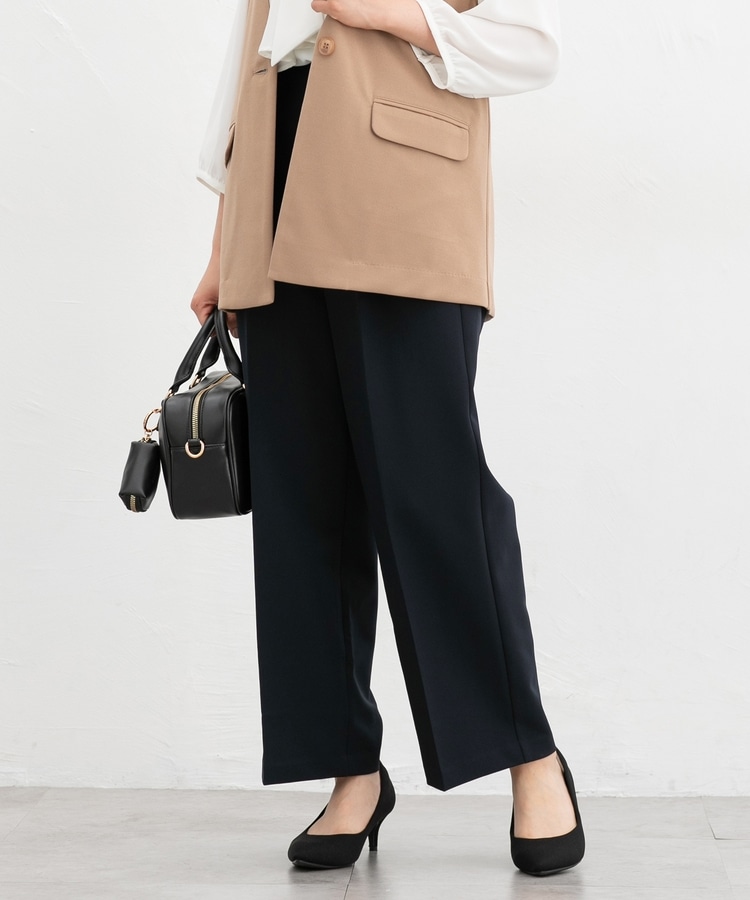 きちんと感のあるセンタープレスと腰回りのラインにこだわった美しいストレートシルエットで美脚効果も抜群。