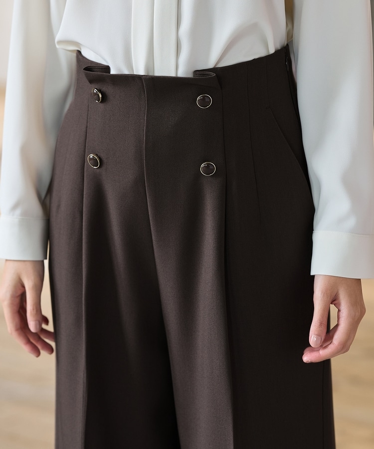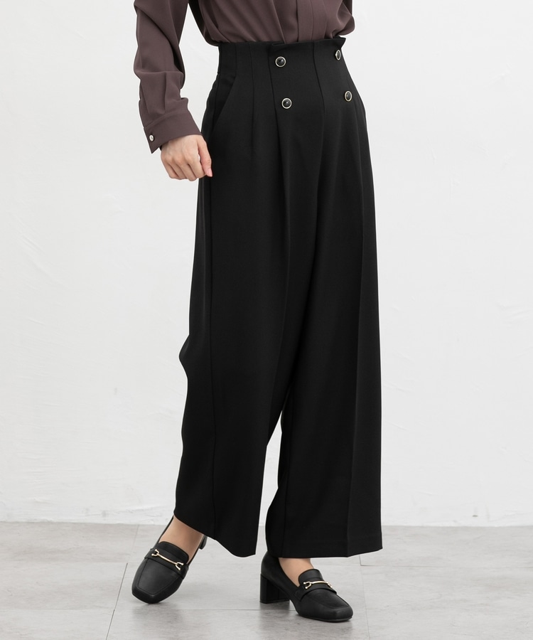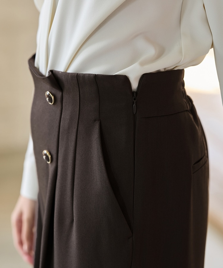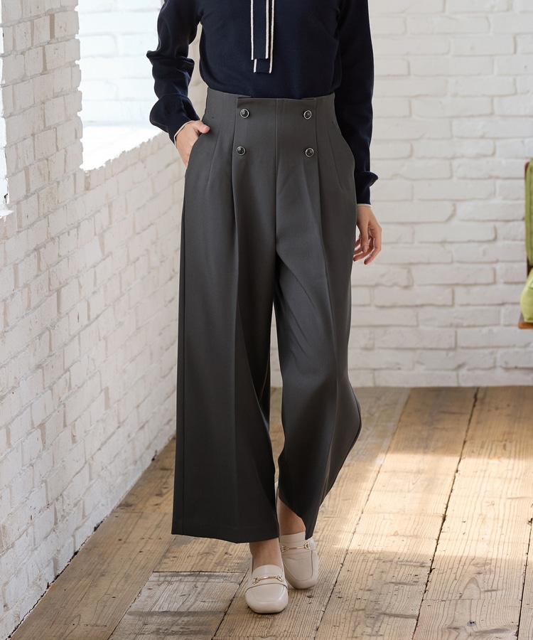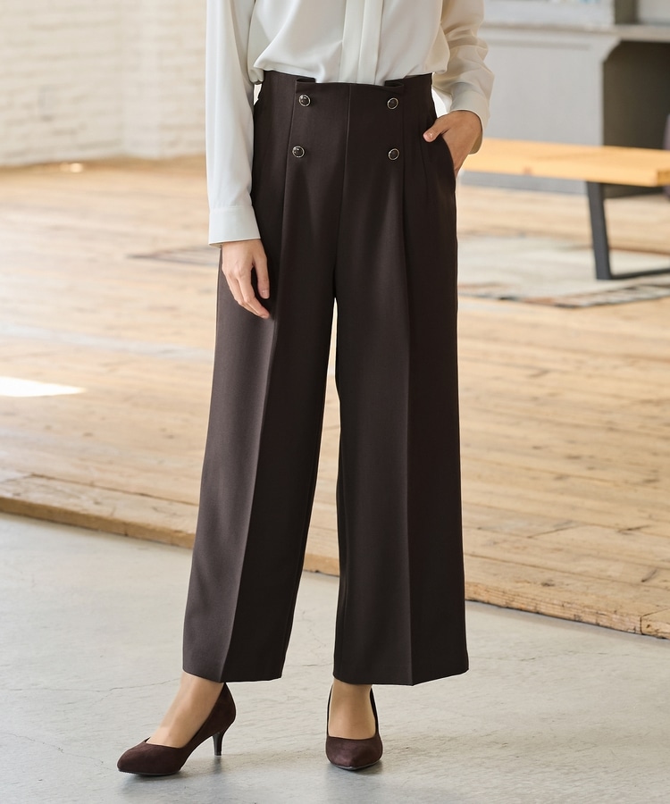 中心のみに設定した後ろゴムで、腰回りの広がりを抑えてきれい見えを叶え、センタープレスとハイウエストで美脚効果も抜群。