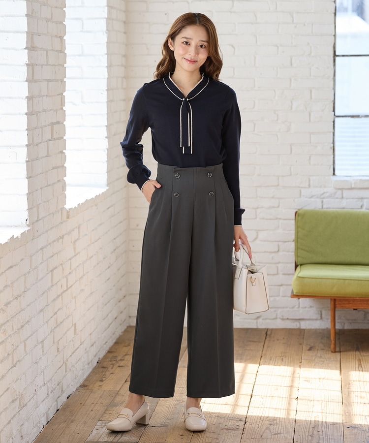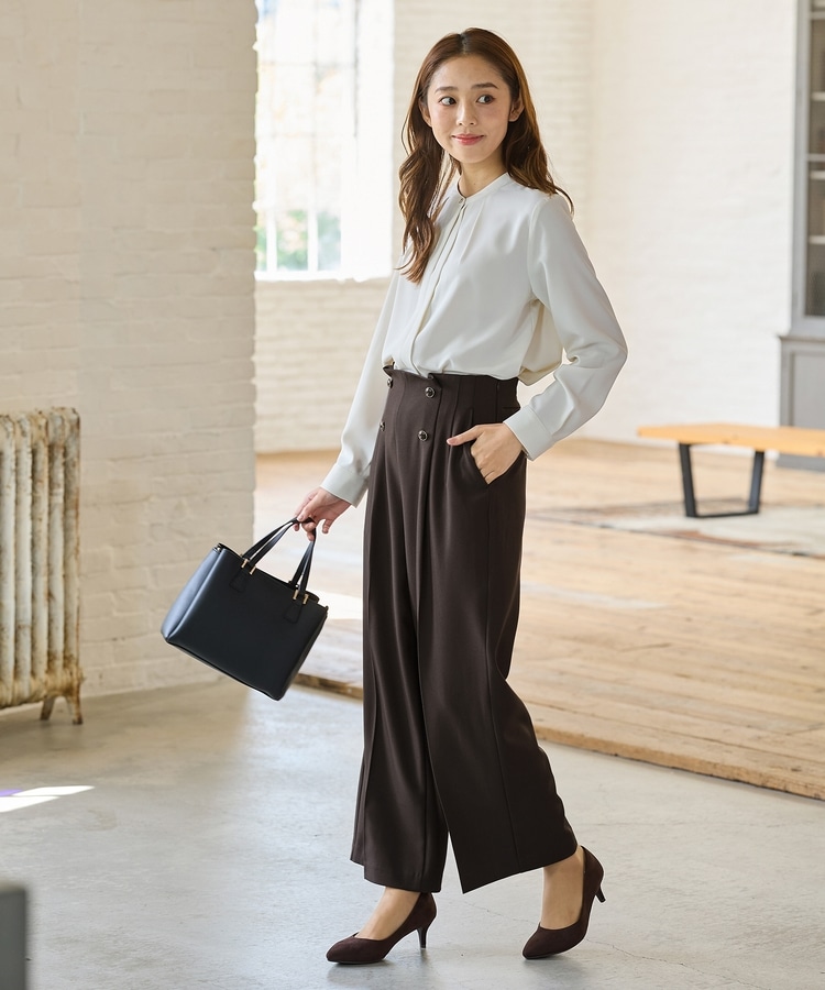 シンプルなTシャツと合わせた大人カジュアルはもちろん、きれいめな通勤スタイルにも活躍。
