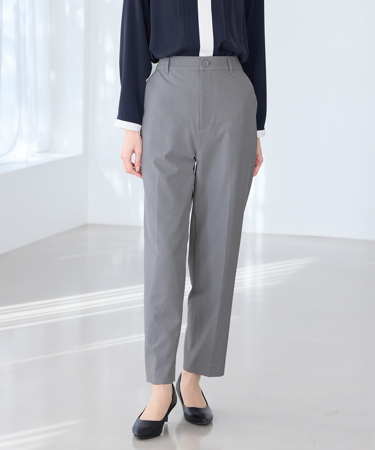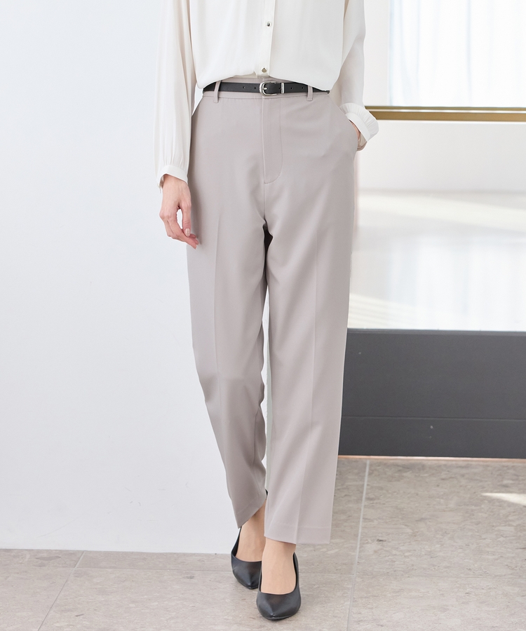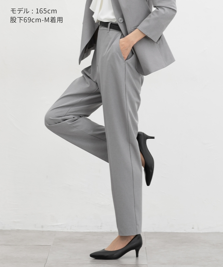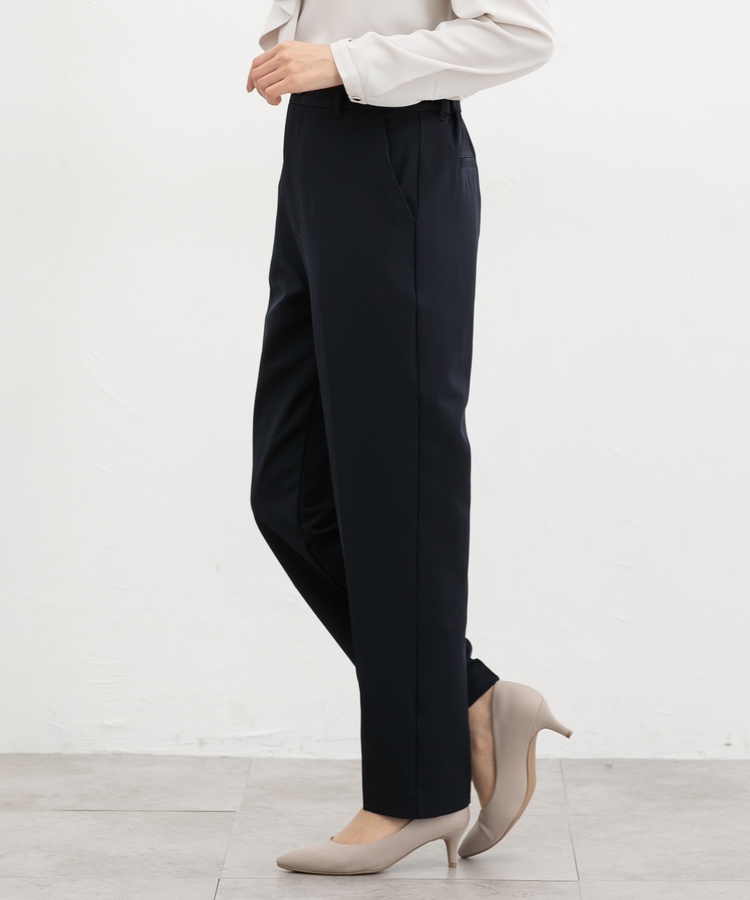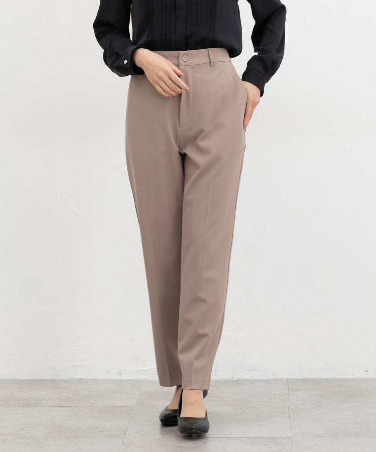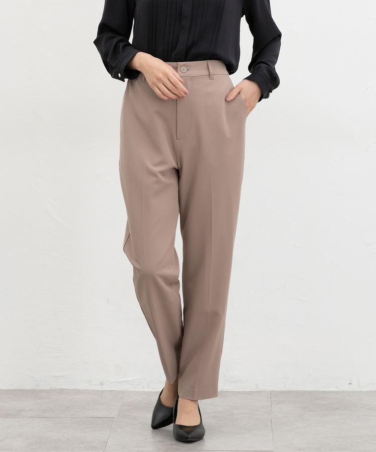 きちんと感のあるセンタープレス入りで、美脚効果も抜群のテーパードパンツ、股下66cmタイプ。