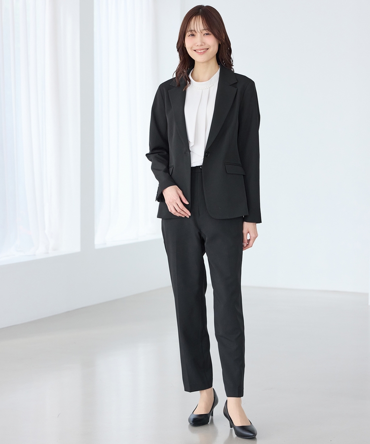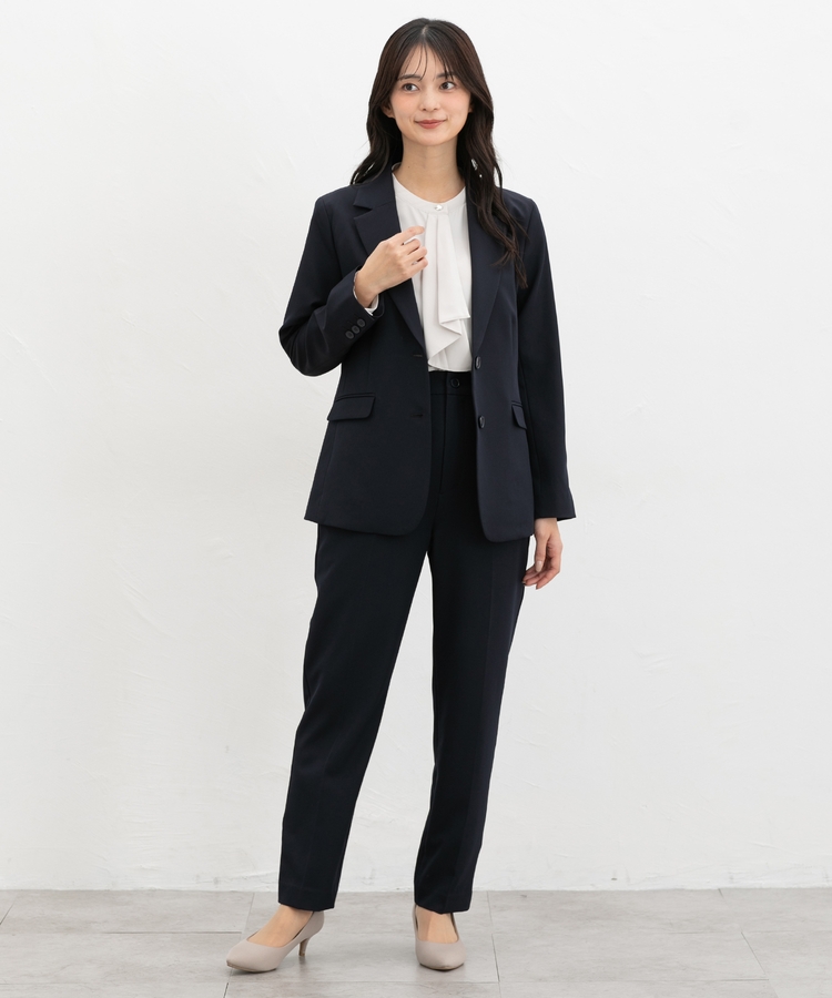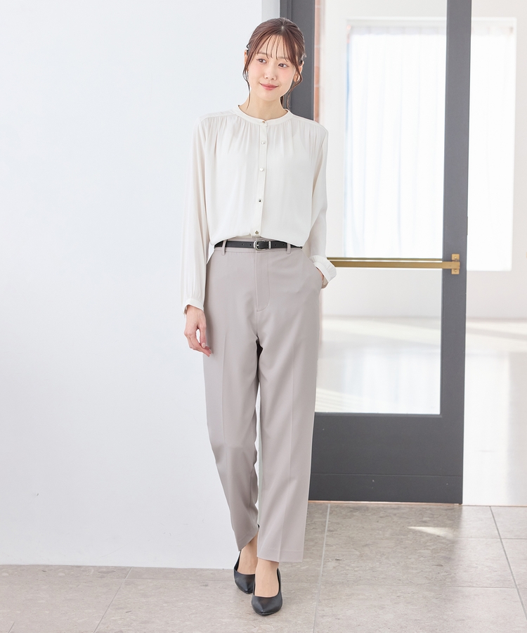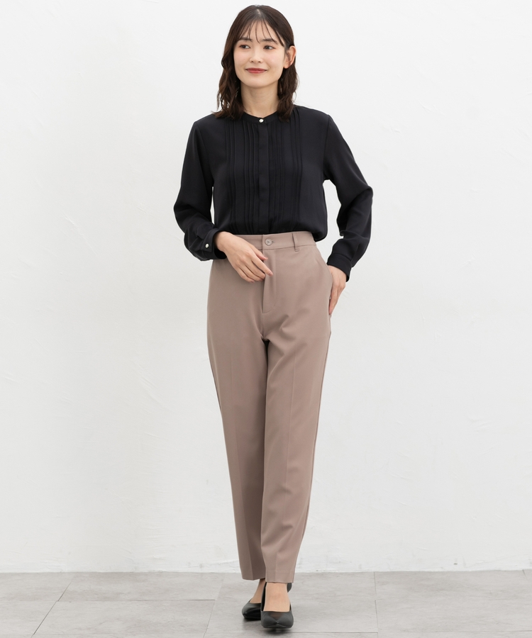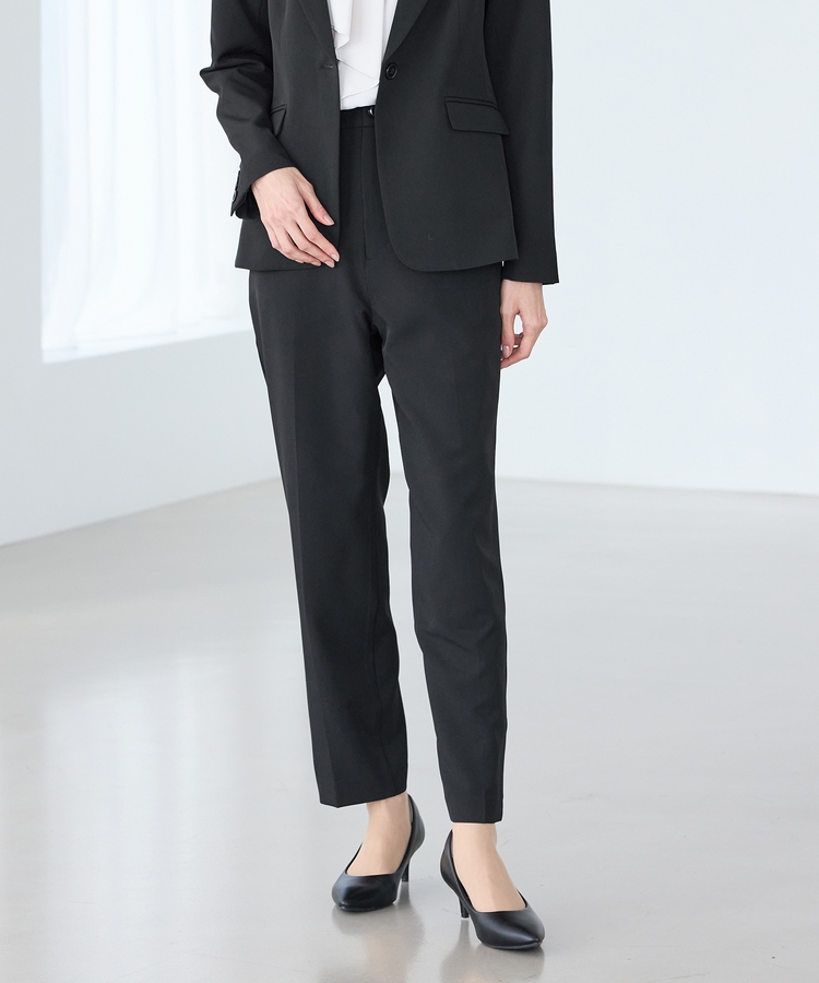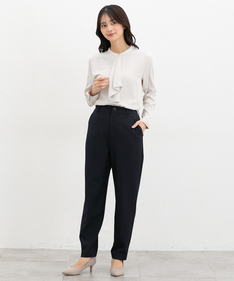 きちんと感のあるセンタープレス入りで、美脚効果も抜群のテーパードパンツ、股下66cmタイプ。