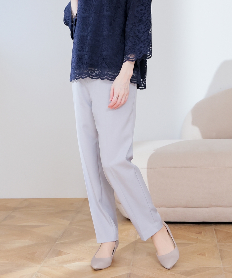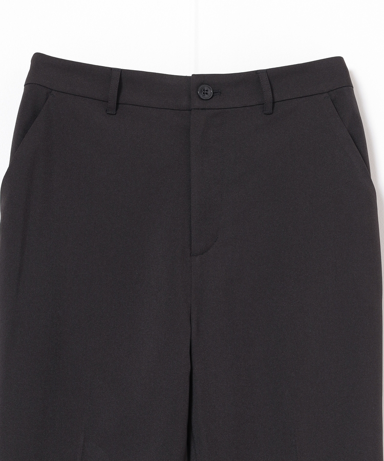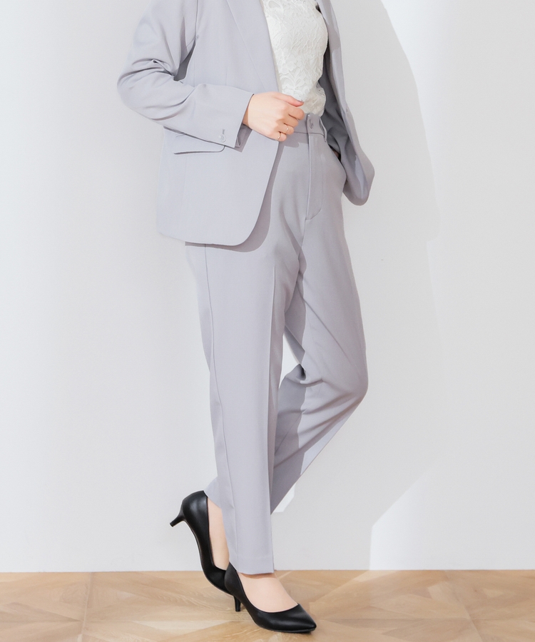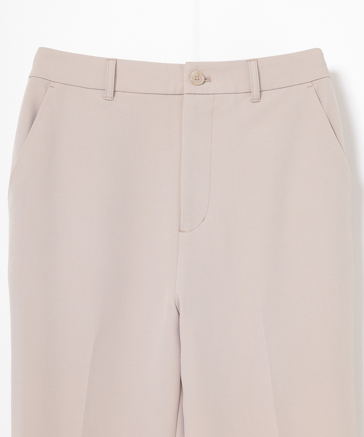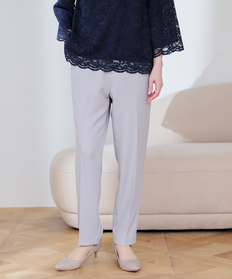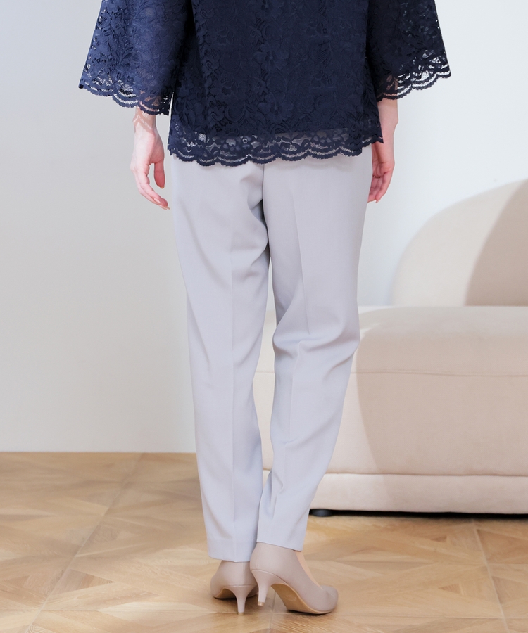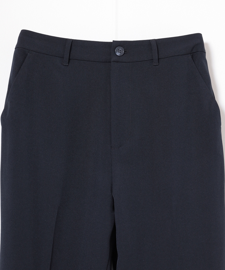 縦ラインを強調するセンタープレスと、腰回りのラインにこだわった、裾に向かって細くなるすっきりとしたシルエットで美脚効果抜群のデザイン。