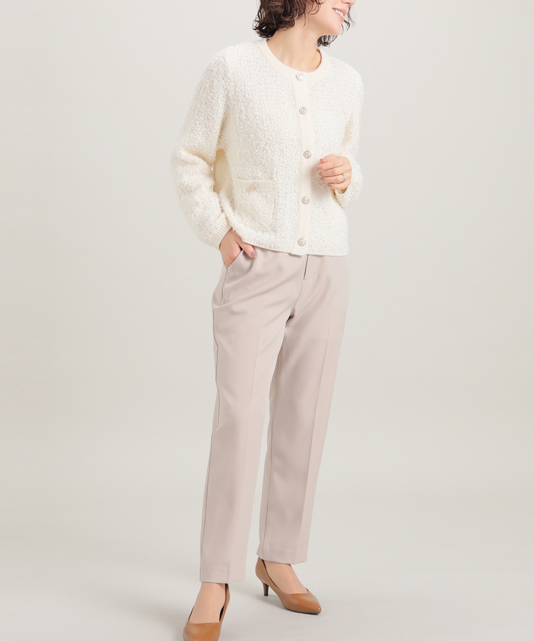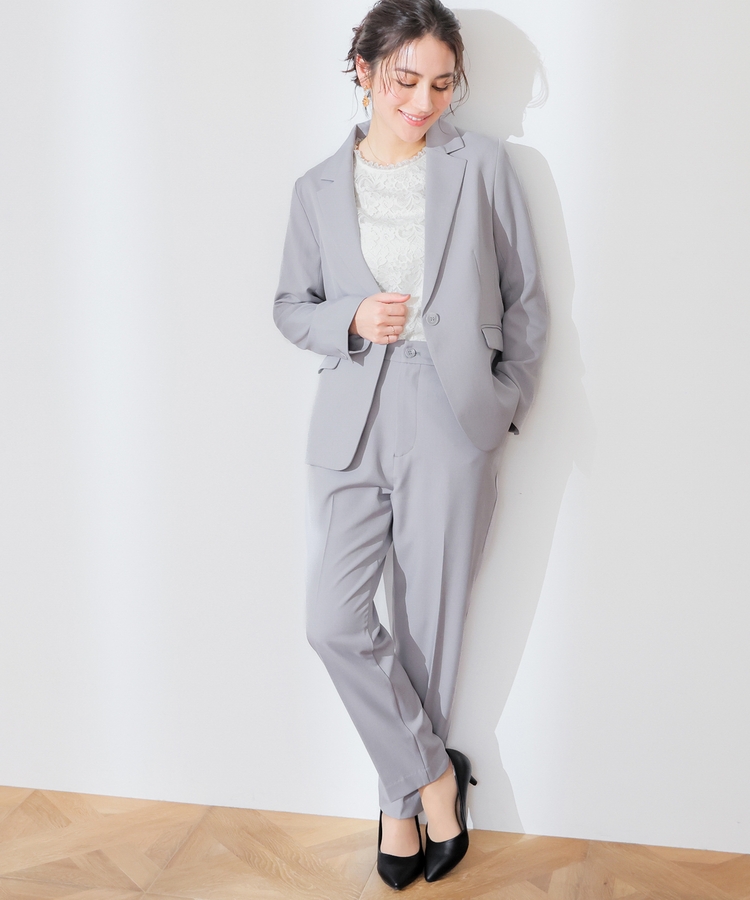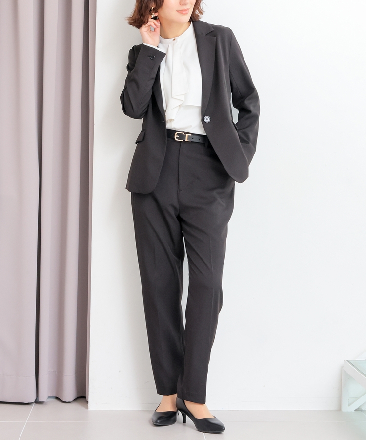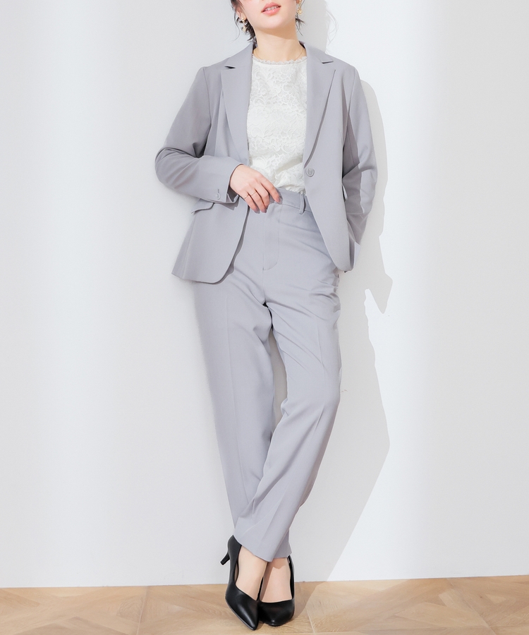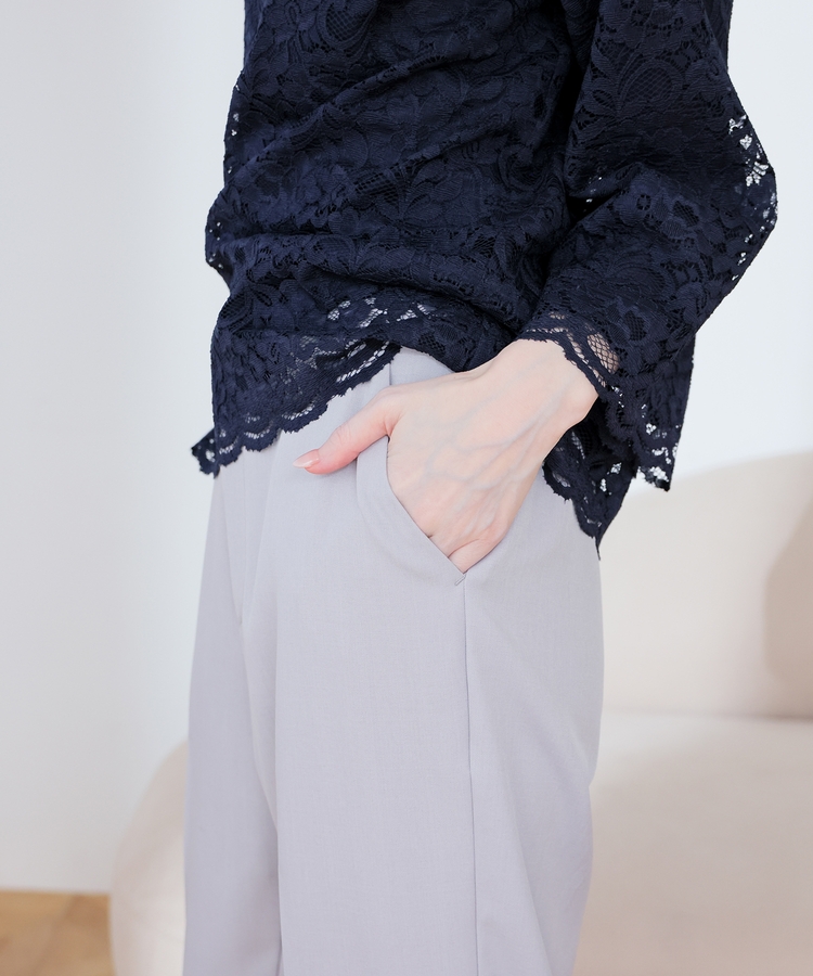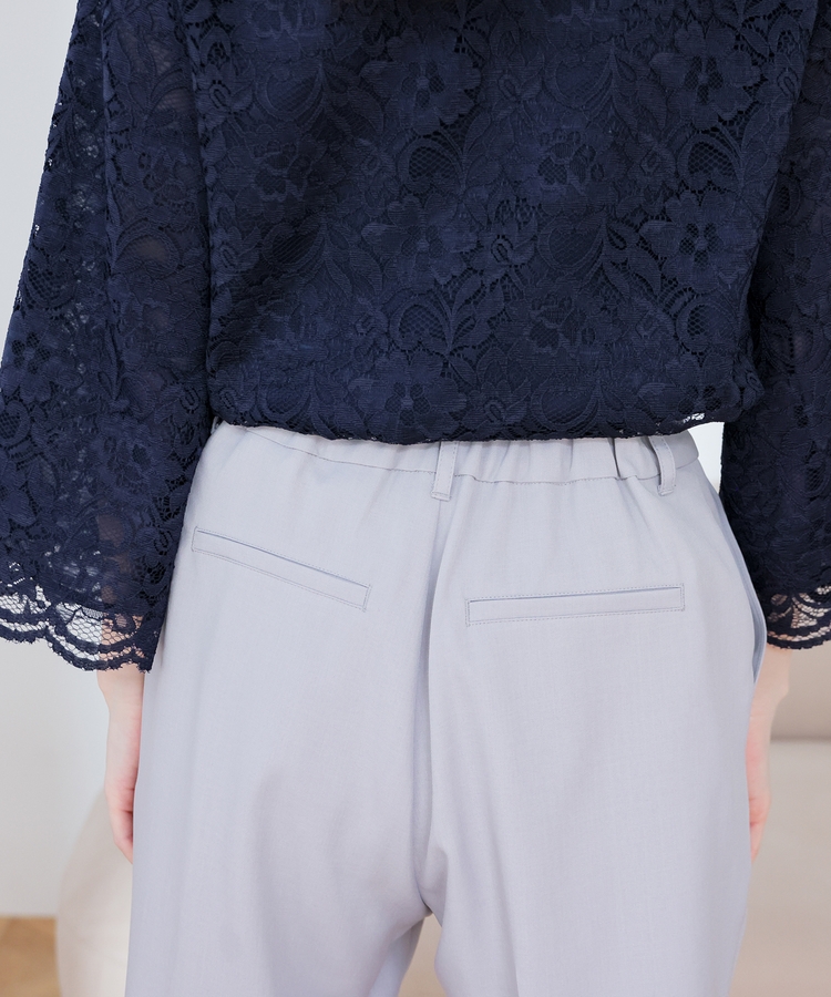 縦ラインを強調するセンタープレスと、腰回りのラインにこだわった、裾に向かって細くなるすっきりとしたシルエットで美脚効果抜群のデザイン。