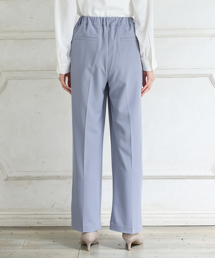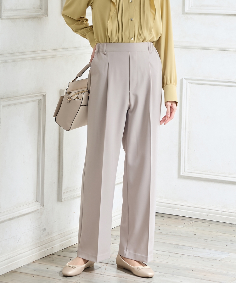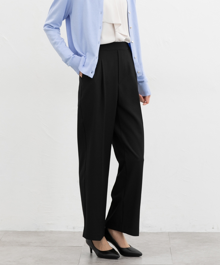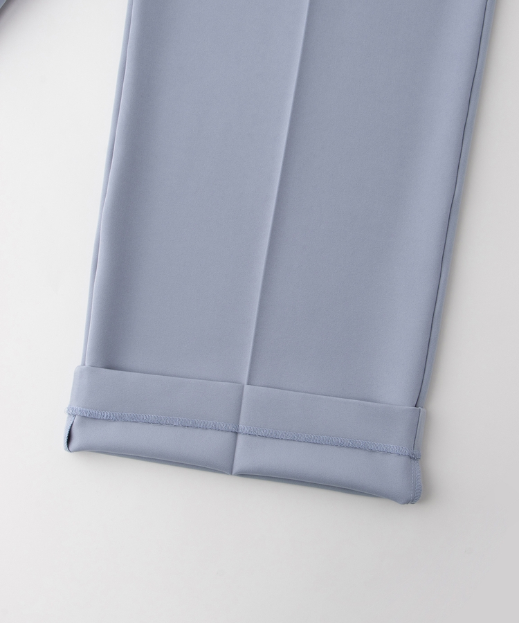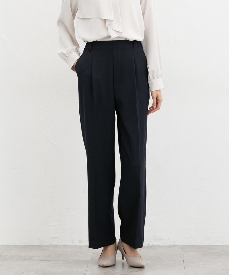 きちんと感のあるセンタープレスと腰回りのラインにこだわった美しいストレートシルエットで美脚効果も抜群。