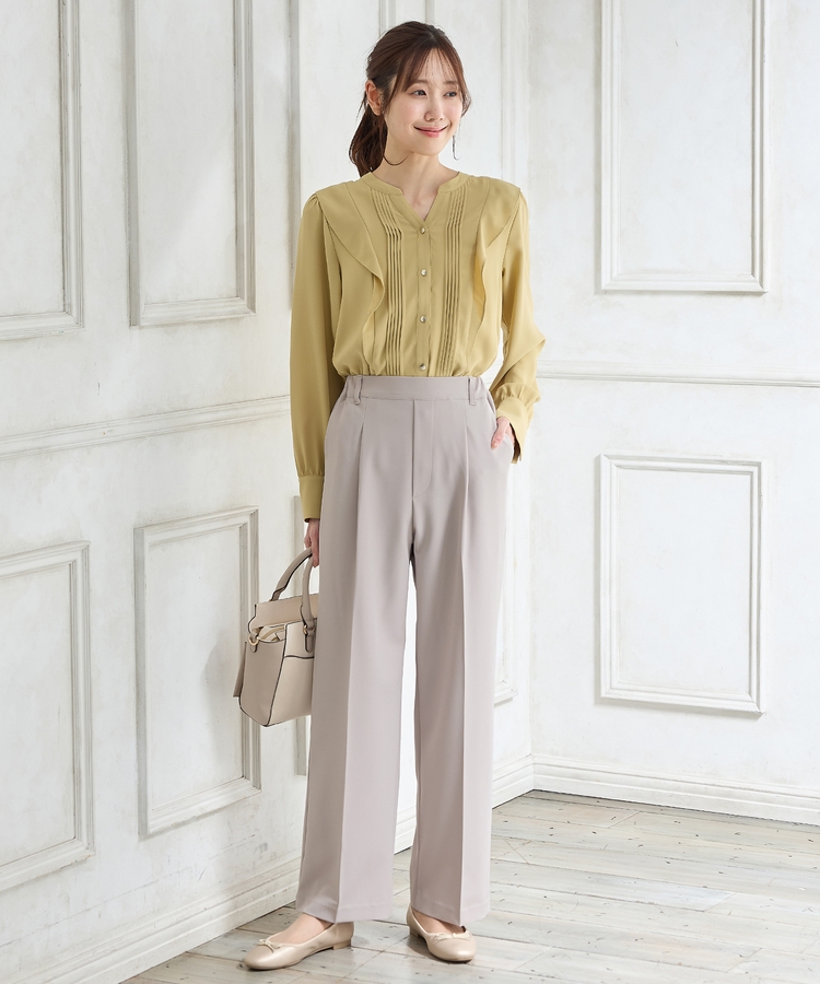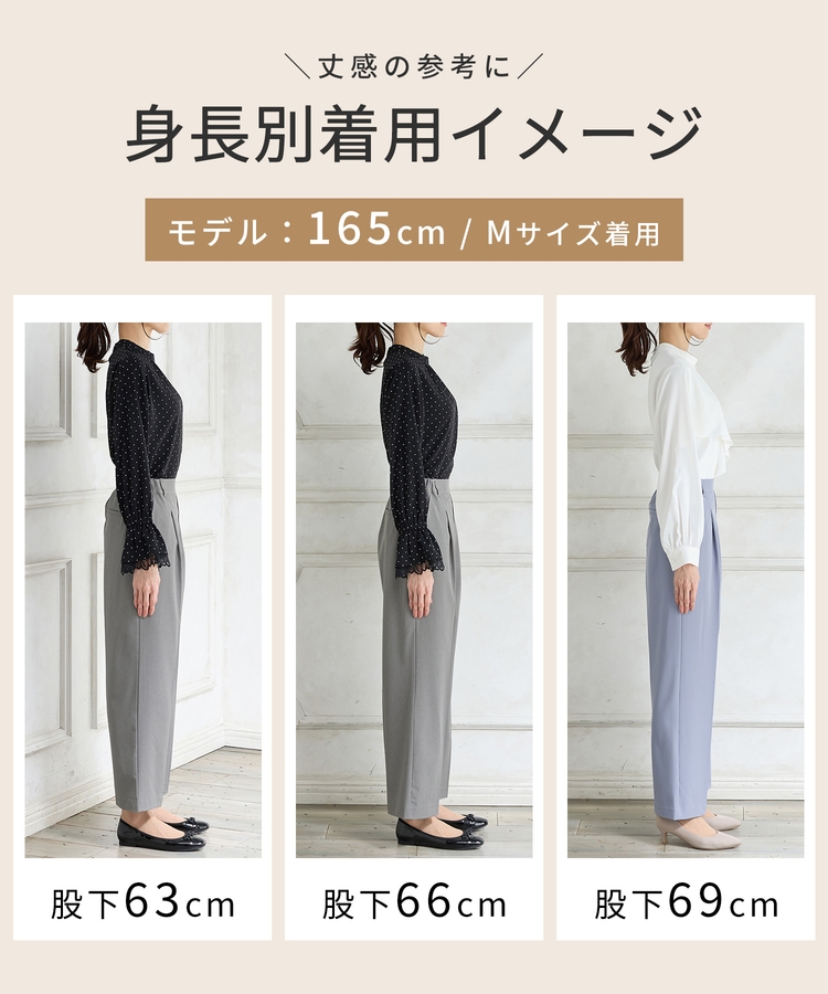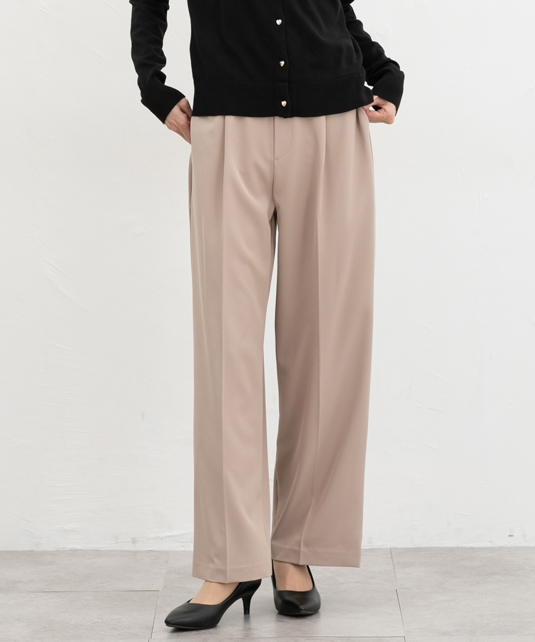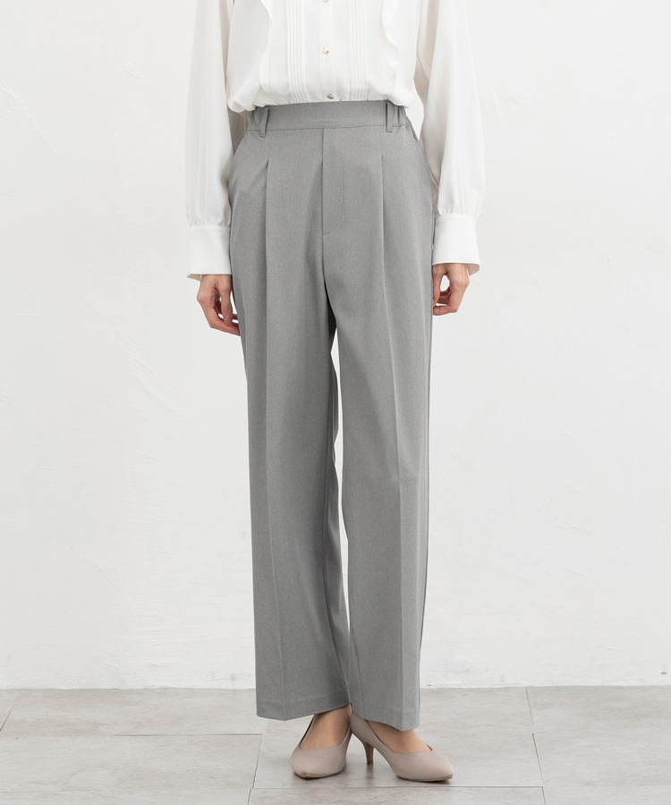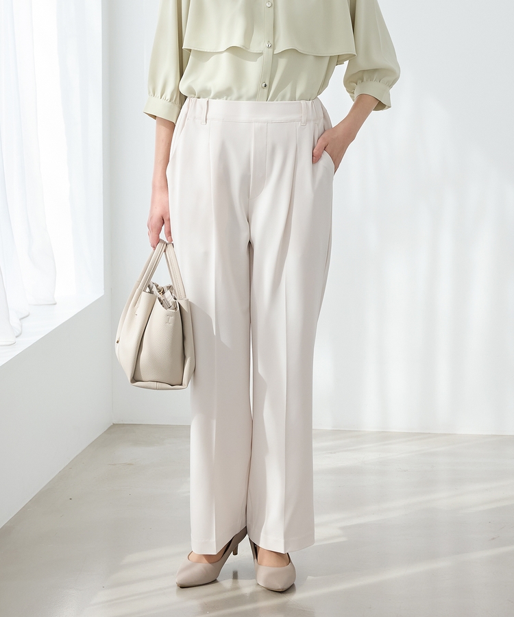 きちんと感のあるセンタープレスと腰回りのラインにこだわった美しいストレートシルエットで美脚効果も抜群。