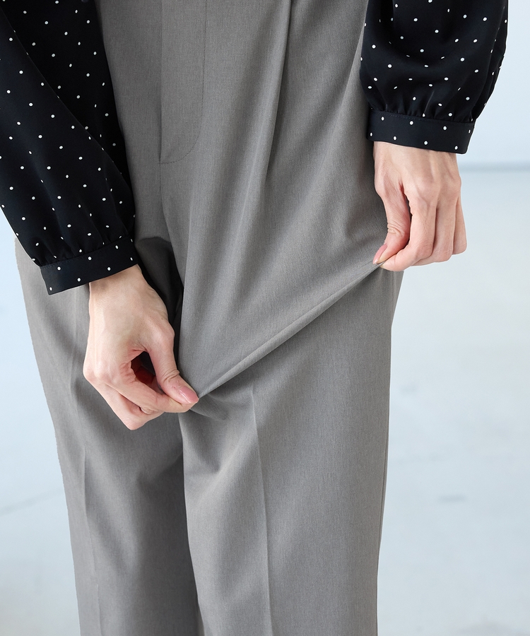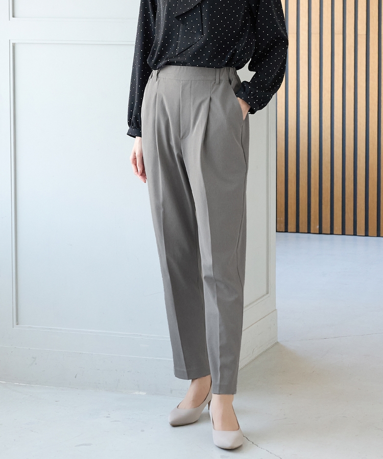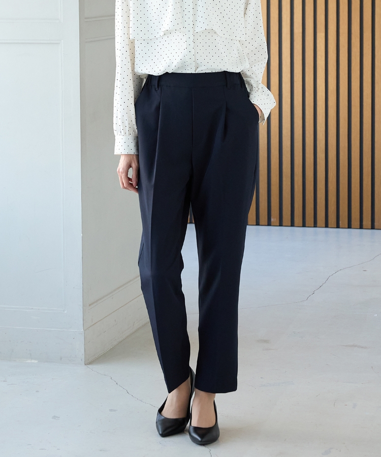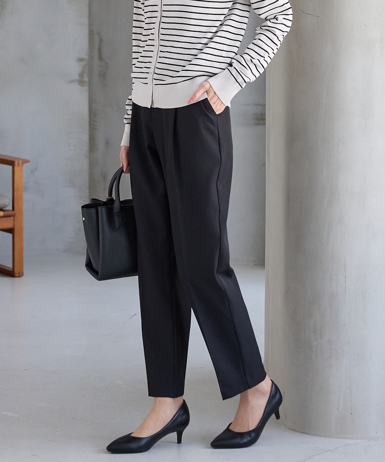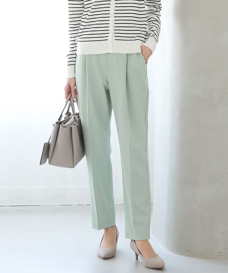 きちんと感のあるセンタープレスと、腰回りのラインにこだわった、裾に向かって細くなる美しいシルエットで美脚効果も抜群。