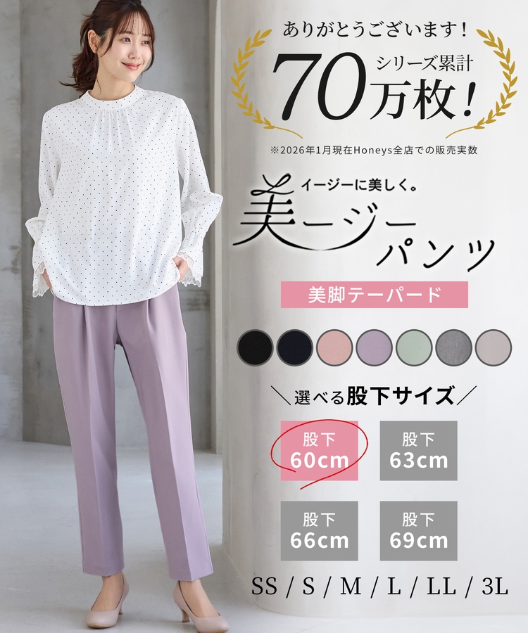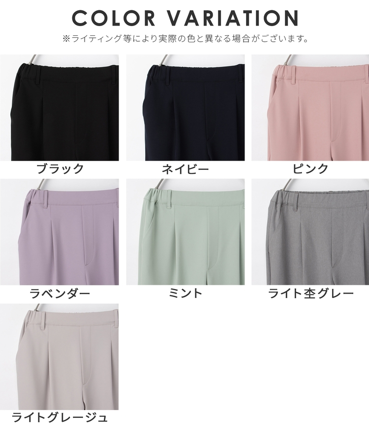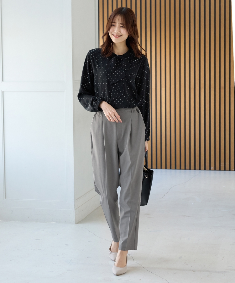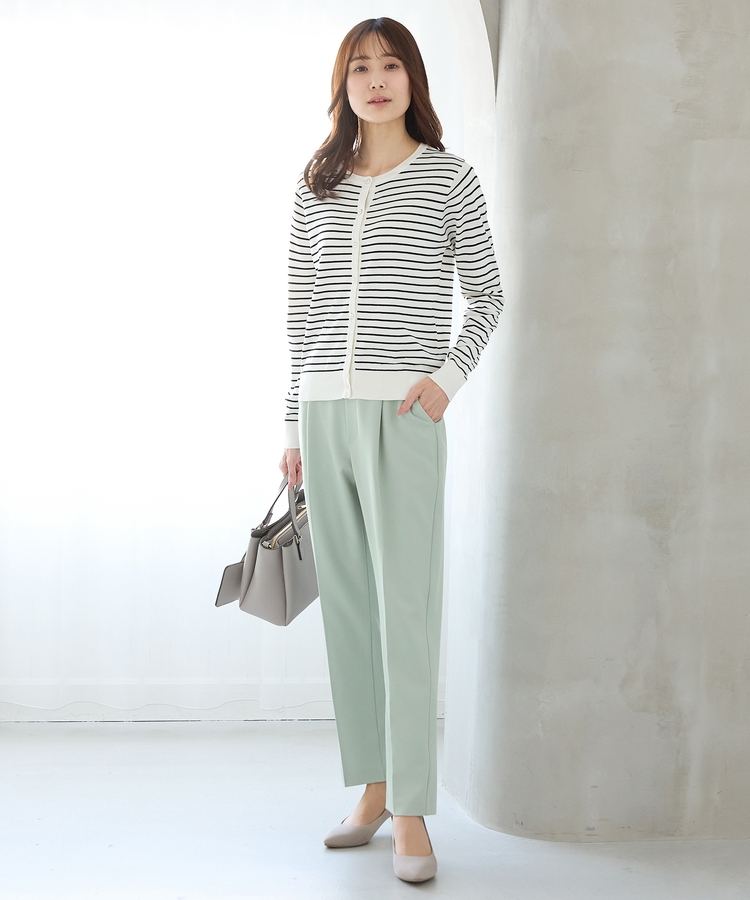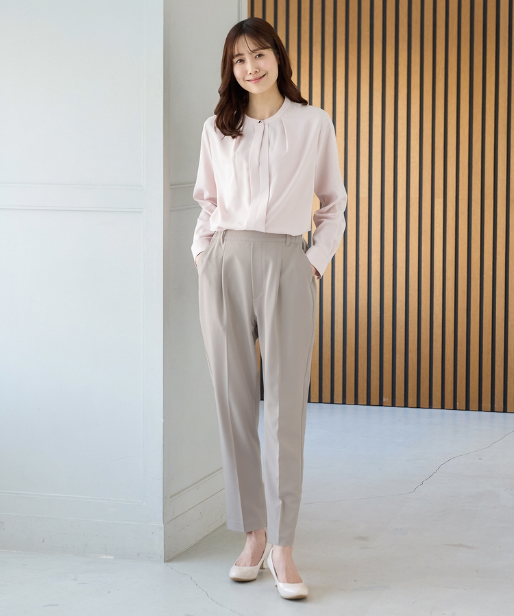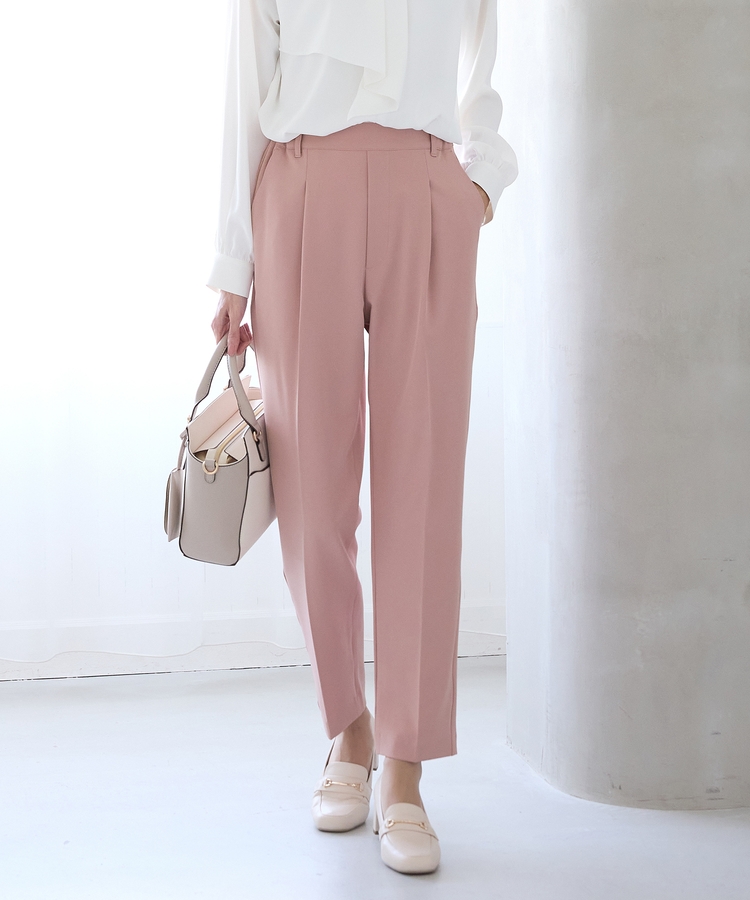 きちんと感のあるセンタープレスと、腰回りのラインにこだわった、裾に向かって細くなる美しいシルエットで美脚効果も抜群。