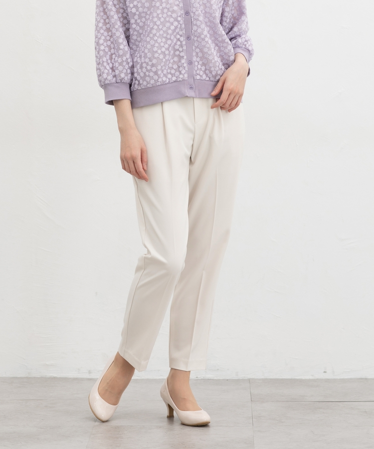 きちんと感のあるセンタープレスと、腰回りのラインにこだわった、裾に向かって細くなる美しいシルエットで美脚効果も抜群。
