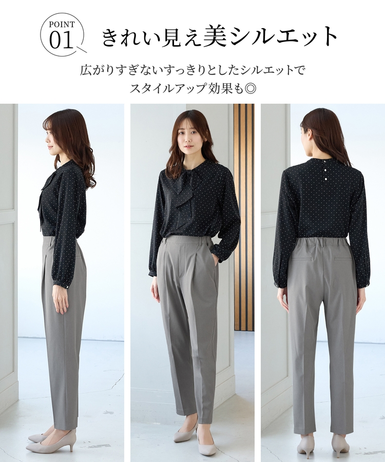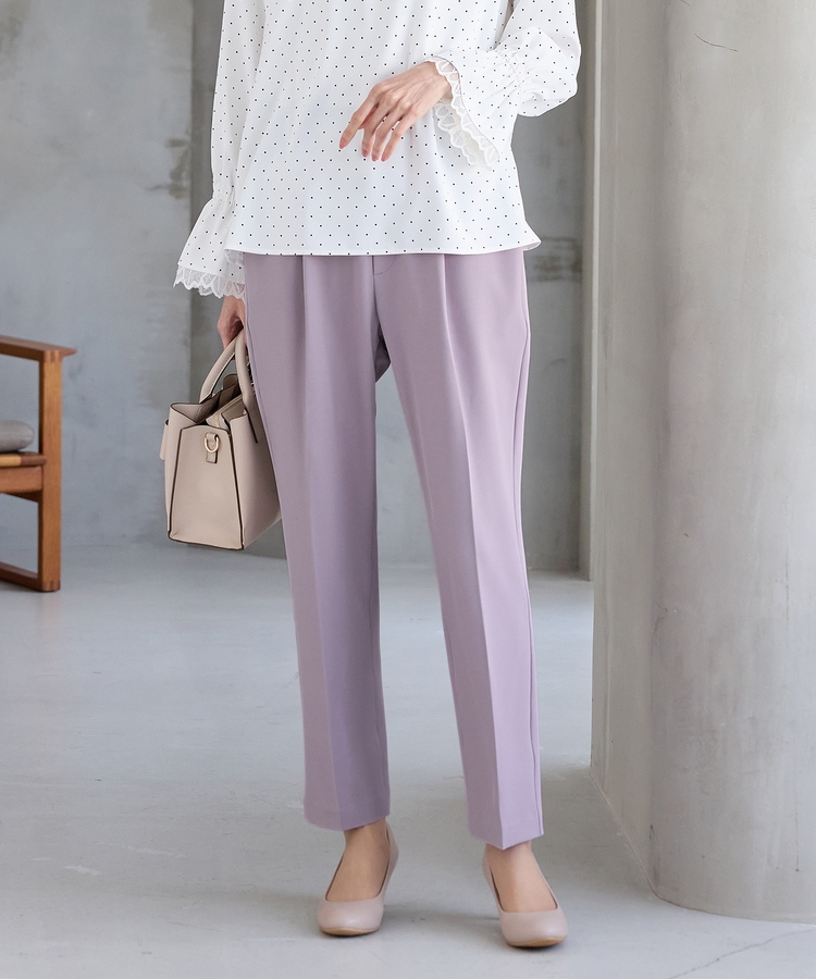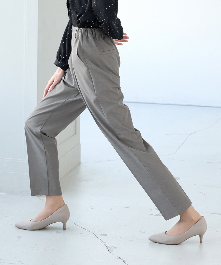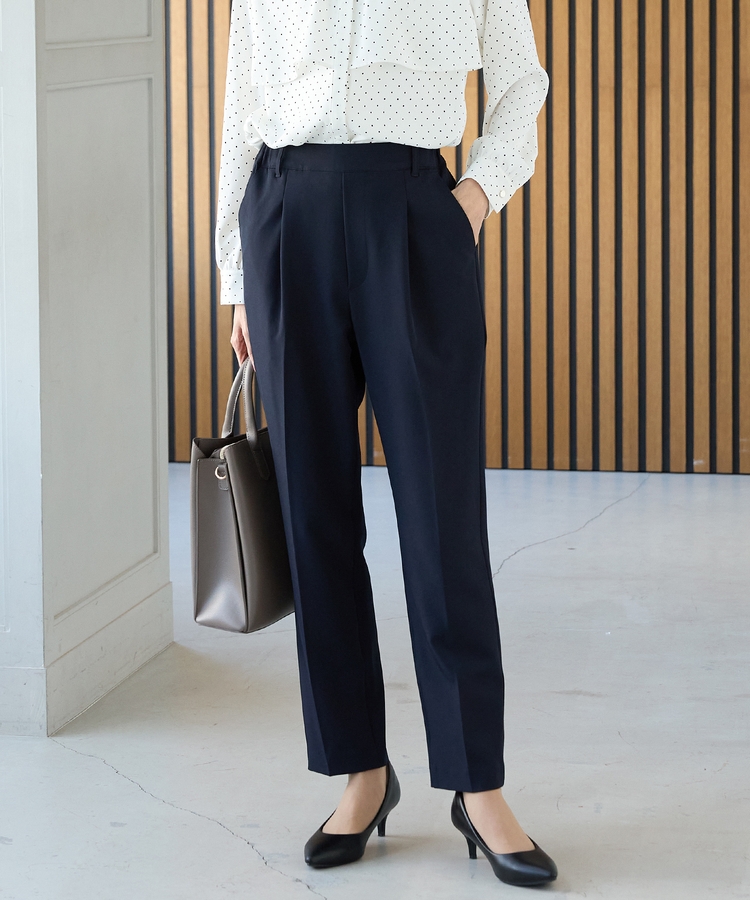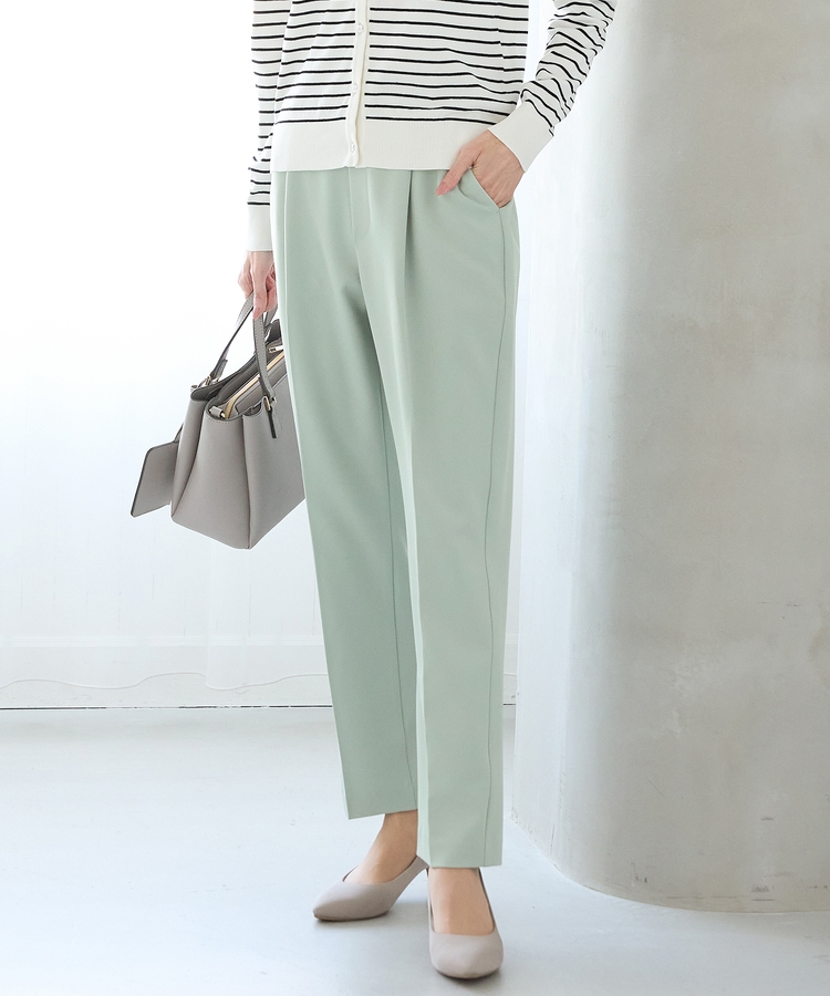 きちんと感のあるセンタープレスと、腰回りのラインにこだわった、裾に向かって細くなる美しいシルエットで美脚効果も抜群。