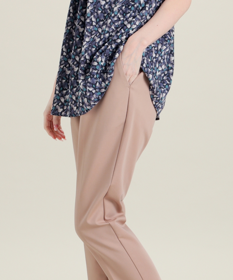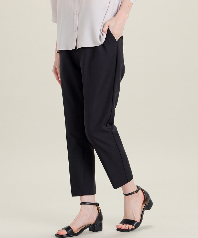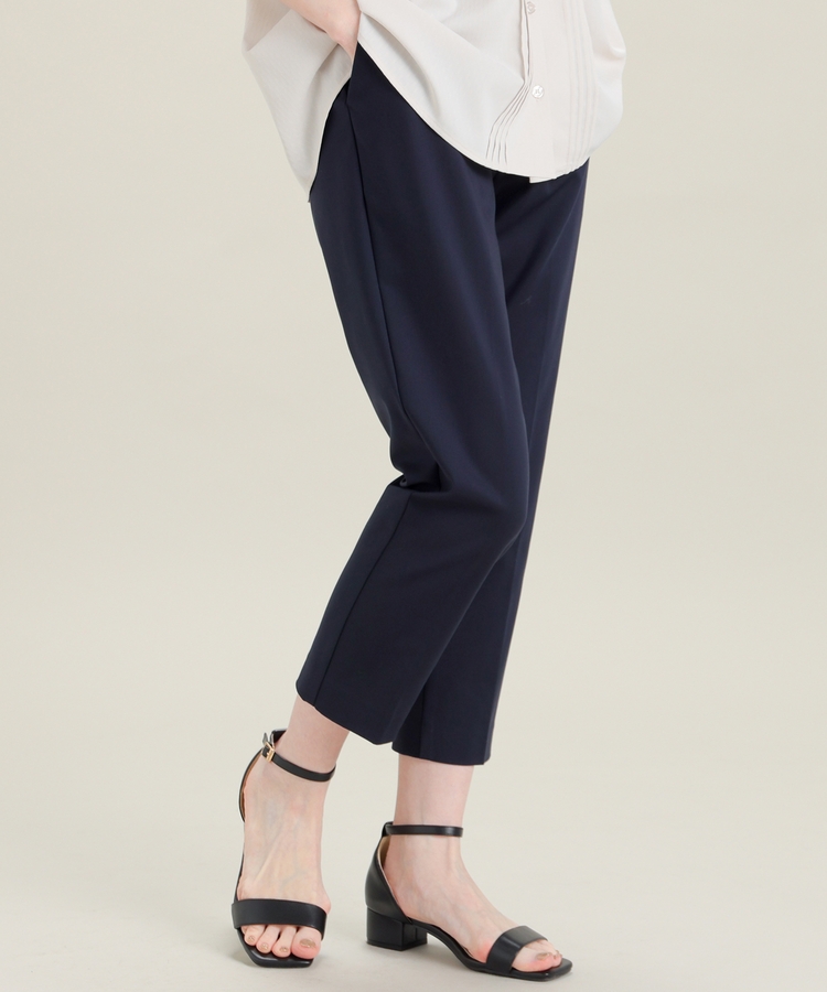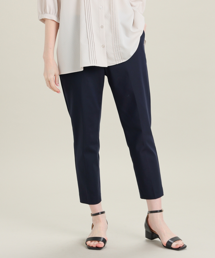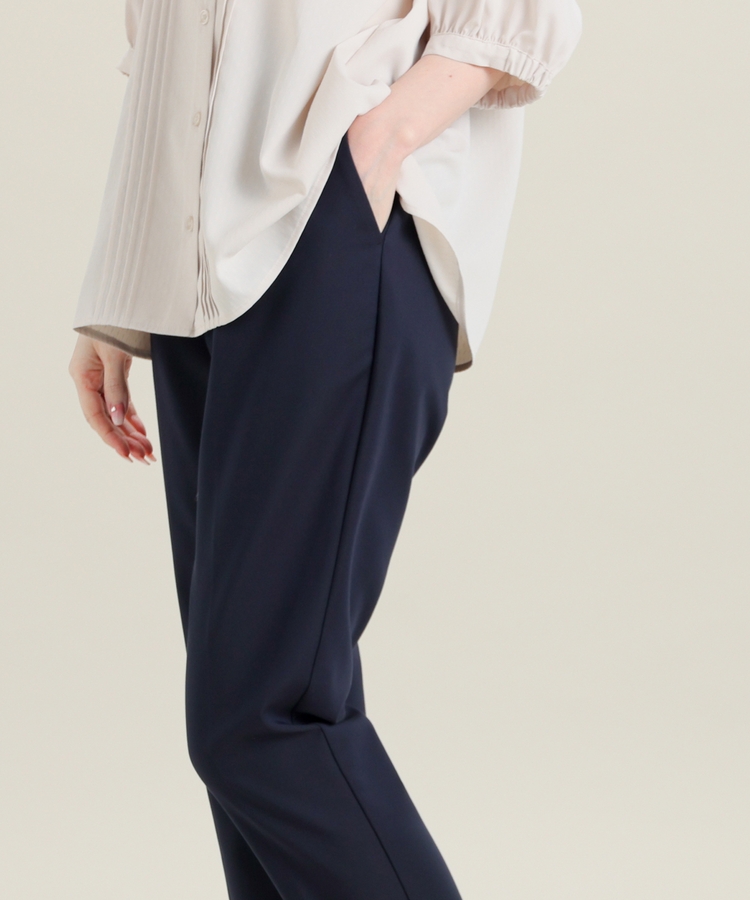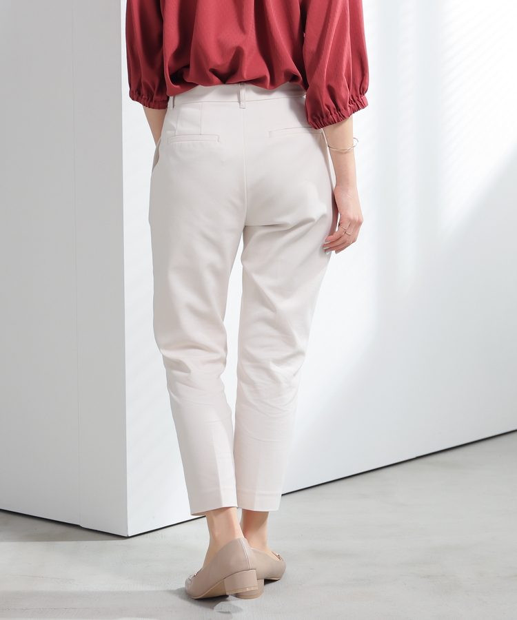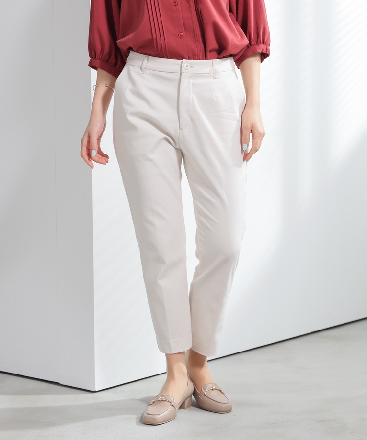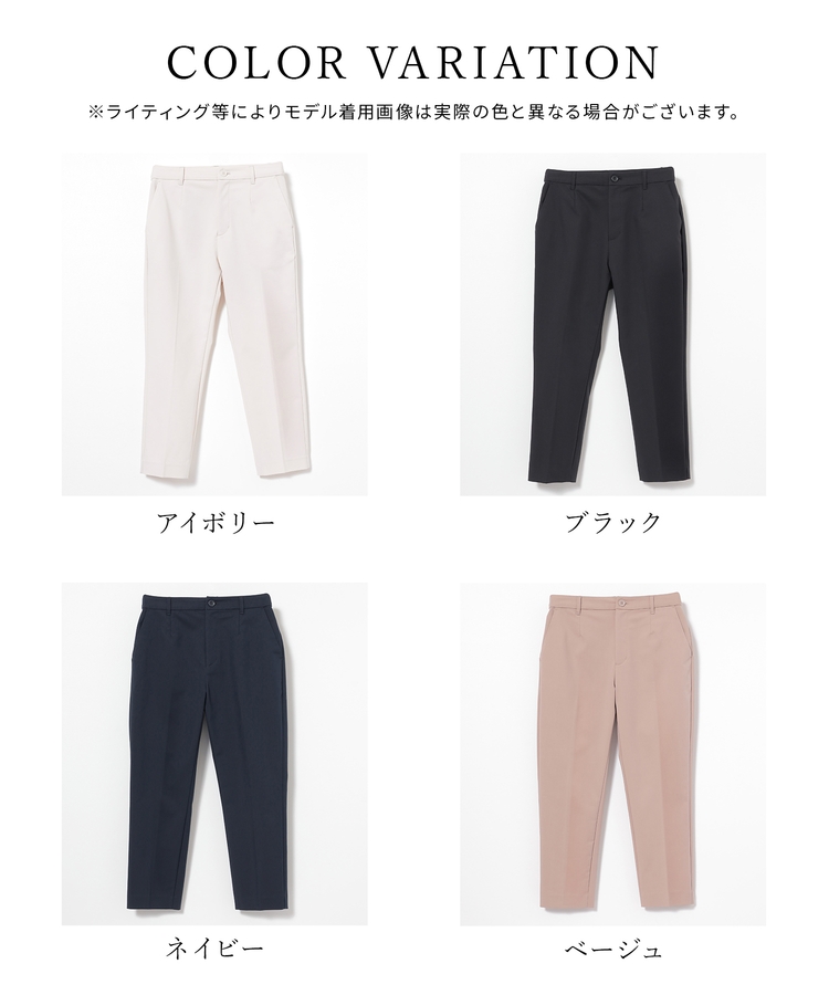 センタープレス入りのきれいなシルエットで、きちんと感もスタイルアップも叶えるデザイン。