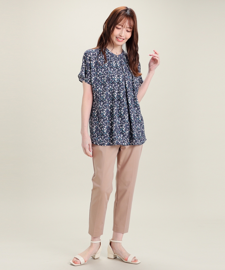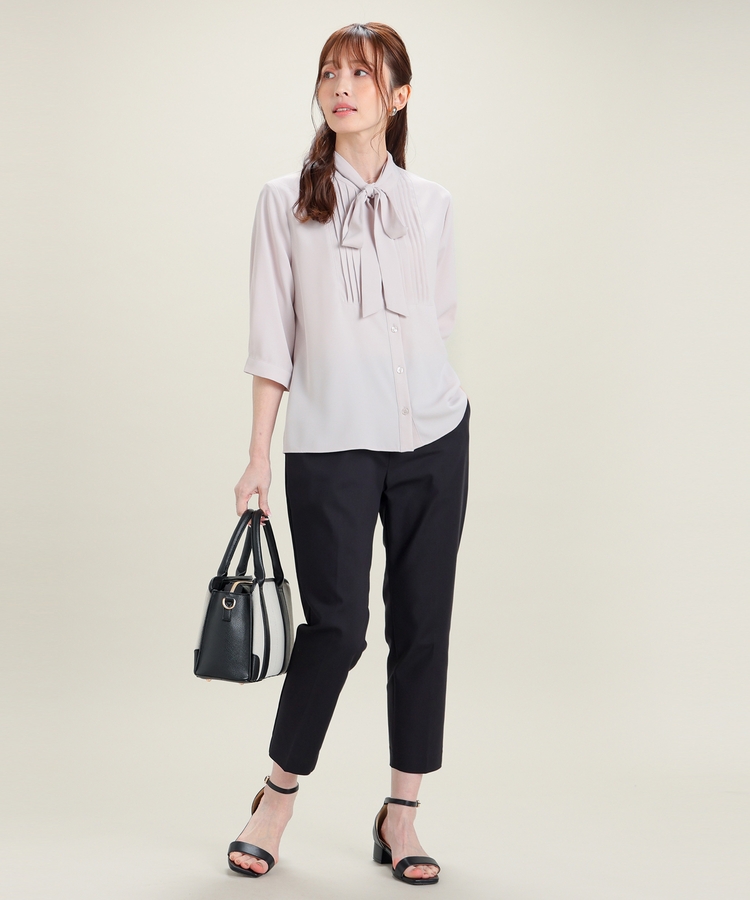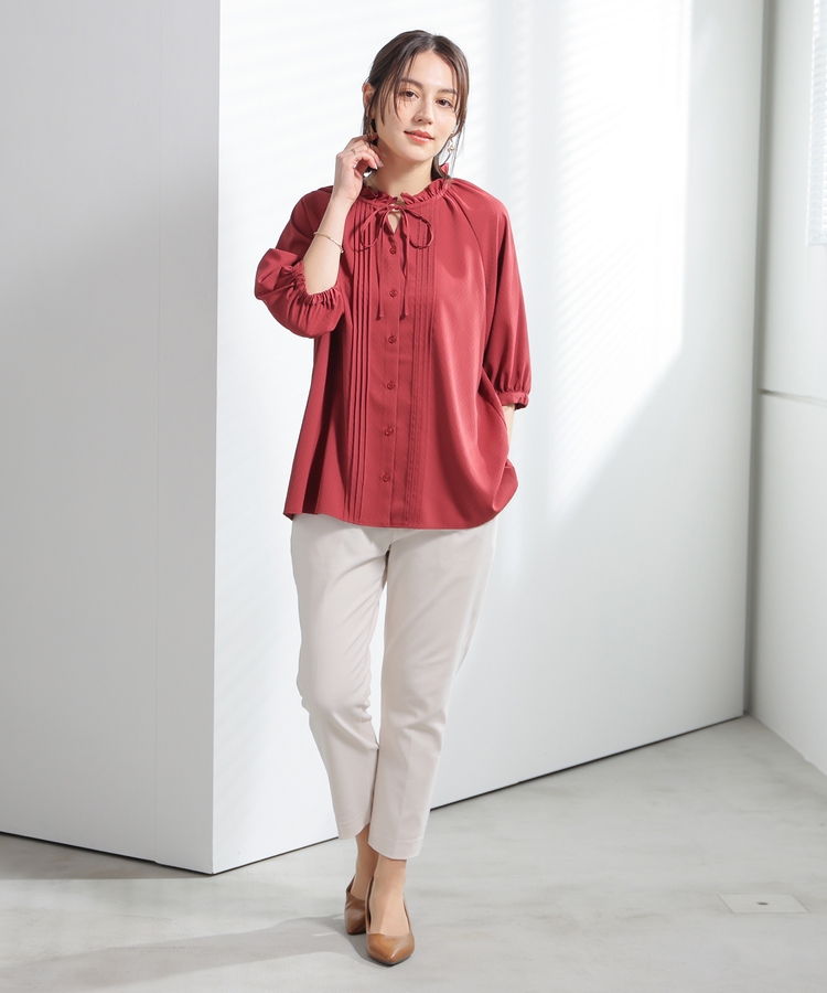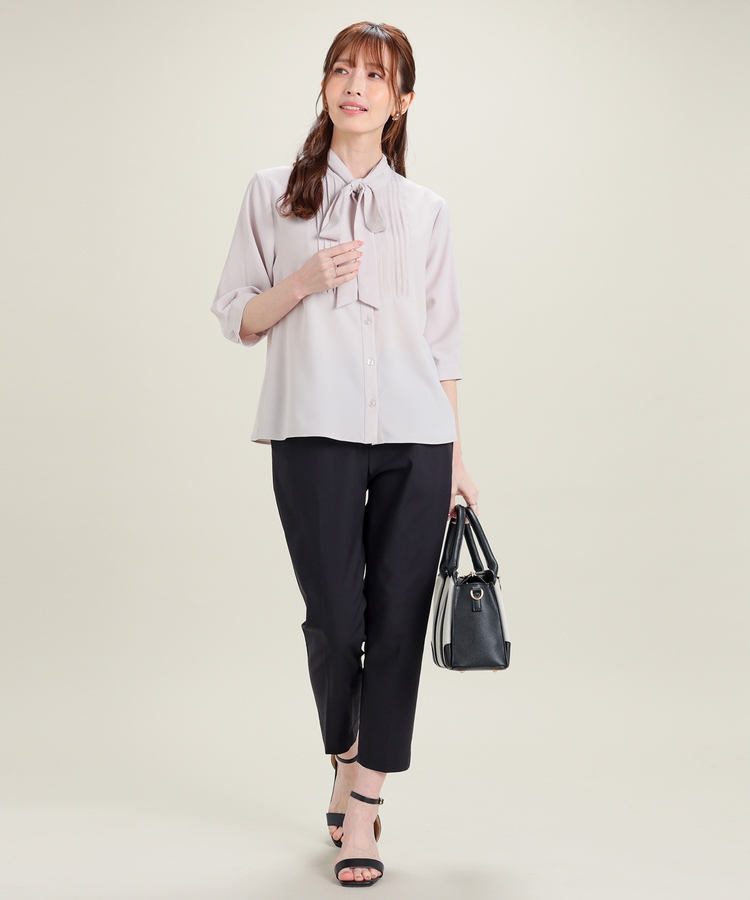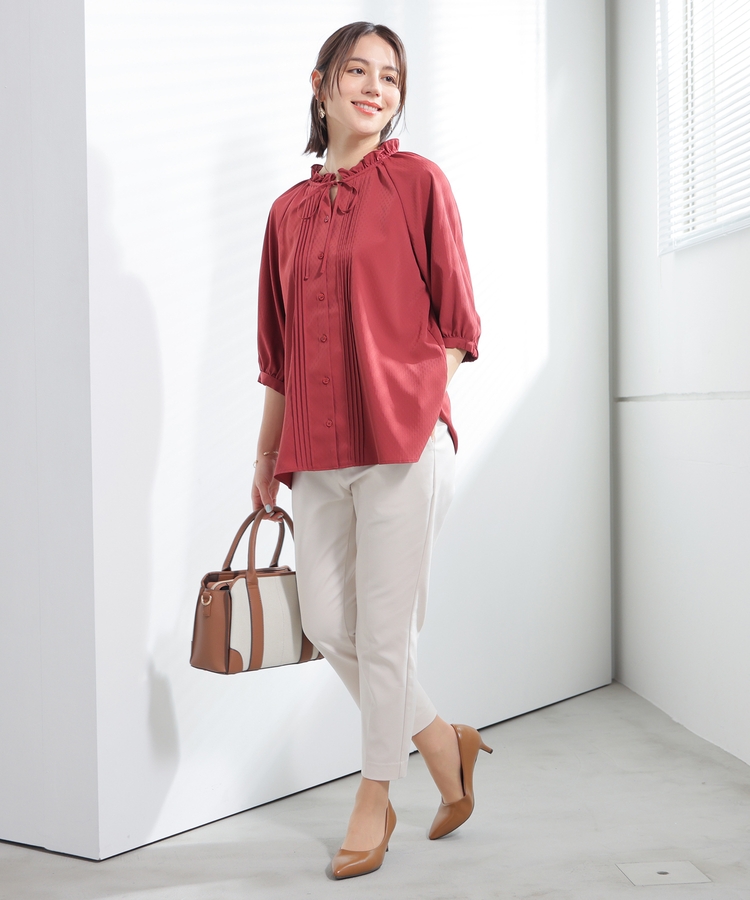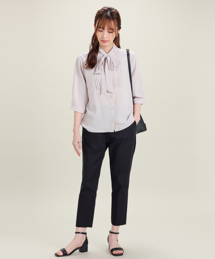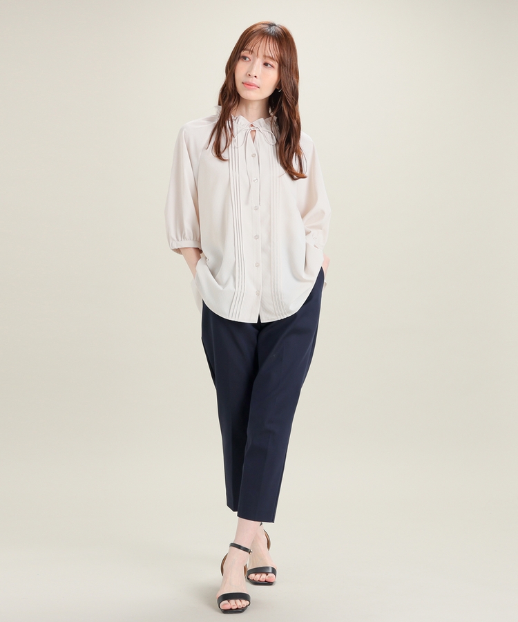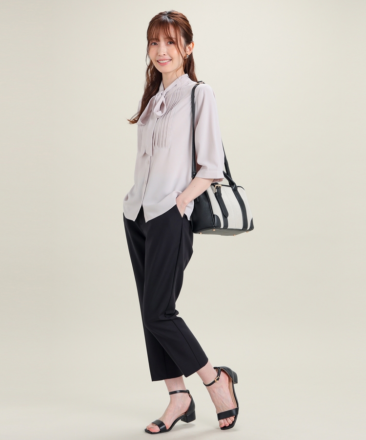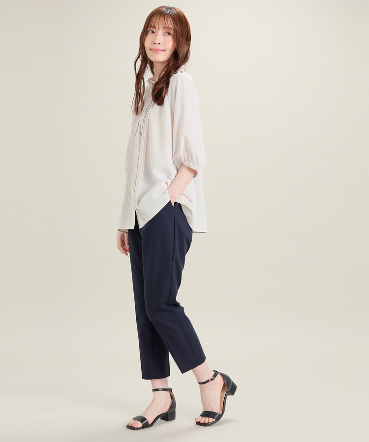 センタープレス入りのきれいなシルエットで、きちんと感もスタイルアップも叶えるデザイン。