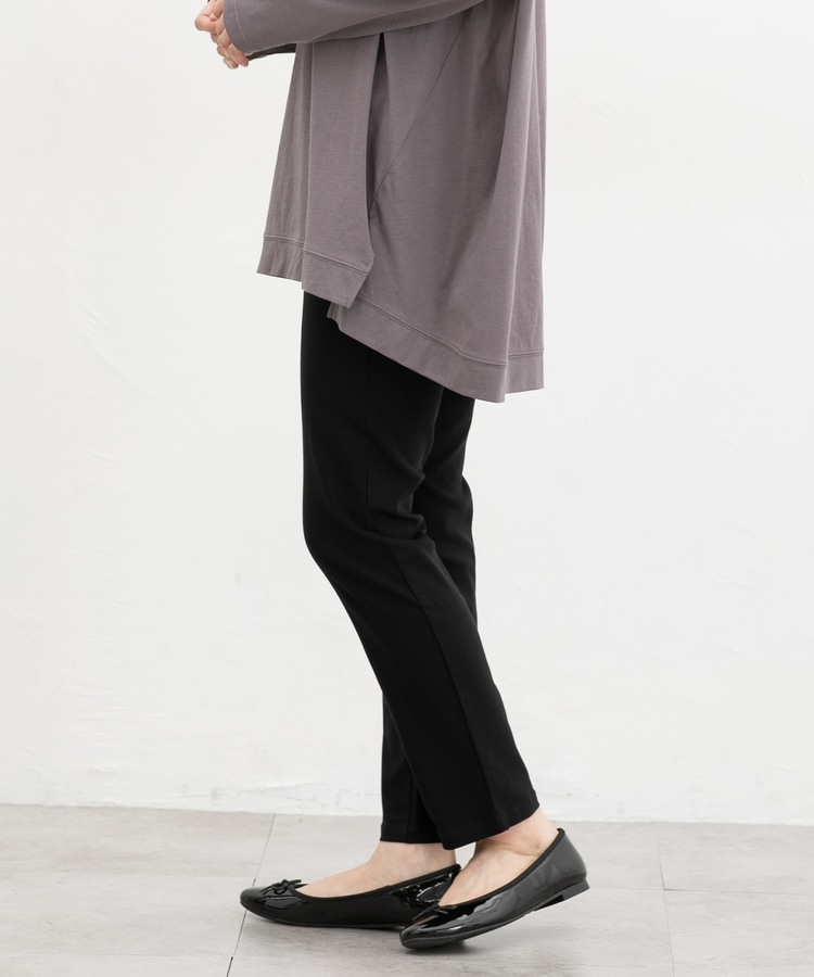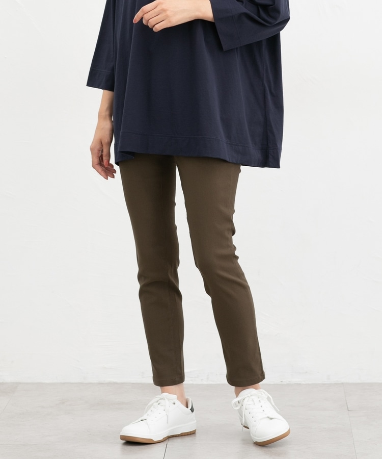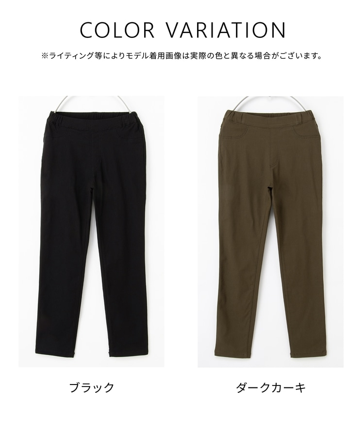 優れたストレッチ性のレーヨン混ツイル素材とウエストゴムで、一度はいたらやみつきになるはき心地。