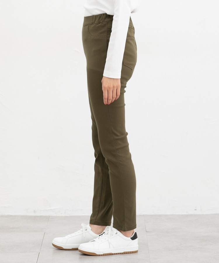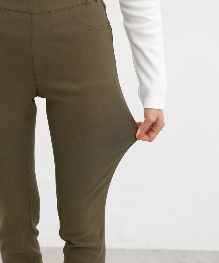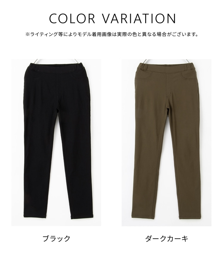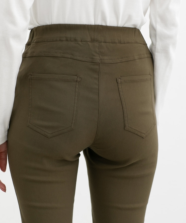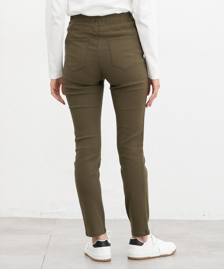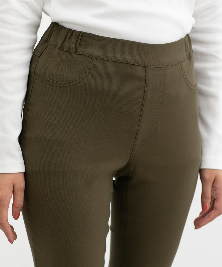 優れたストレッチ性のレーヨン混ツイル素材とウエストゴムで、一度はいたらやみつきになるはき心地。