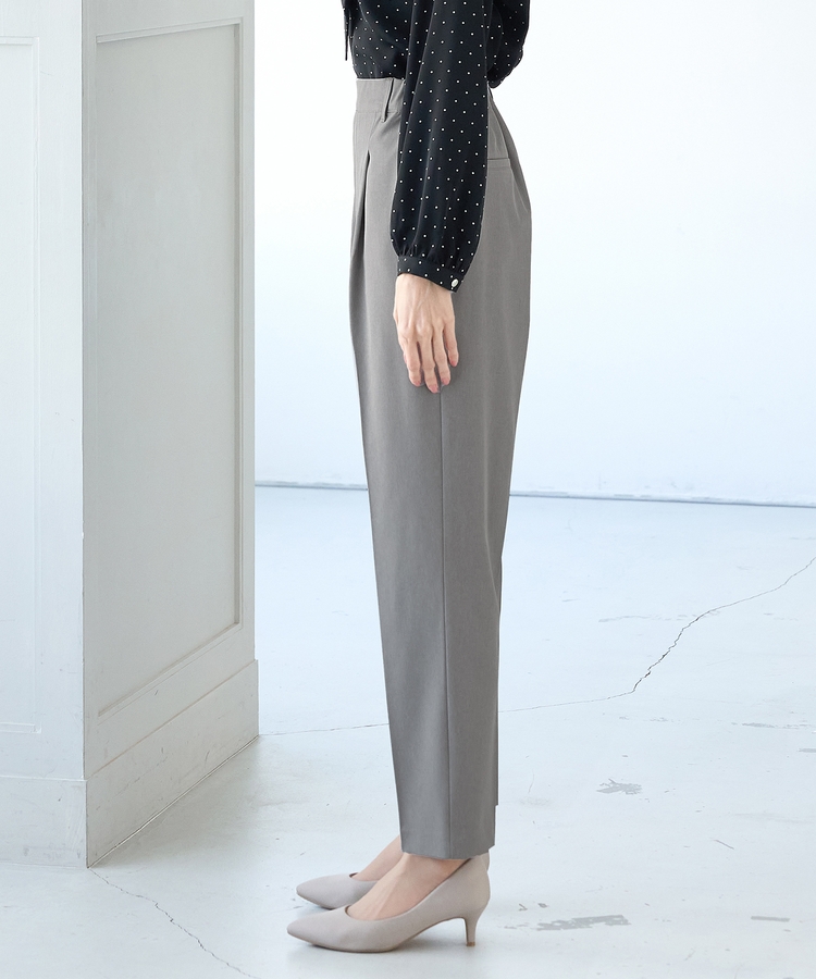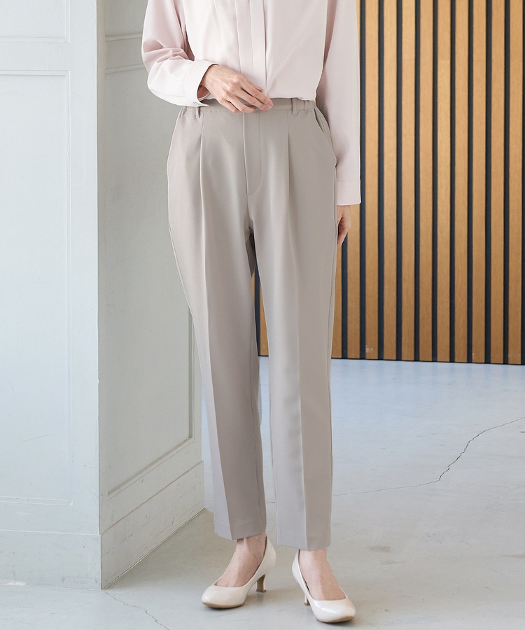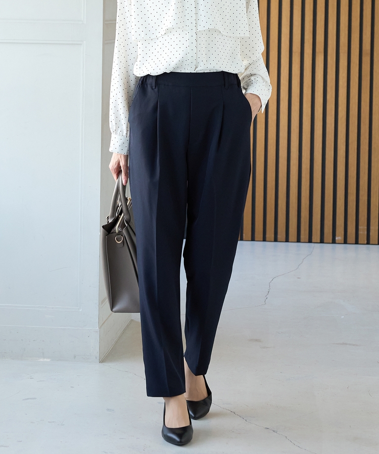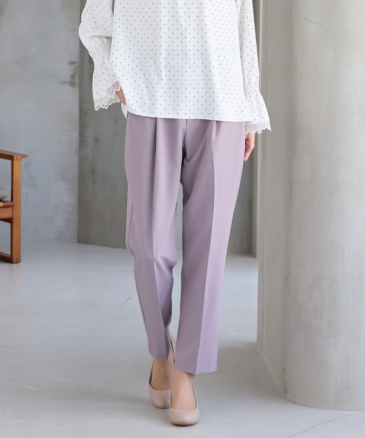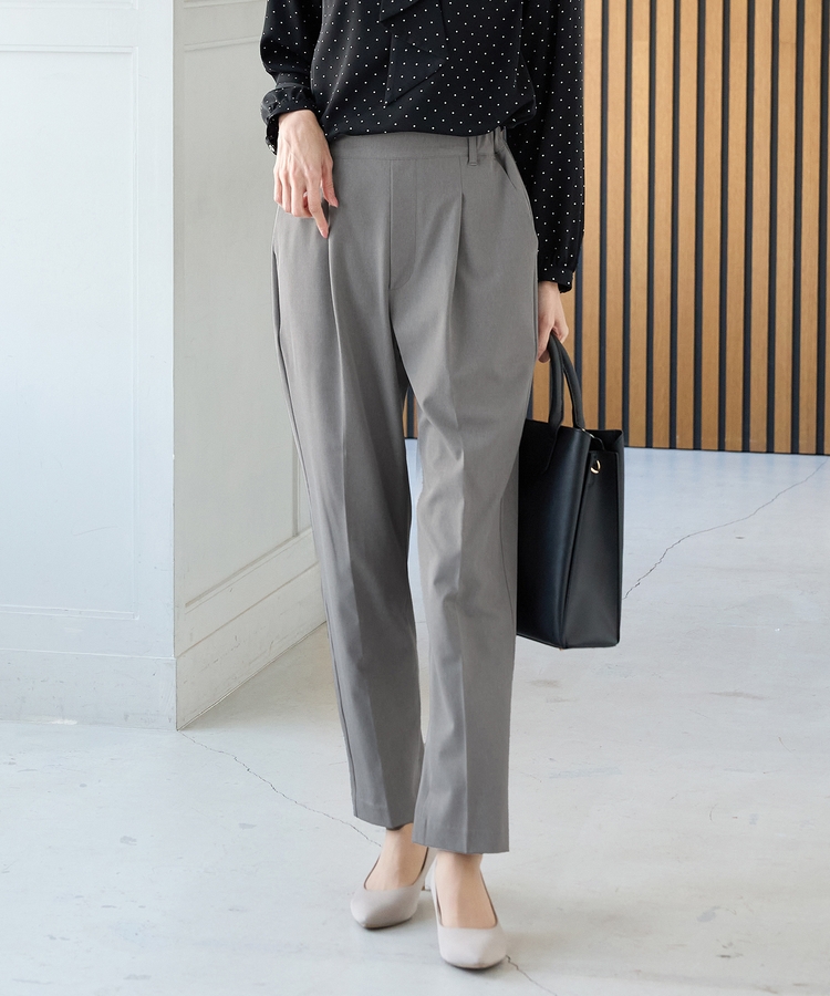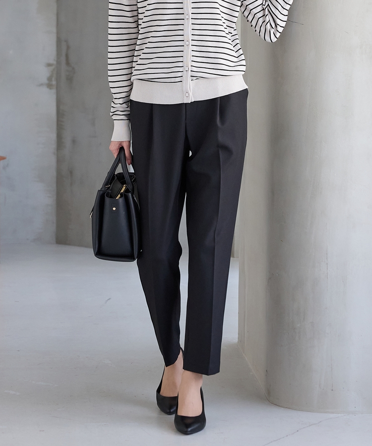 きちんと感のあるセンタープレスと、腰回りのラインにこだわった、裾に向かって細くなる美しいシルエットで美脚効果も抜群。