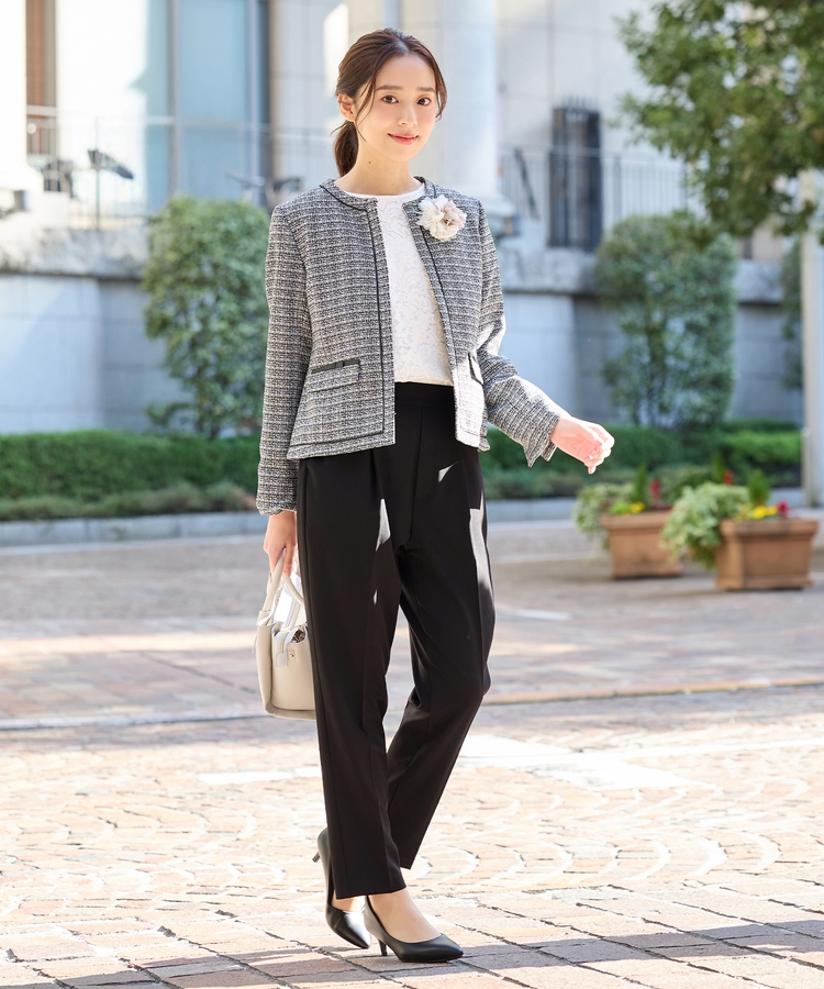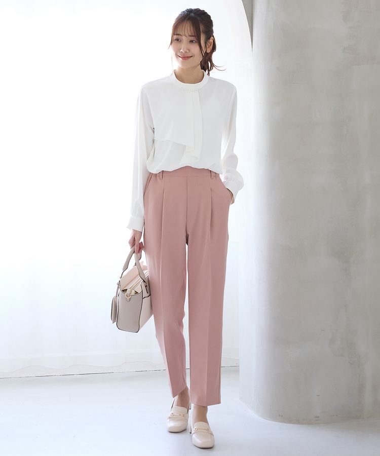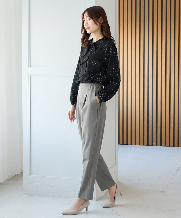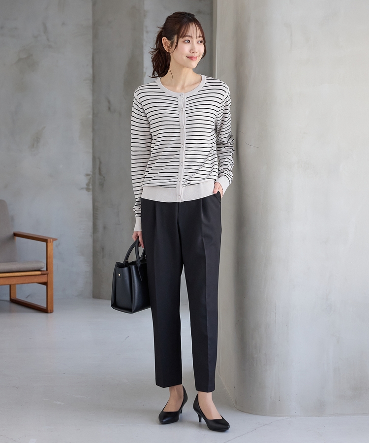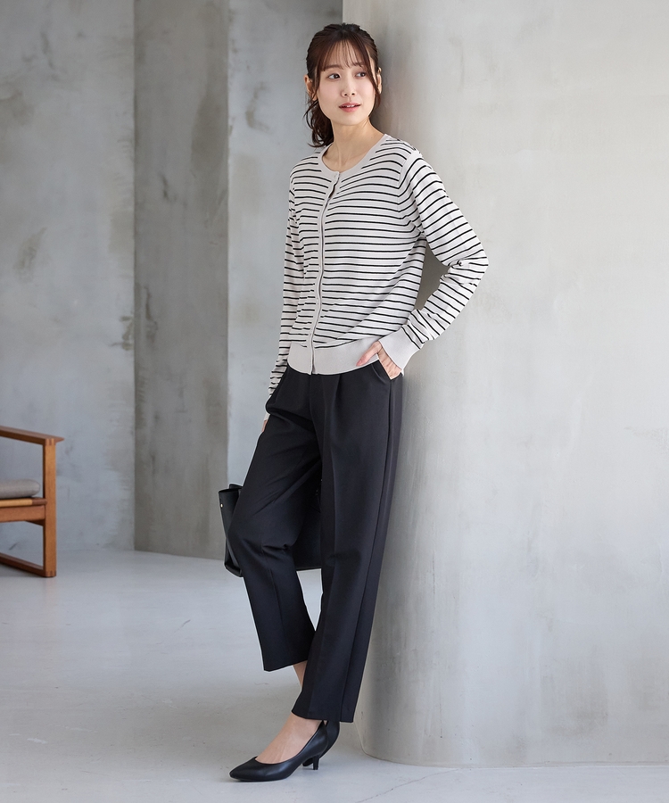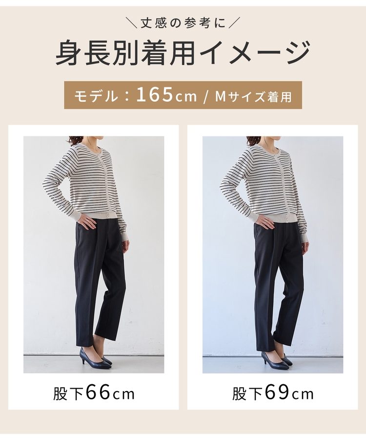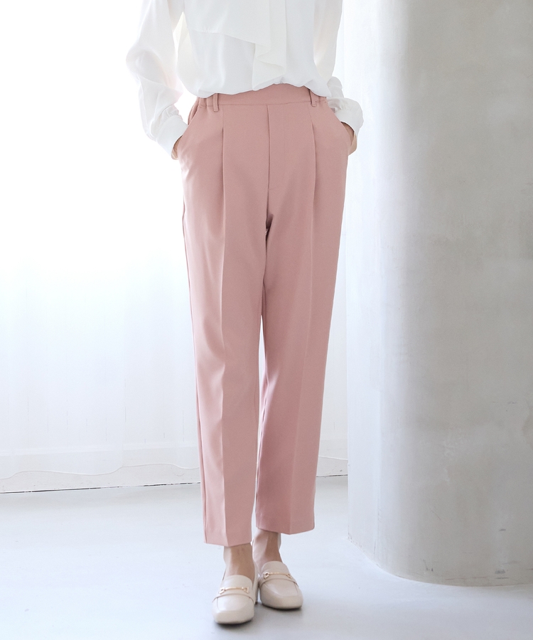 きちんと感のあるセンタープレスと、腰回りのラインにこだわった、裾に向かって細くなる美しいシルエットで美脚効果も抜群。