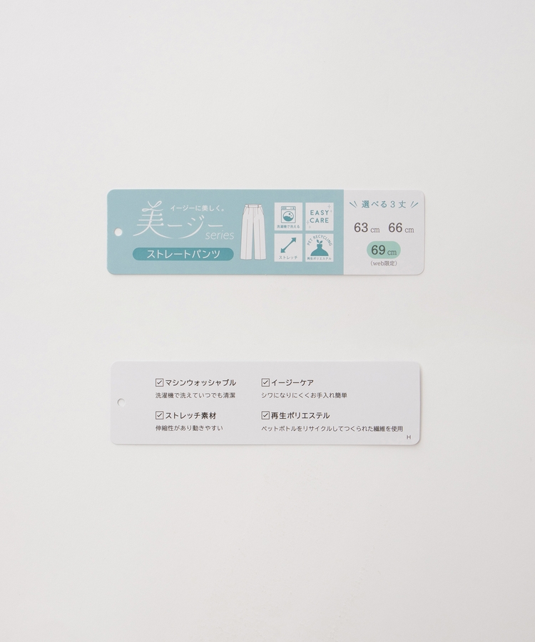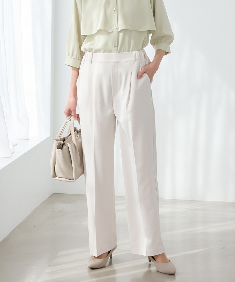 きちんと感のあるセンタープレスと腰回りのラインにこだわった美しいストレートシルエットで美脚効果も抜群。