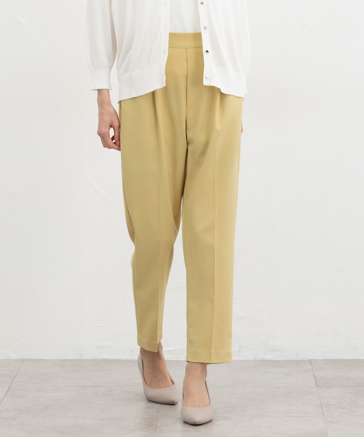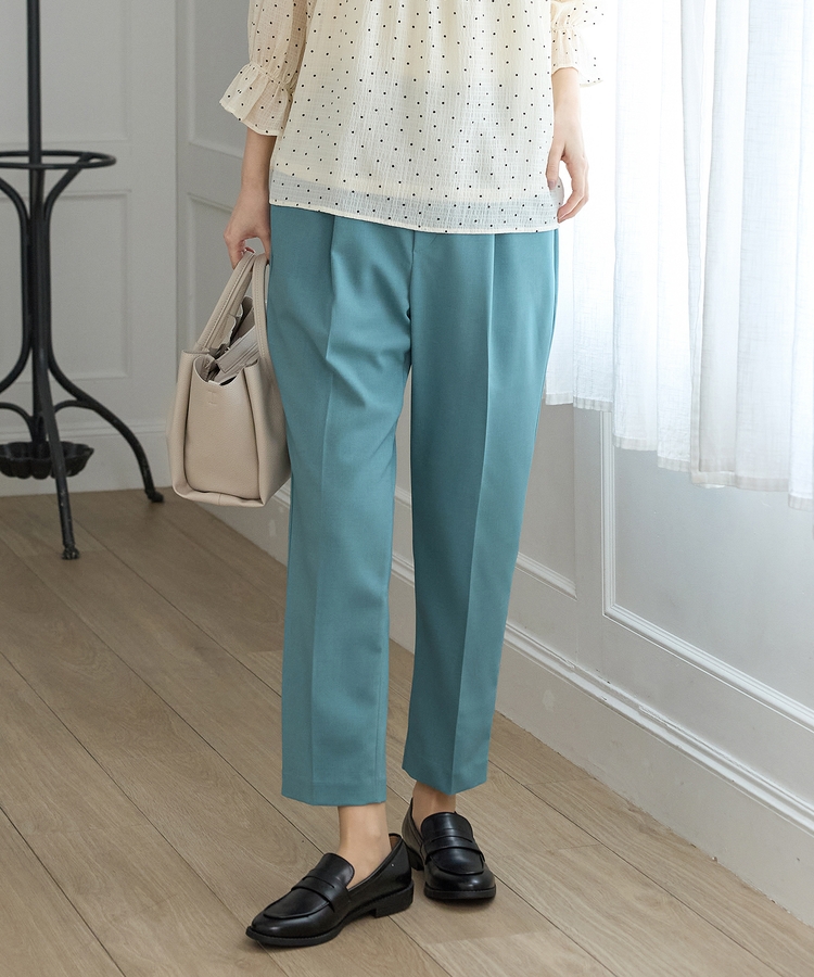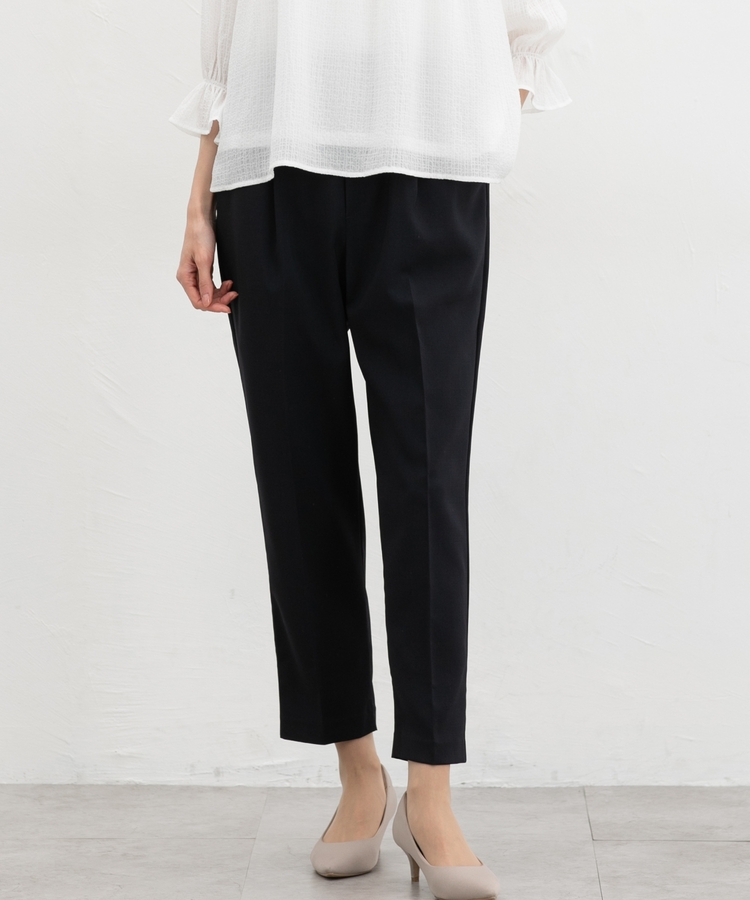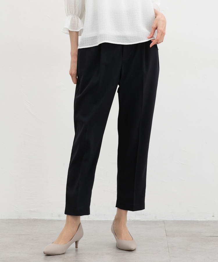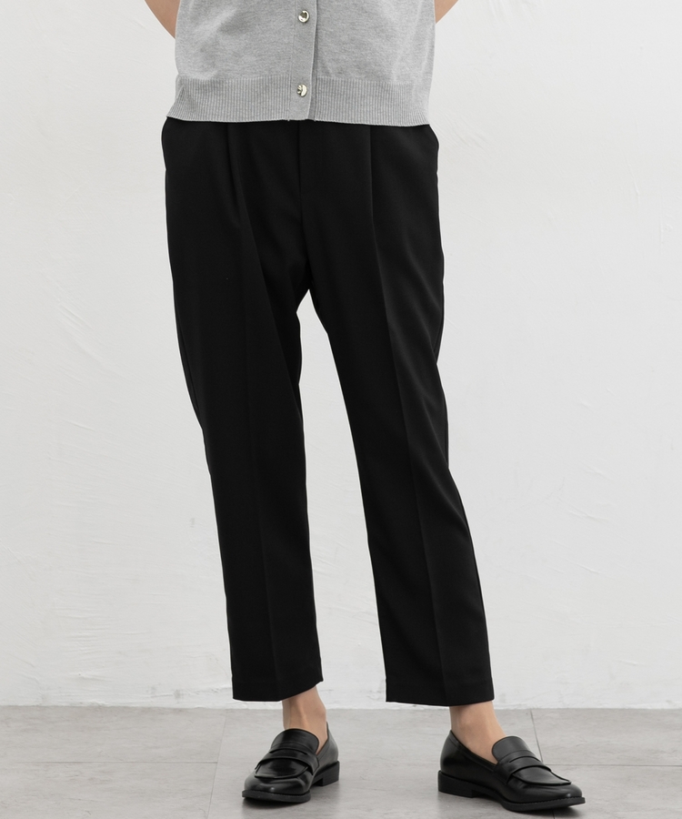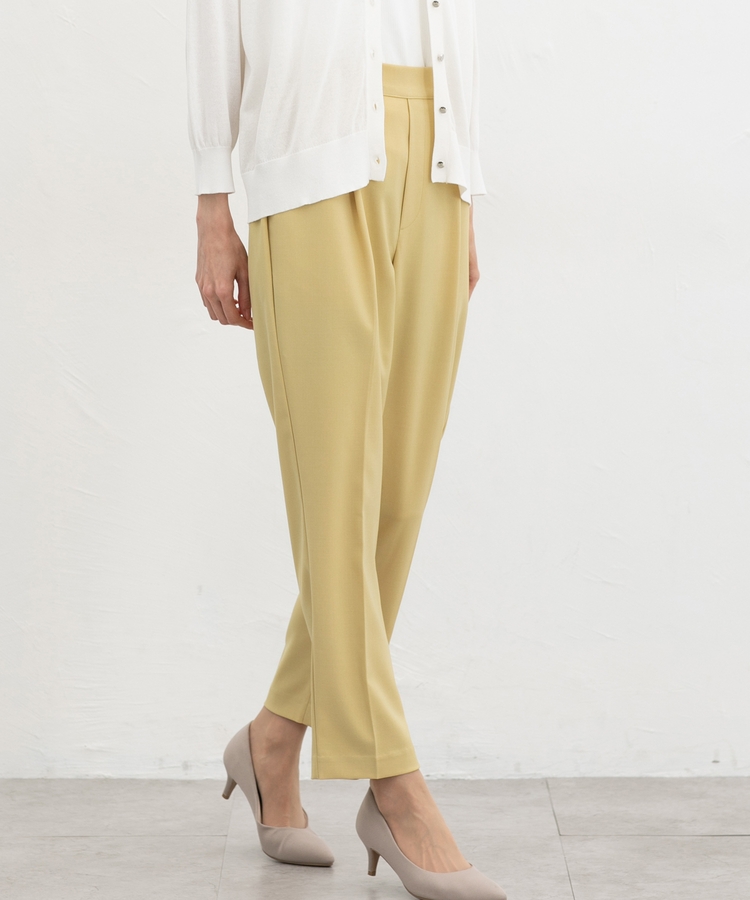 きちんと感のあるセンタープレスと、腰回りのラインにこだわった、裾に向かって細くなる美しいシルエットで美脚効果も抜群。