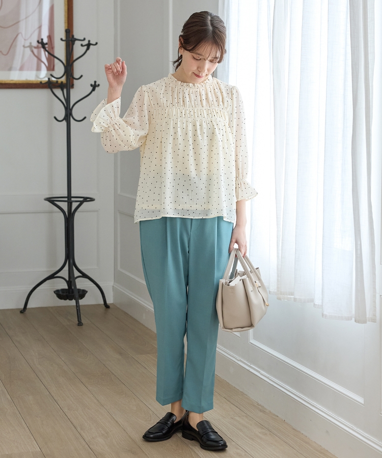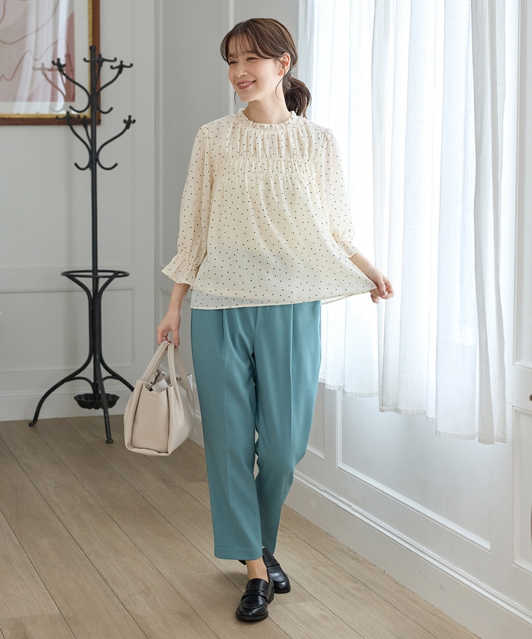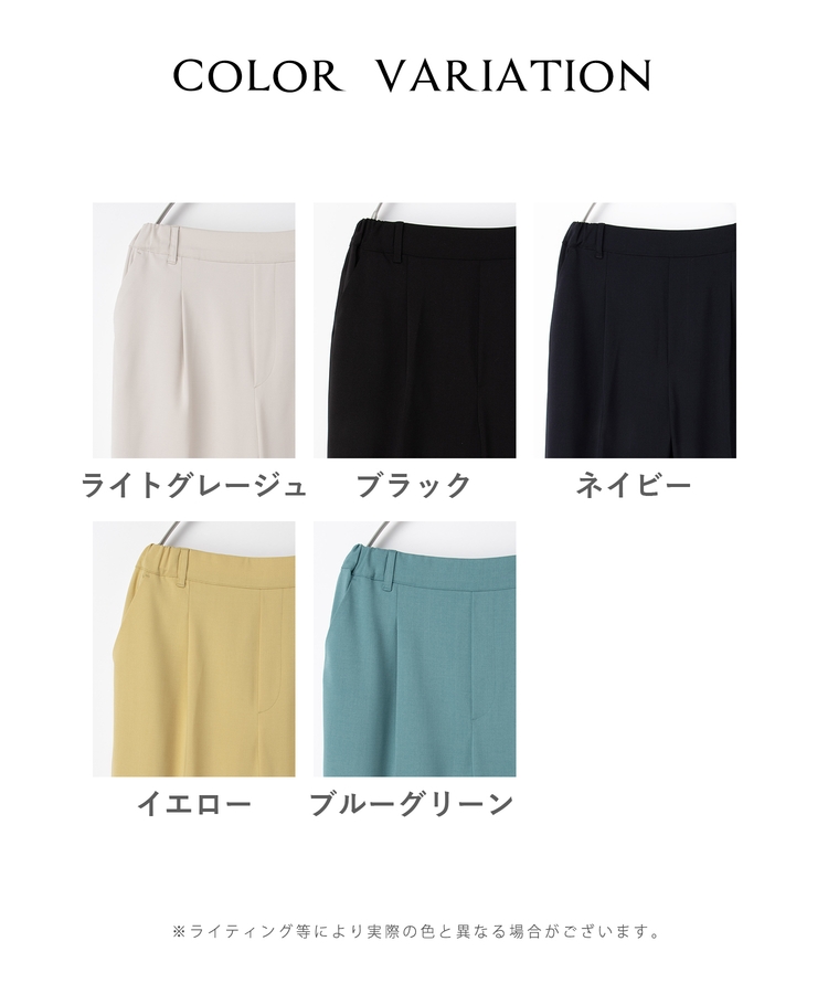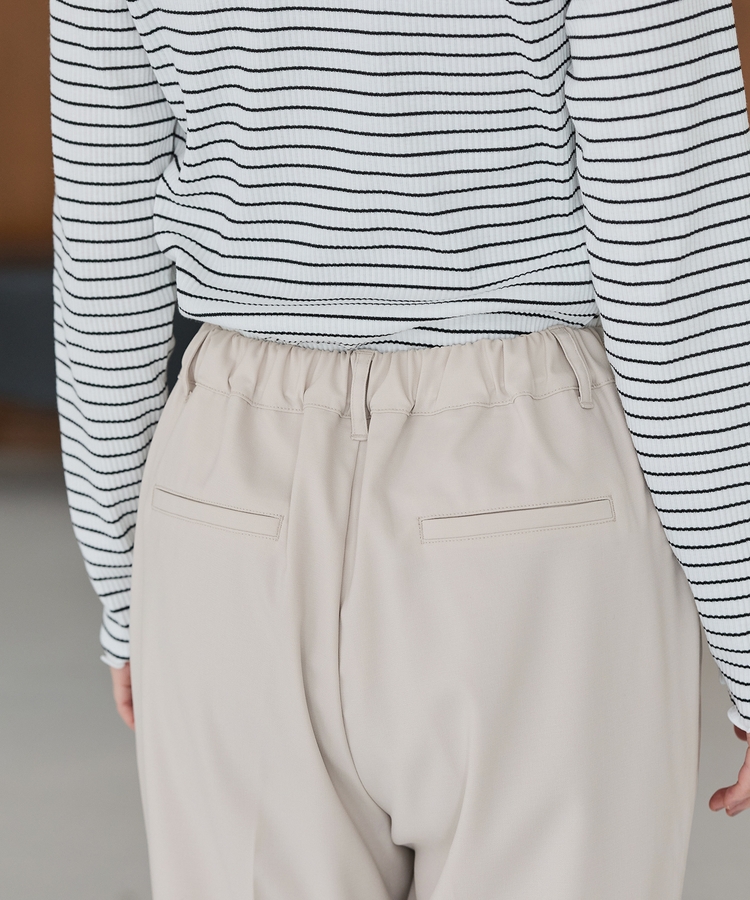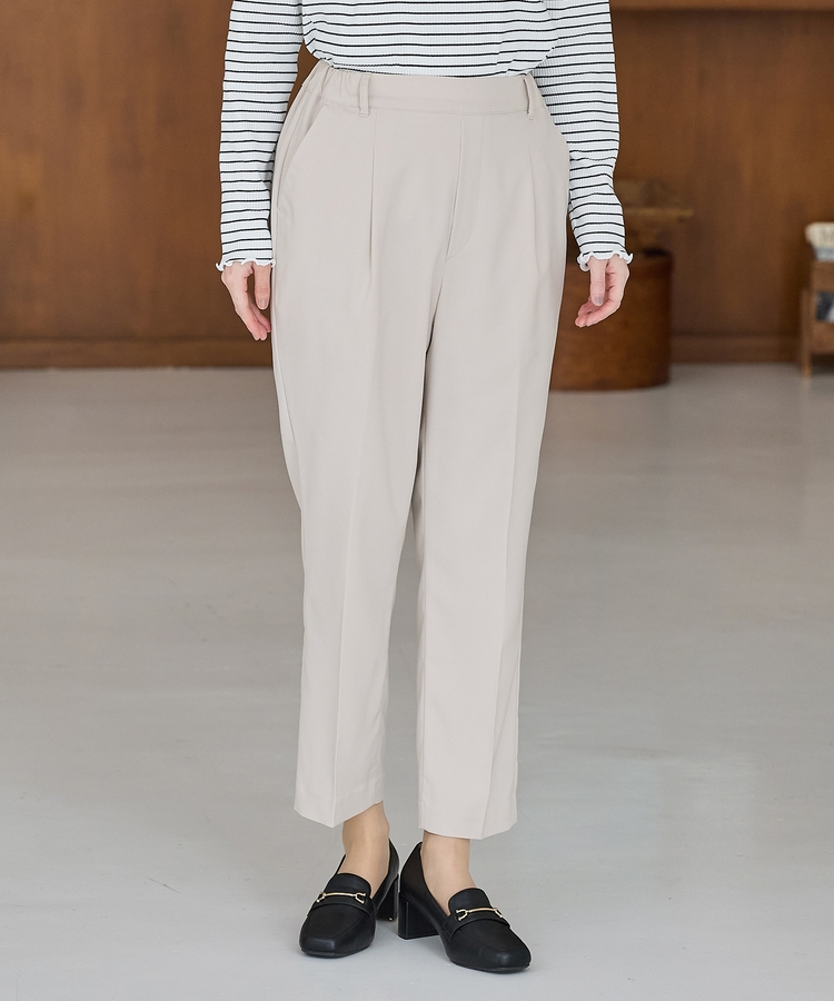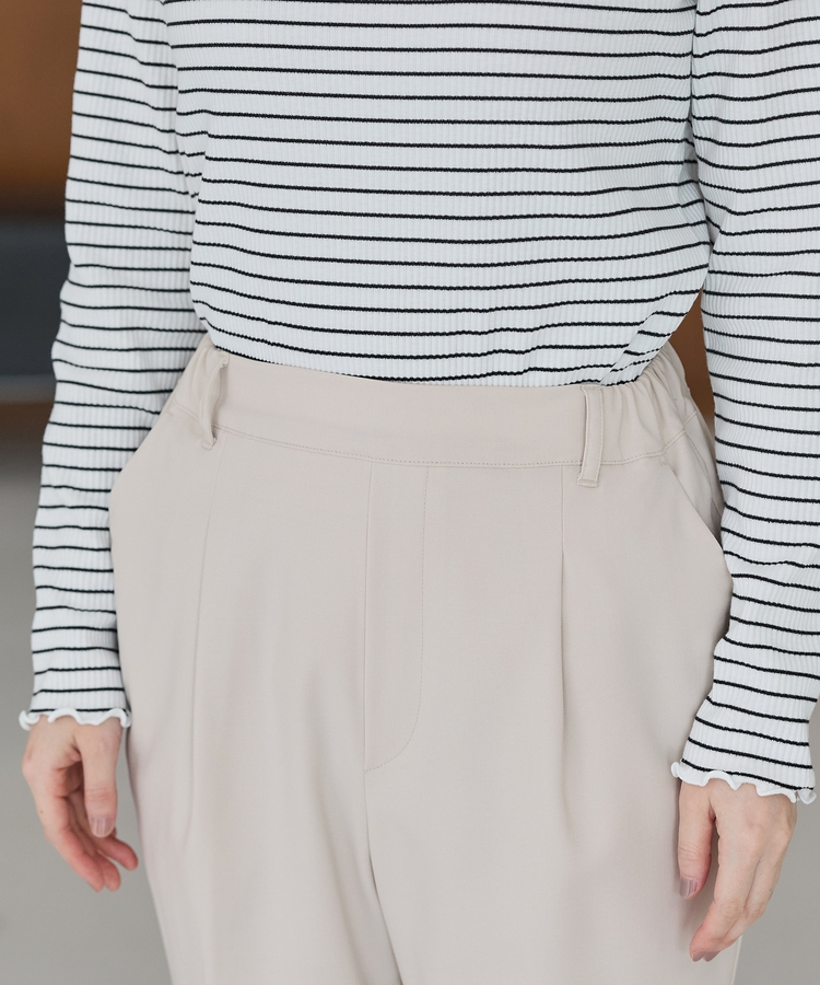 きちんと感のあるセンタープレスと、腰回りのラインにこだわった、裾に向かって細くなる美しいシルエットで美脚効果も抜群。