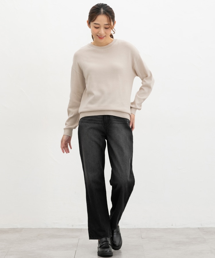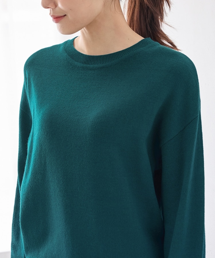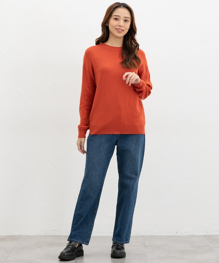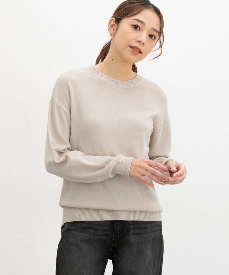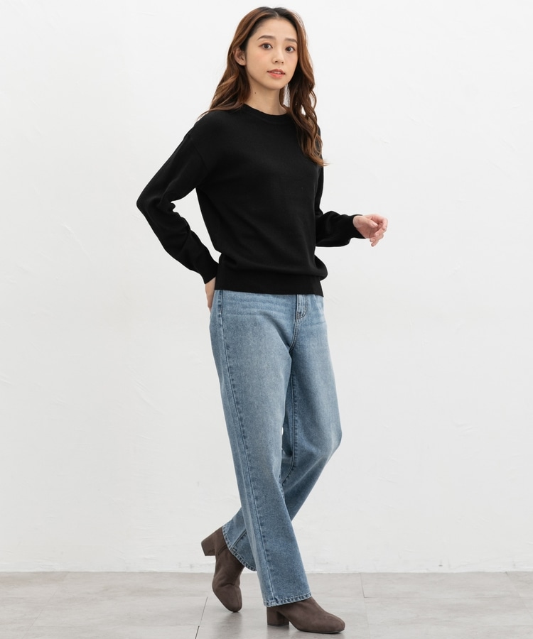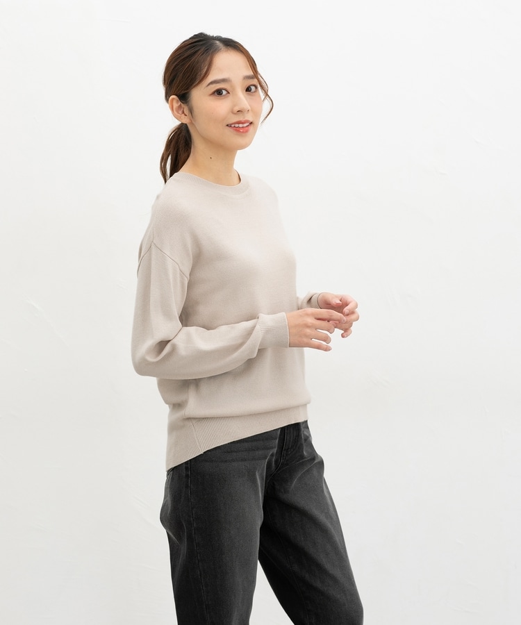 どんなテイストにもマッチする、ベーシックなクルーネックのシンプルデザイン。