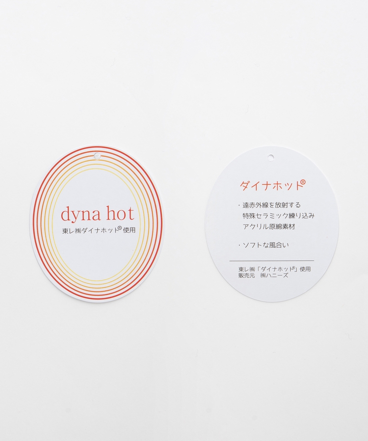 遠赤外線を放射する特殊セラミックを練りこんだ、あったか素材『ダイナホット』糸を使用。