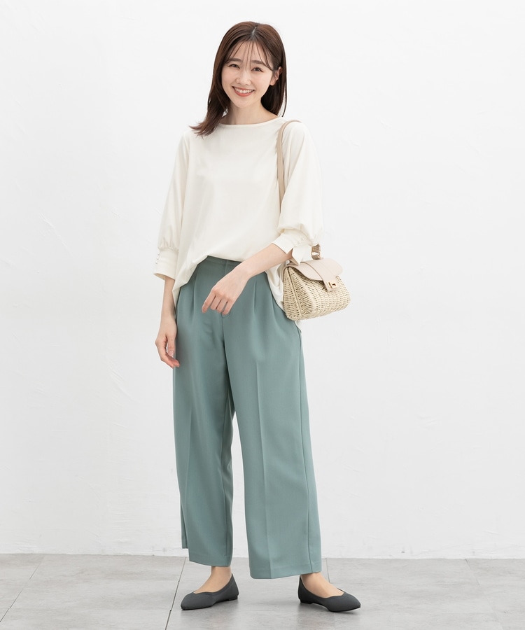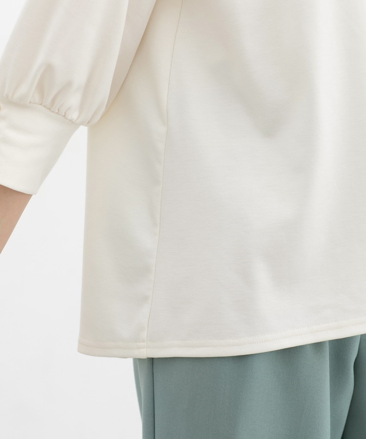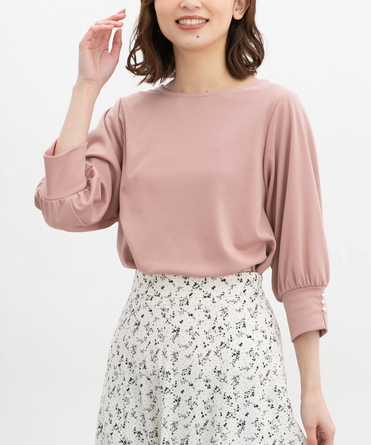 ふんわりとしたボリューム袖が大人可愛いデザイン。